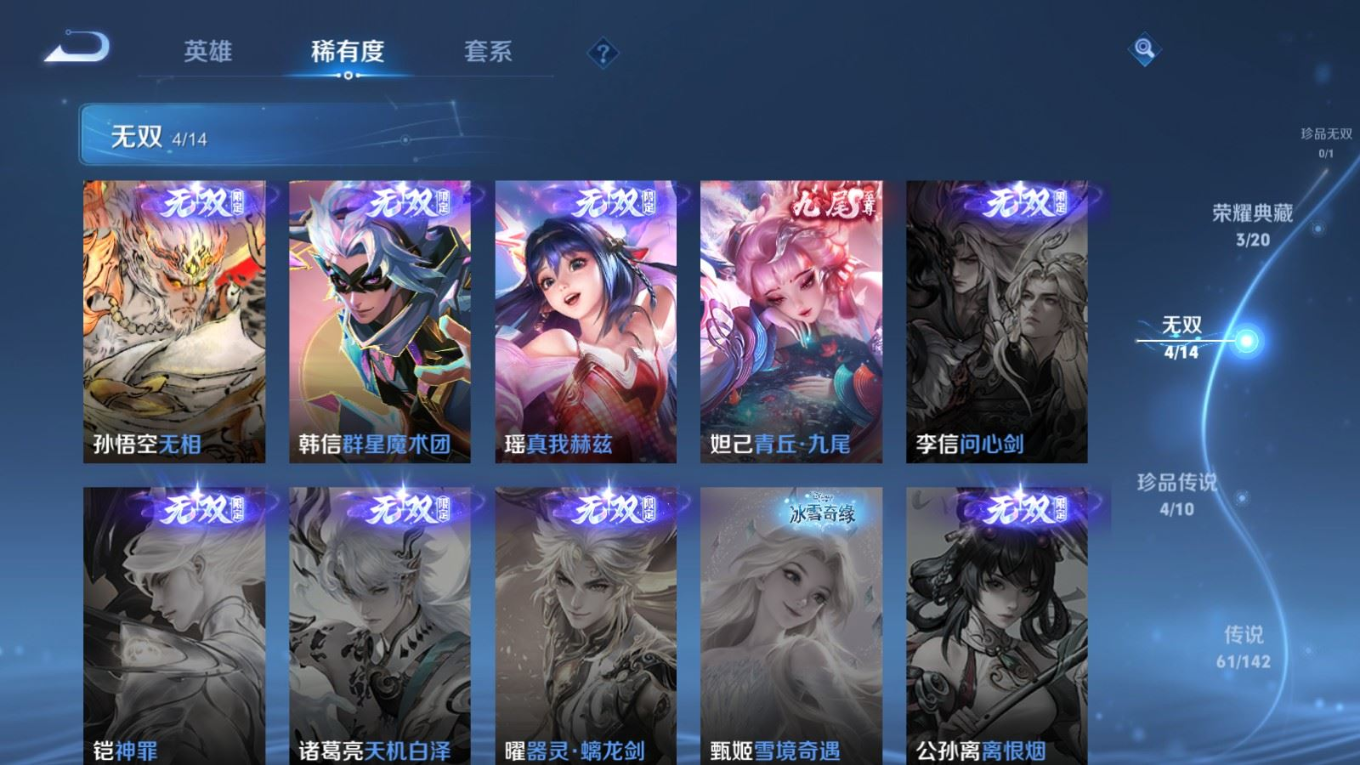 无双_孙悟空_无相无双_妲己_青丘·九尾无双_瑶_真我赫兹无双_韩信_群星魔术团