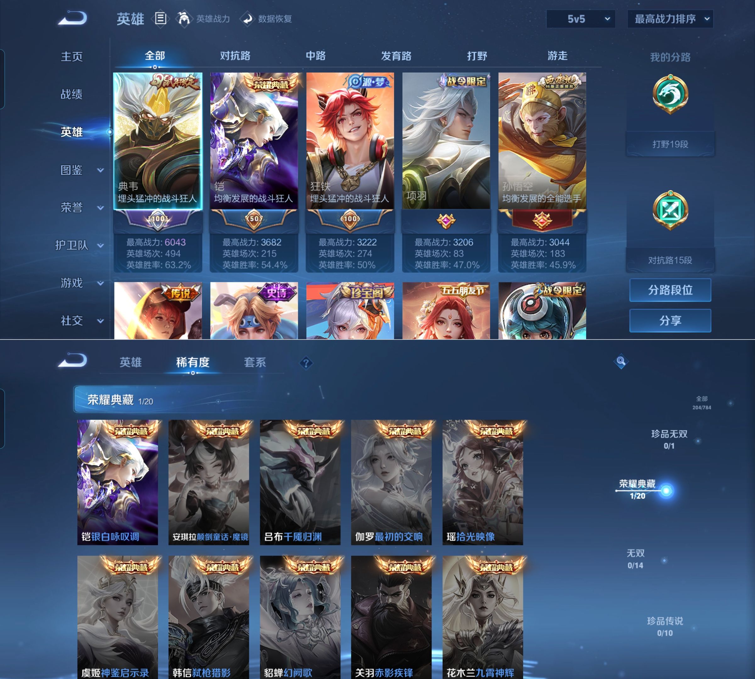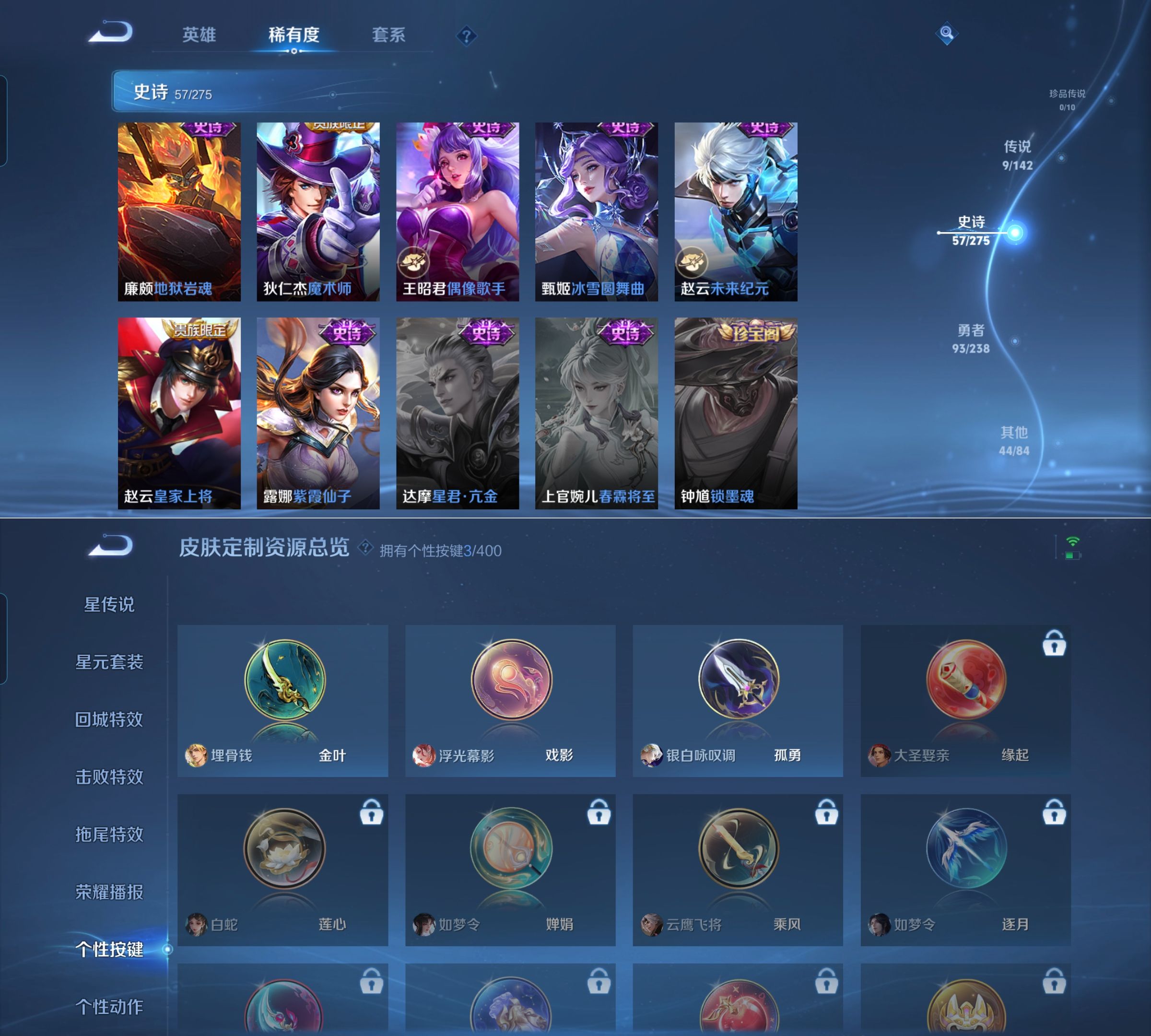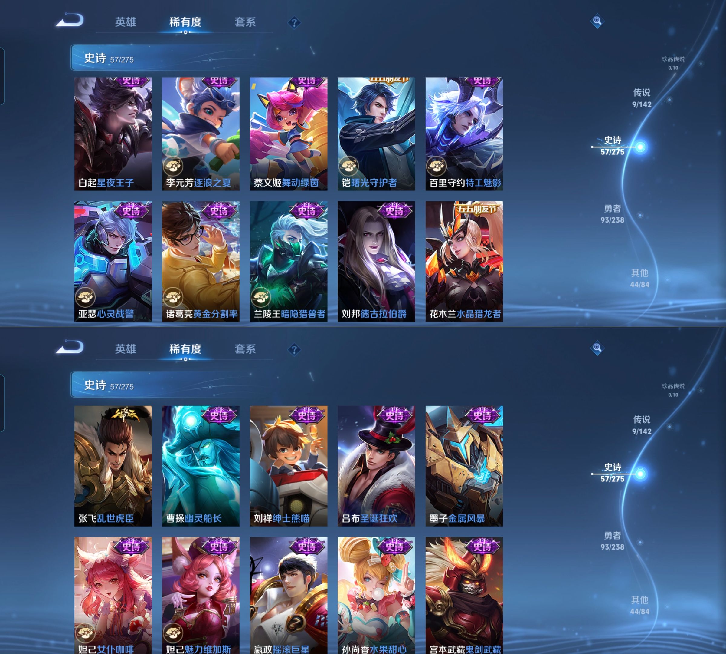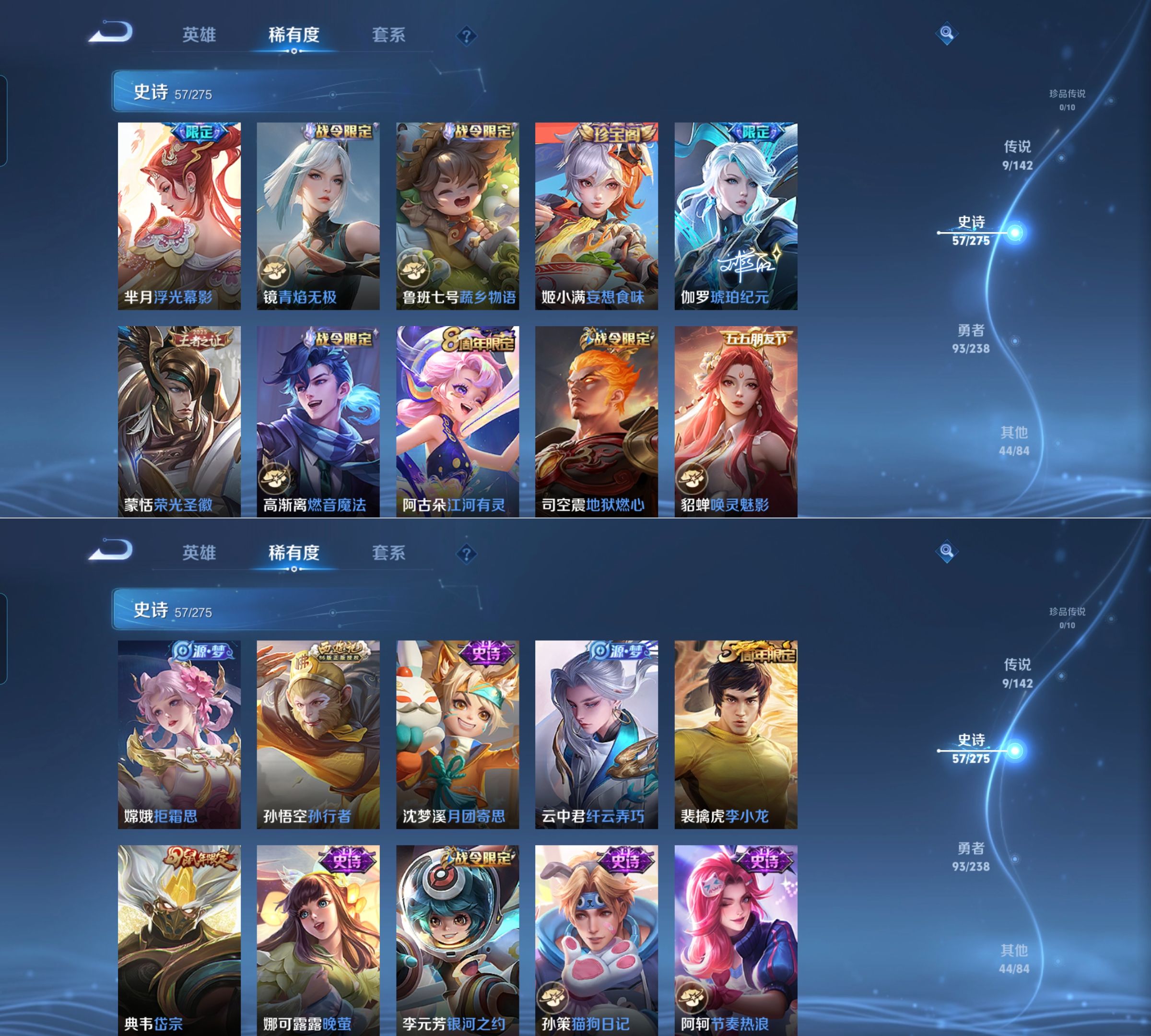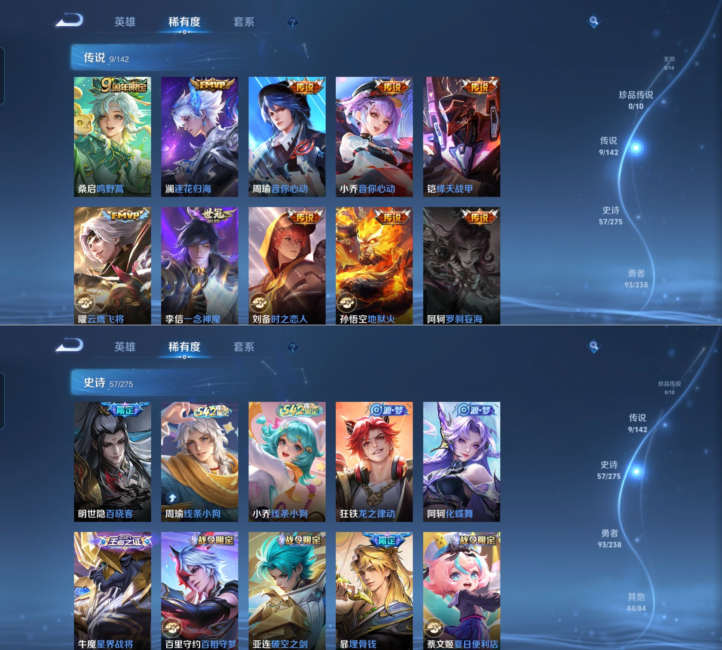 贵族等级:v7皮肤数:205传说品质9 生肖限定1 荣耀典藏1 英雄数:127