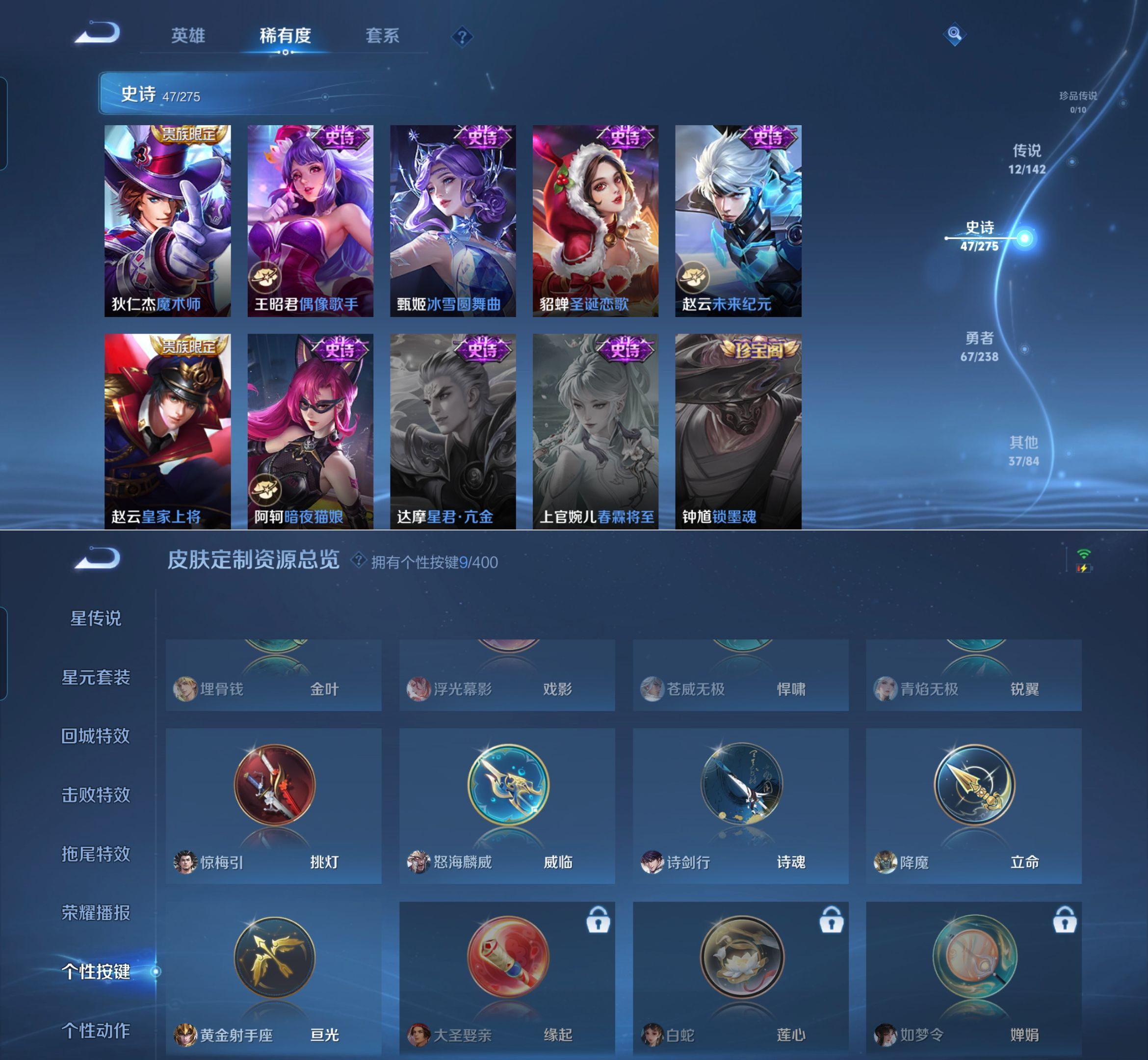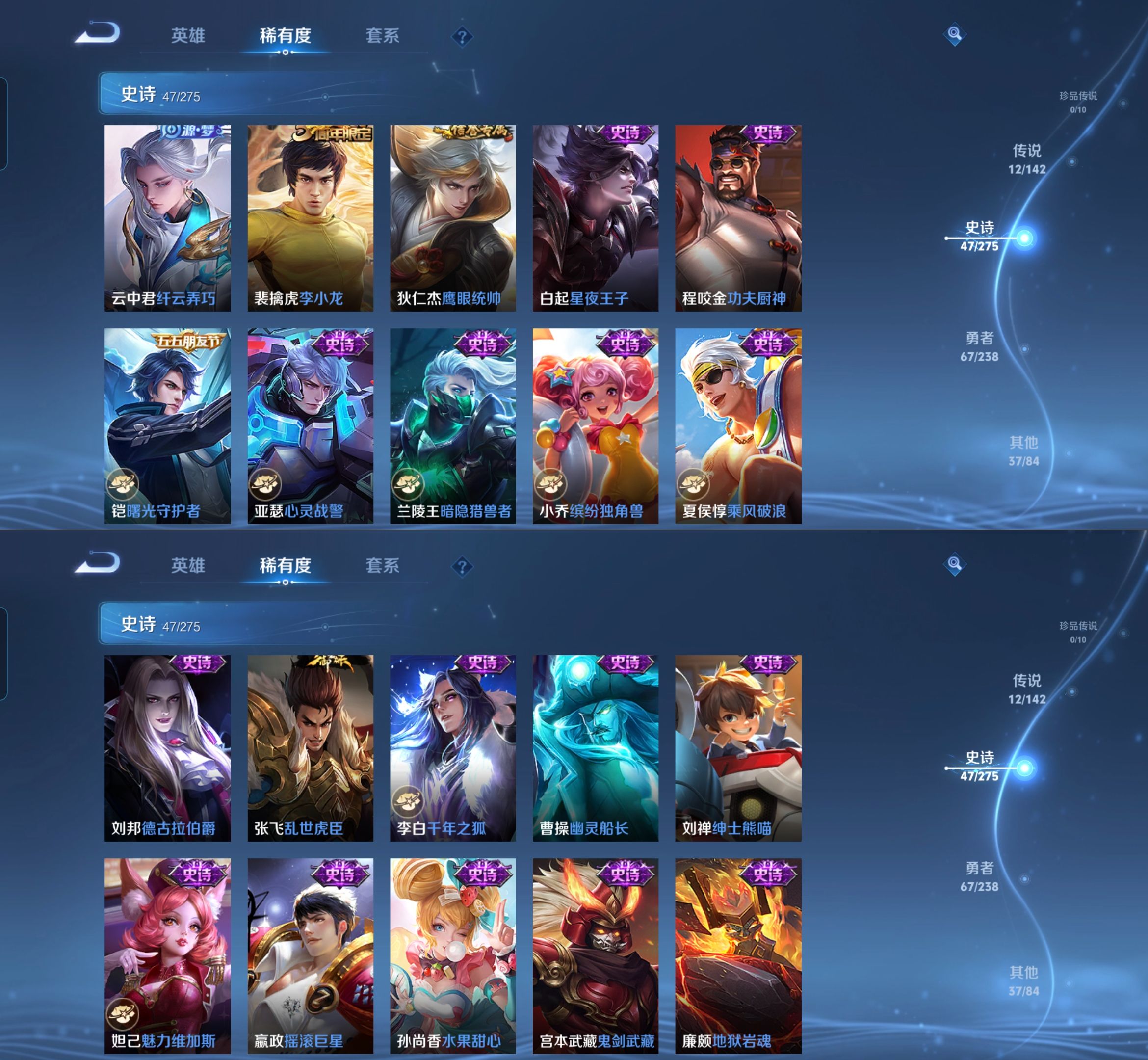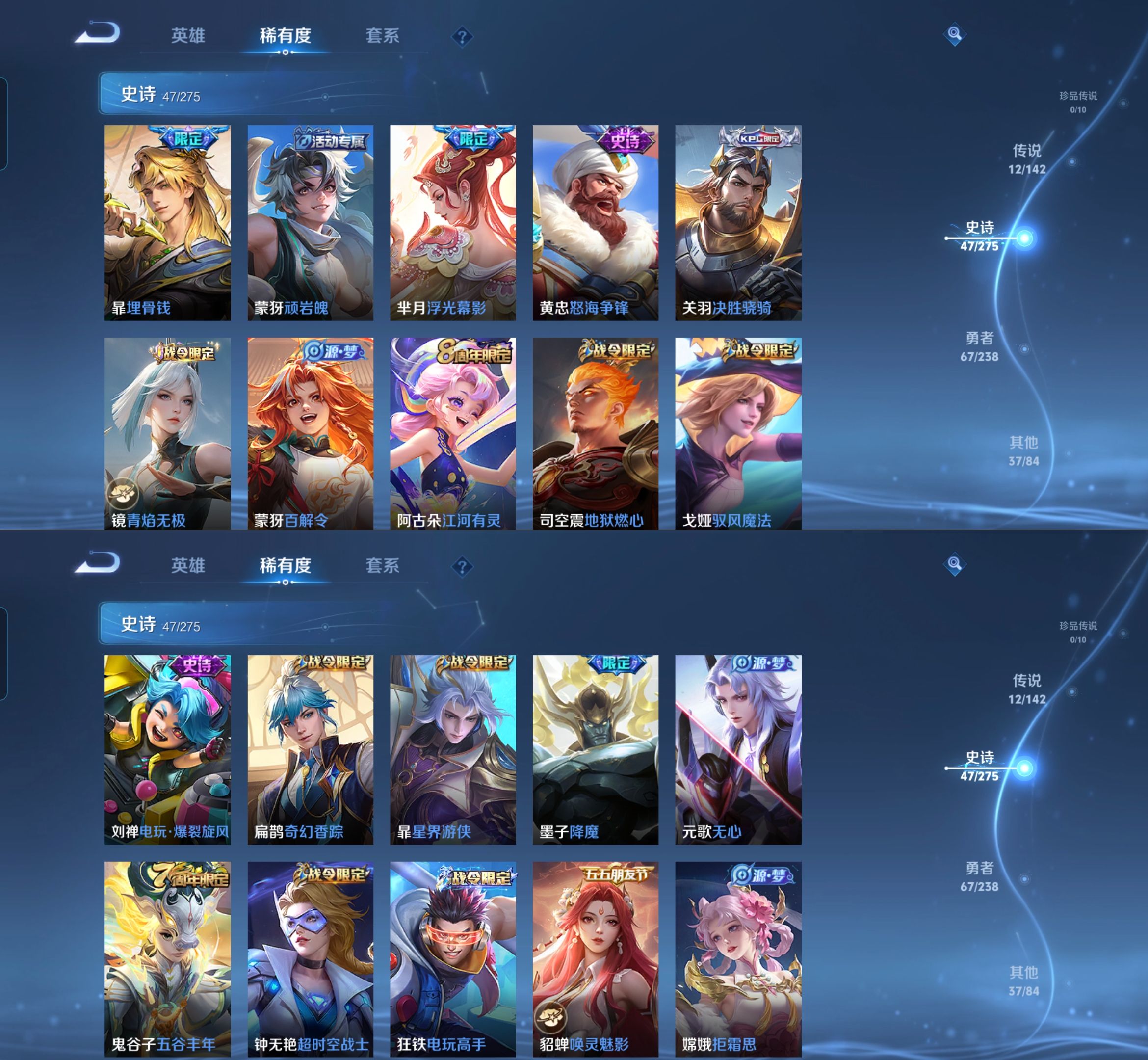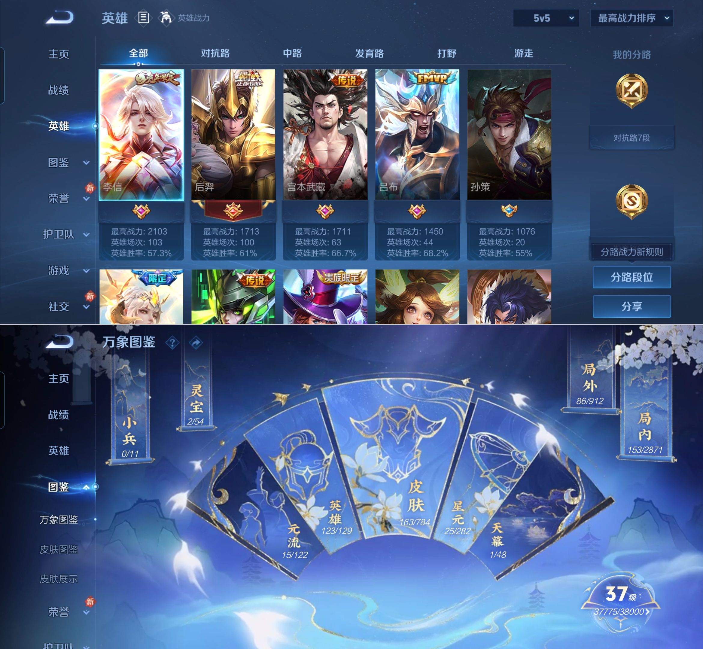 贵族等级:v7皮肤数:163传说品质12 生肖限定2 英雄数:123