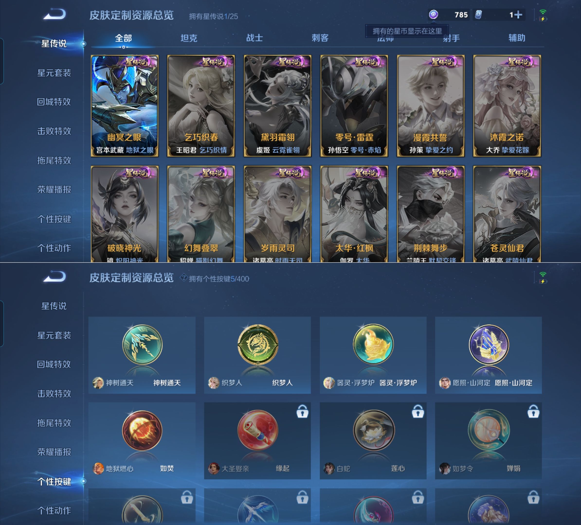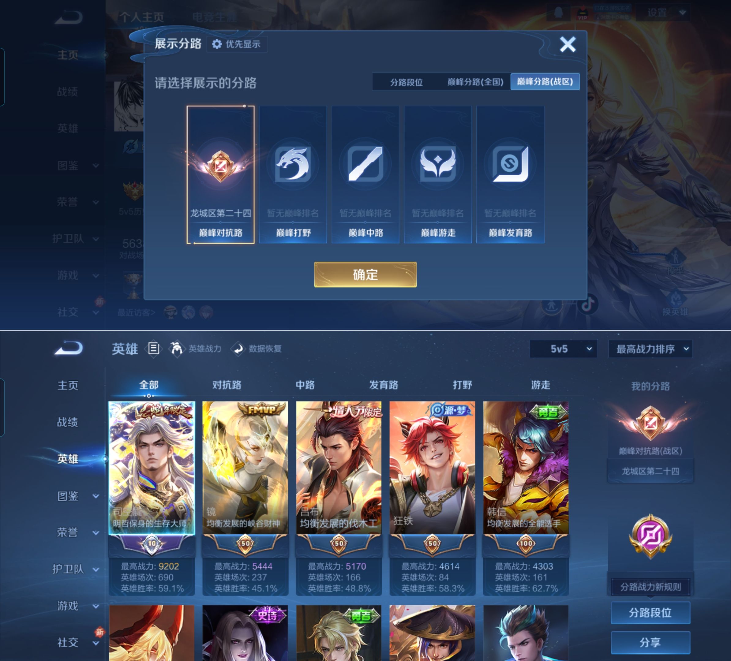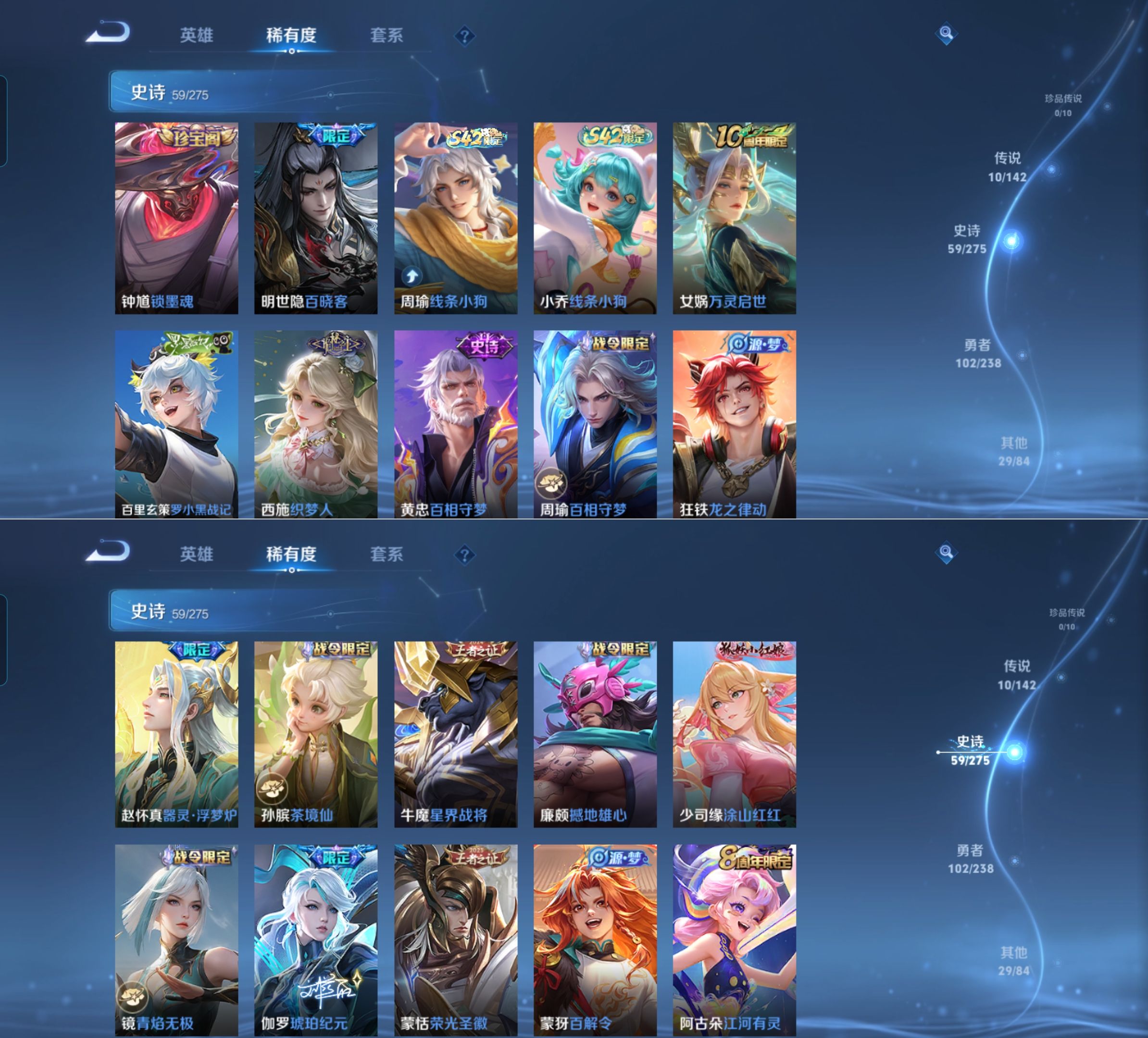 贵族等级:v6皮肤数:201传说品质10 生肖限定2 情人节限定2 荣耀典藏1 英雄数:128