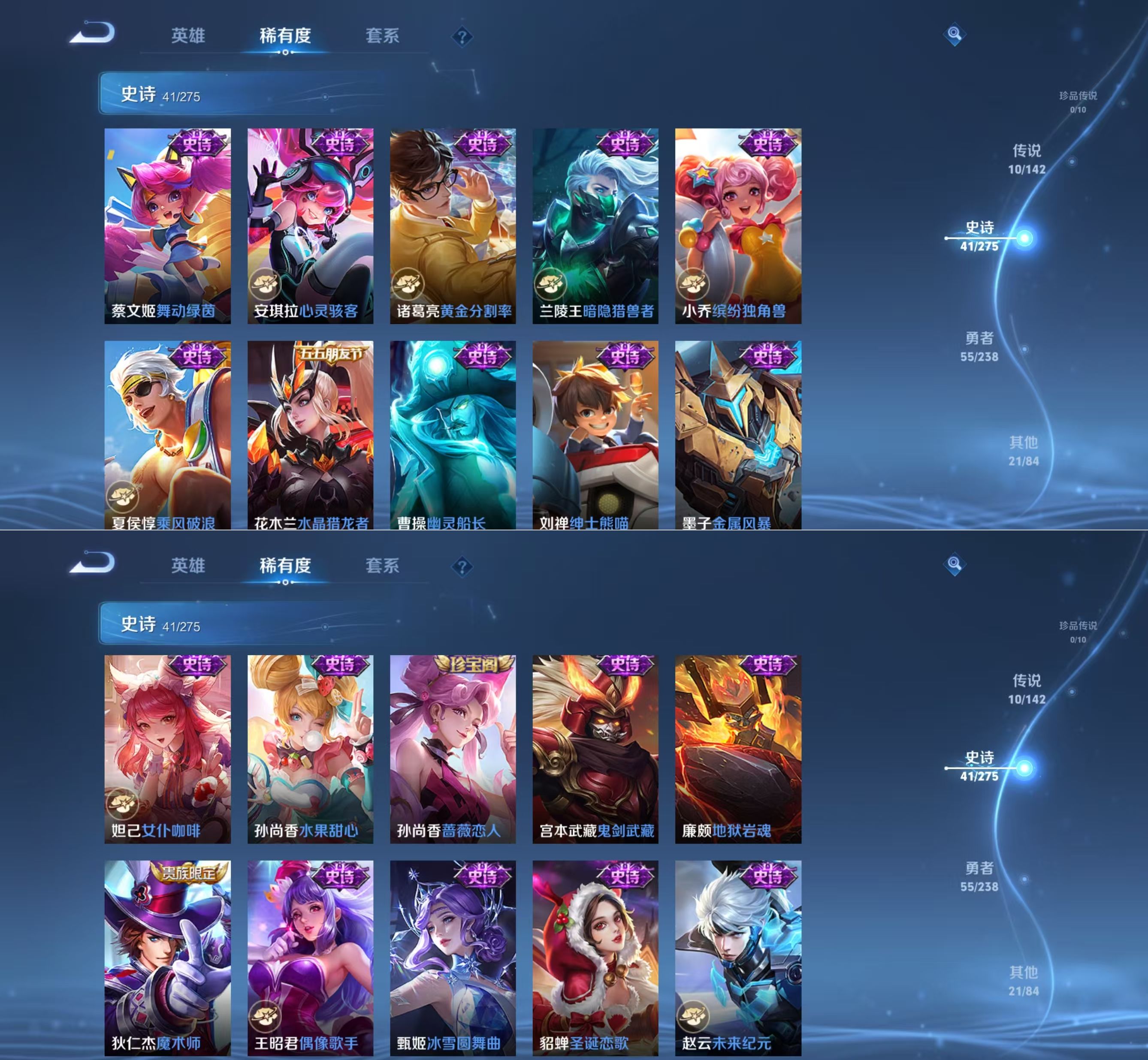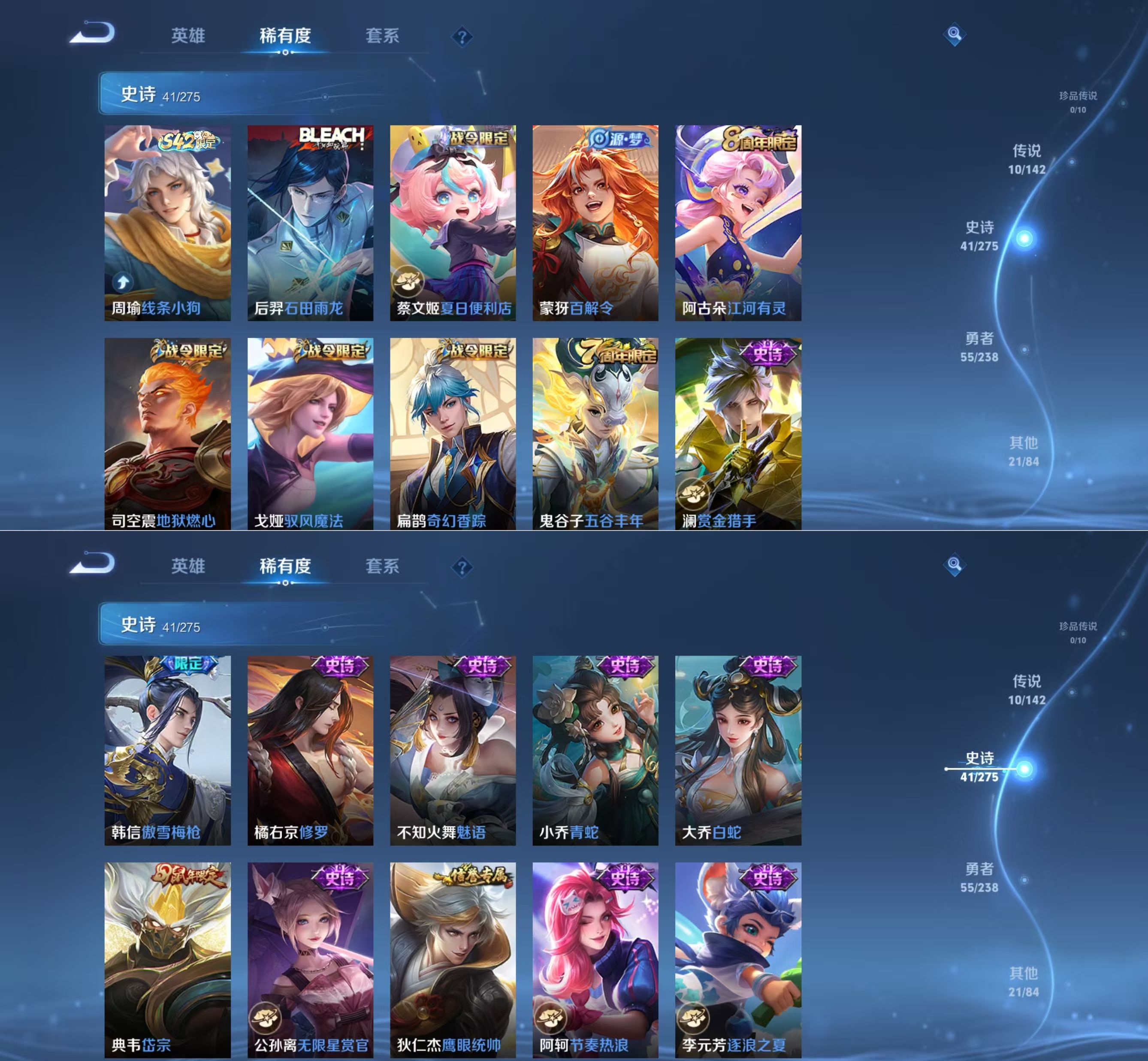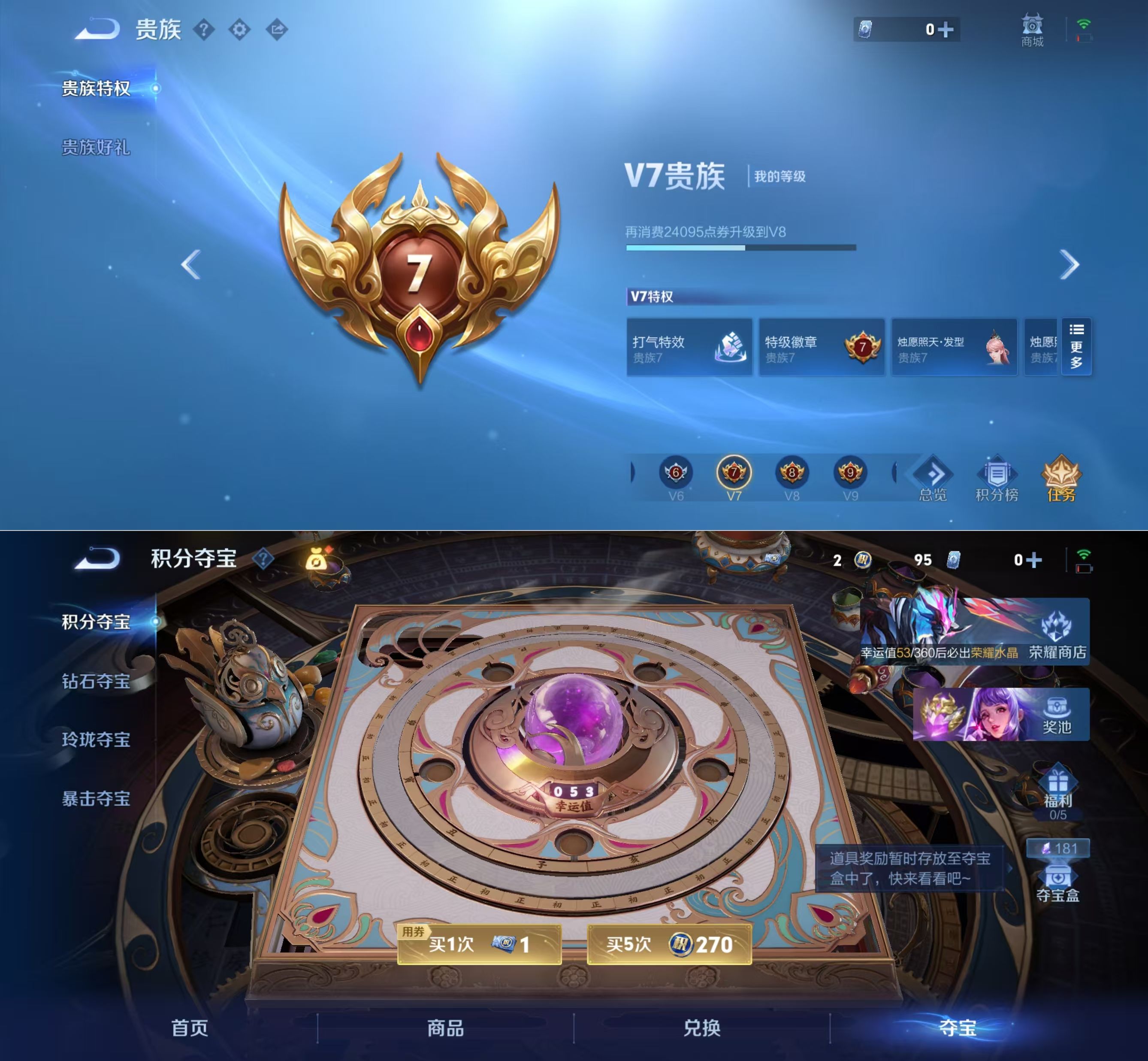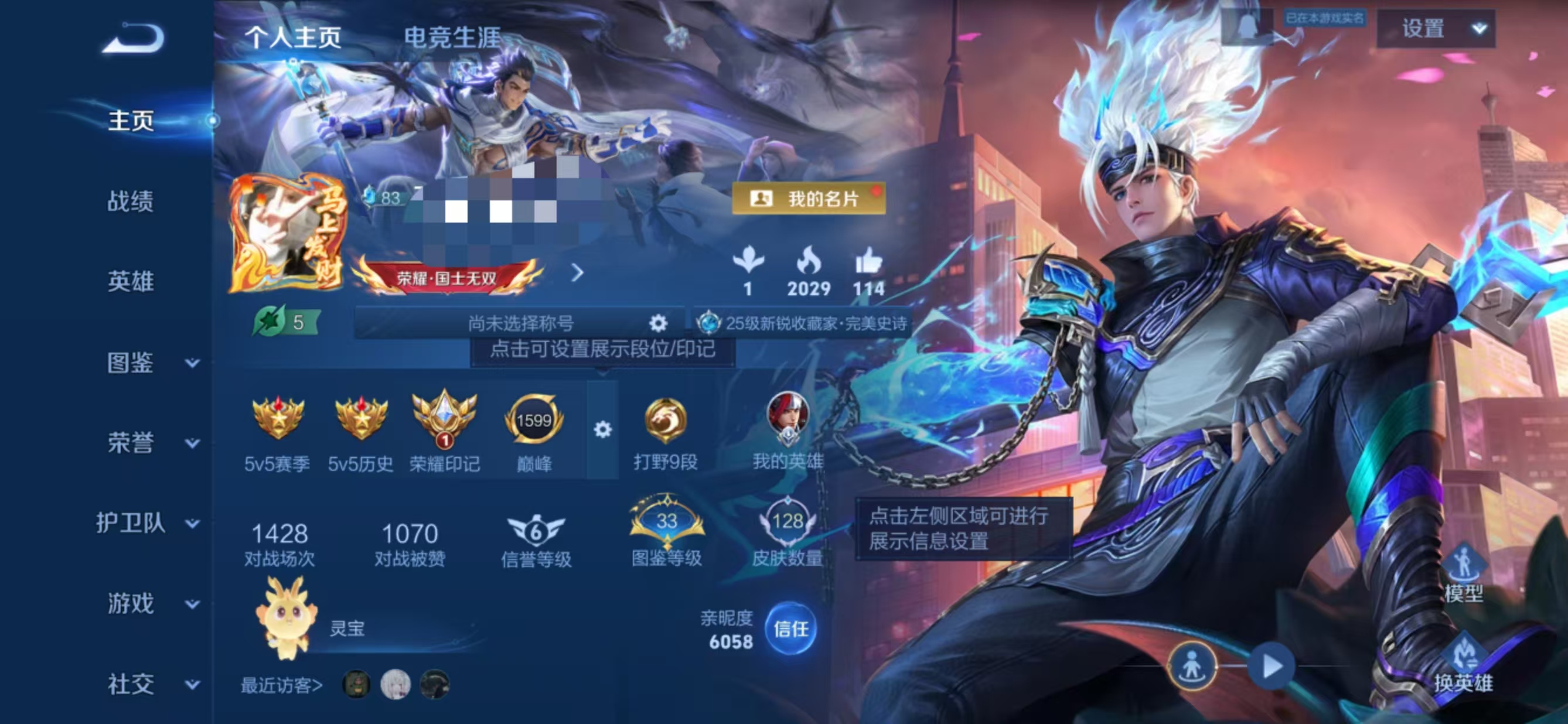 贵族等级:v7皮肤数:128生肖限定2 传说品质10 荣耀典藏1 英雄数:107