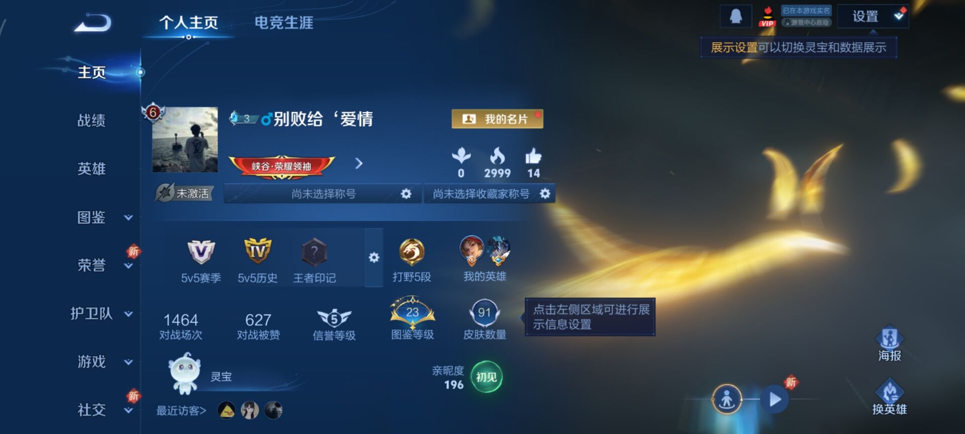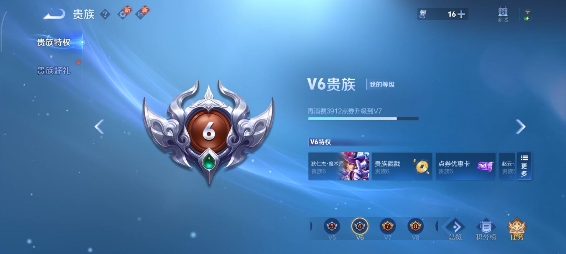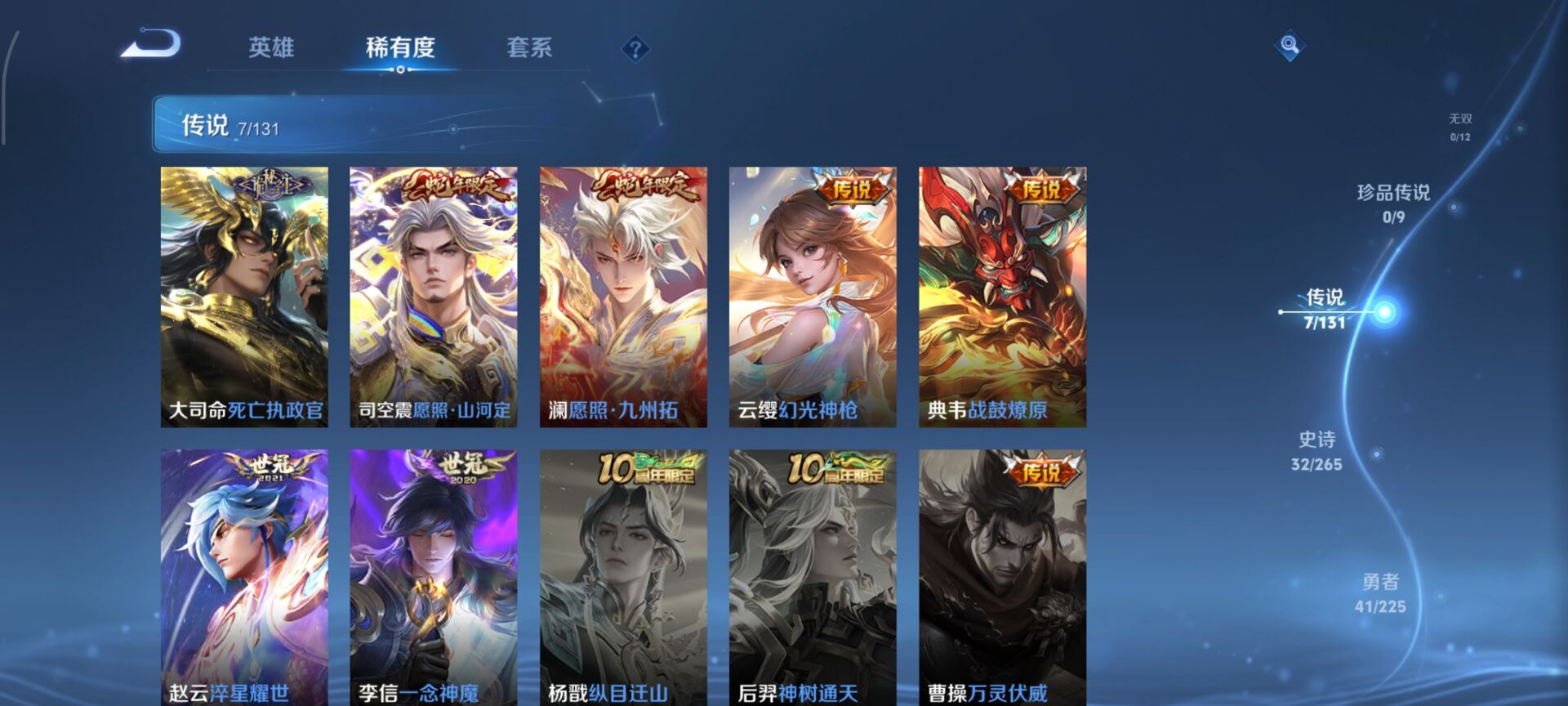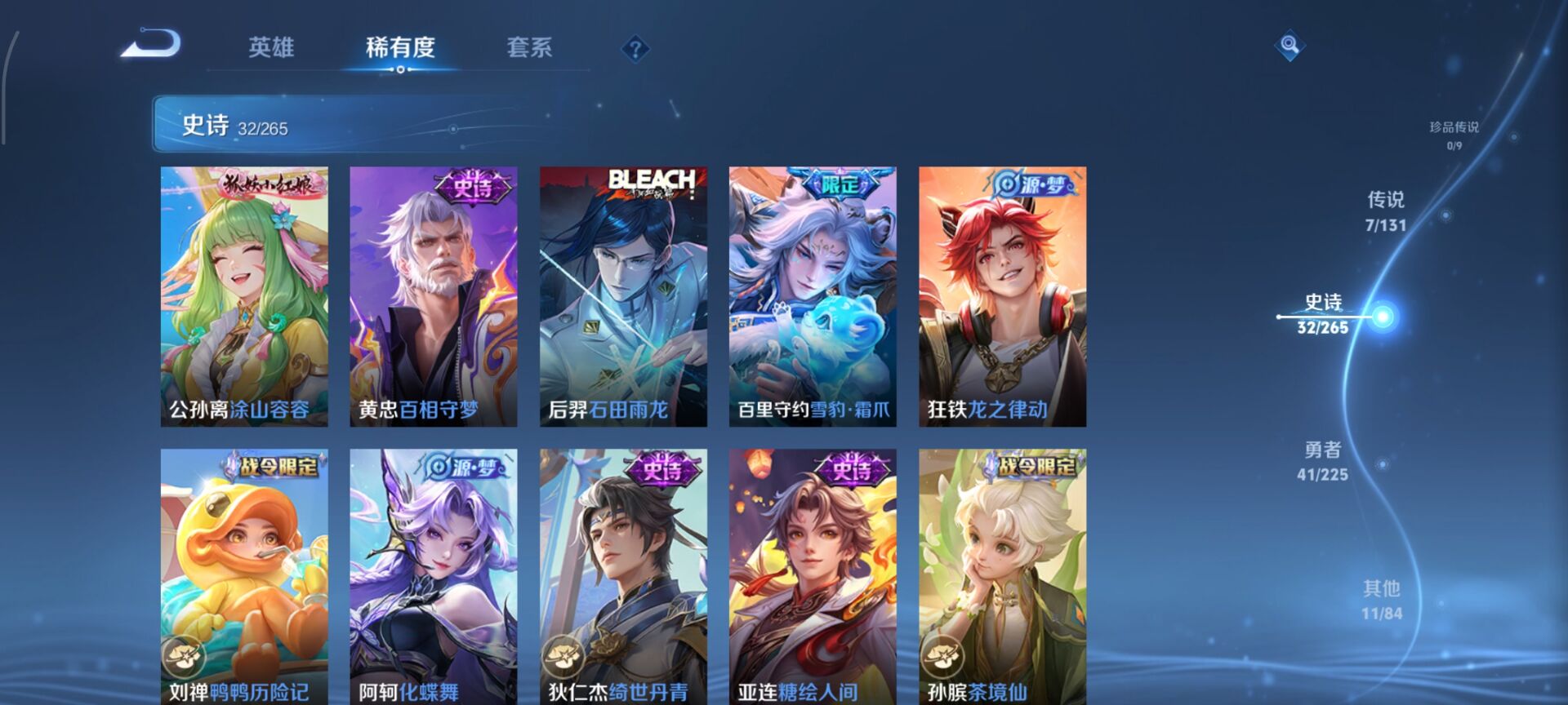 贵族等级:v6皮肤数:91传说品质7 生肖限定2 英雄数:107
