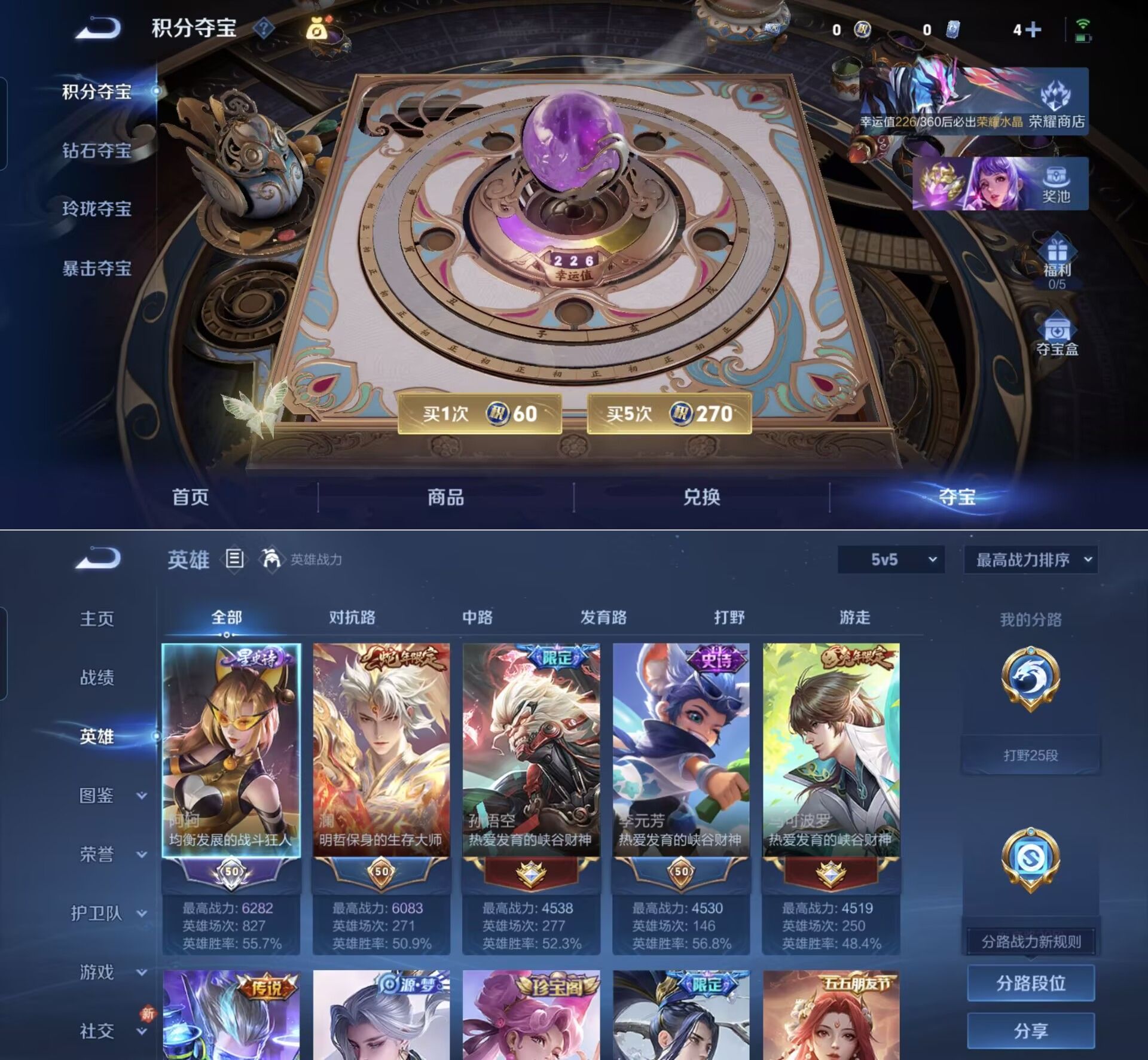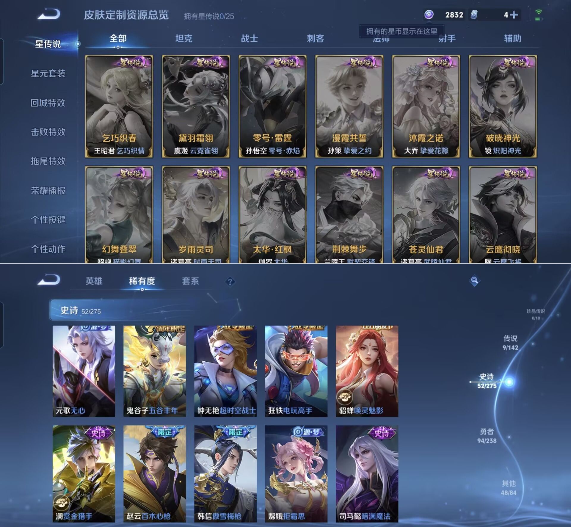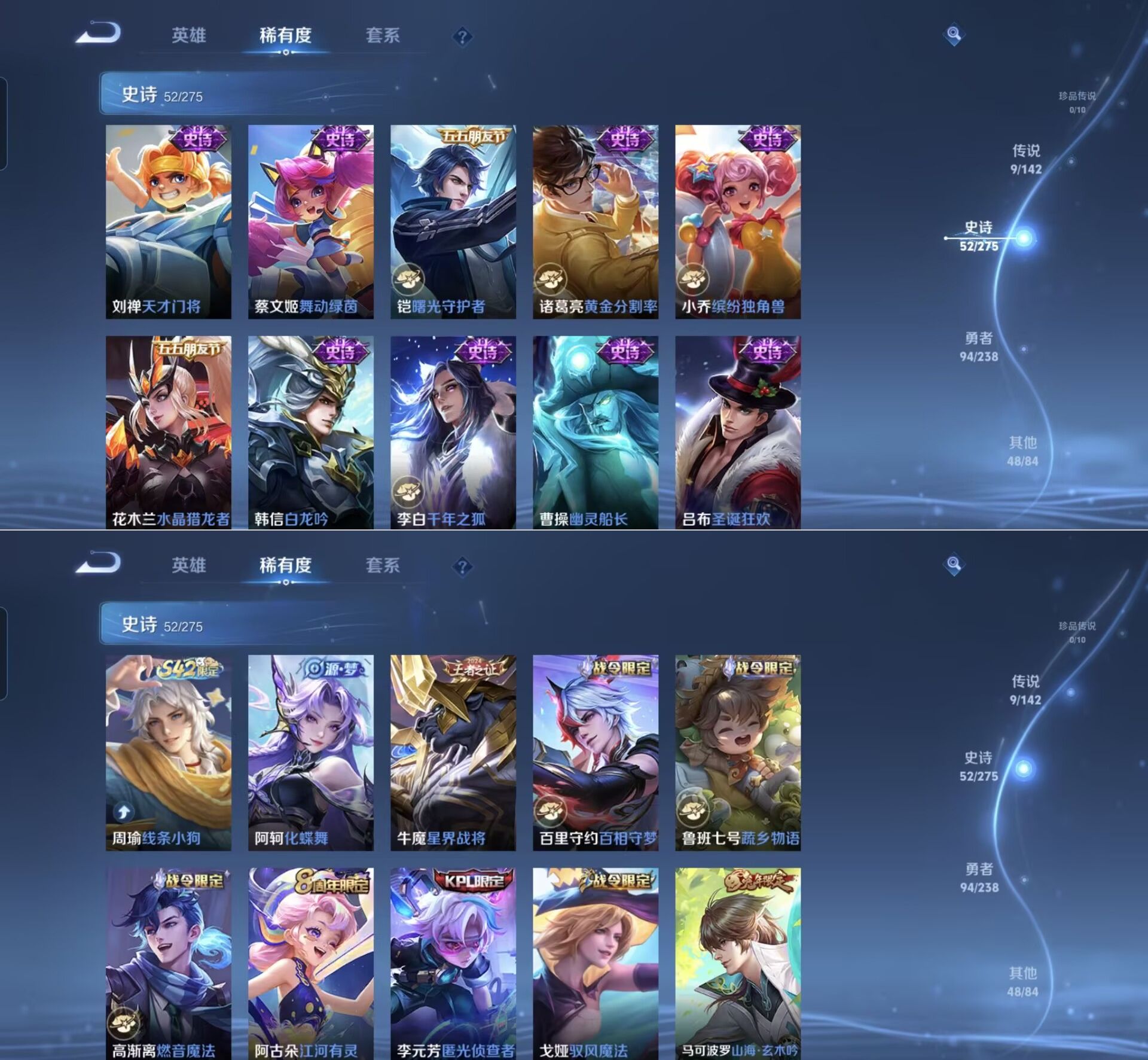 贵族等级:v7皮肤数:203传说品质9 生肖限定3 英雄数:128