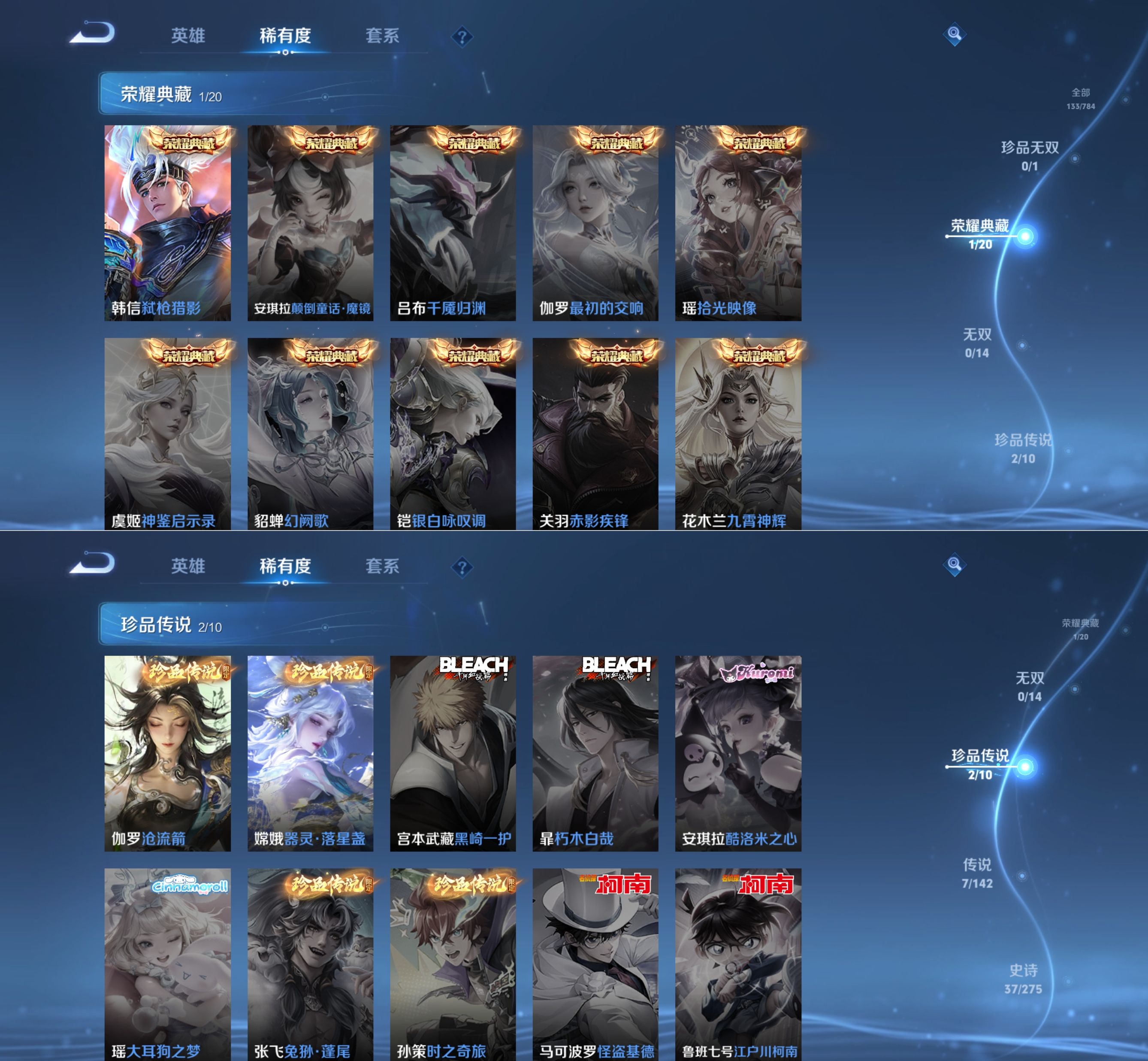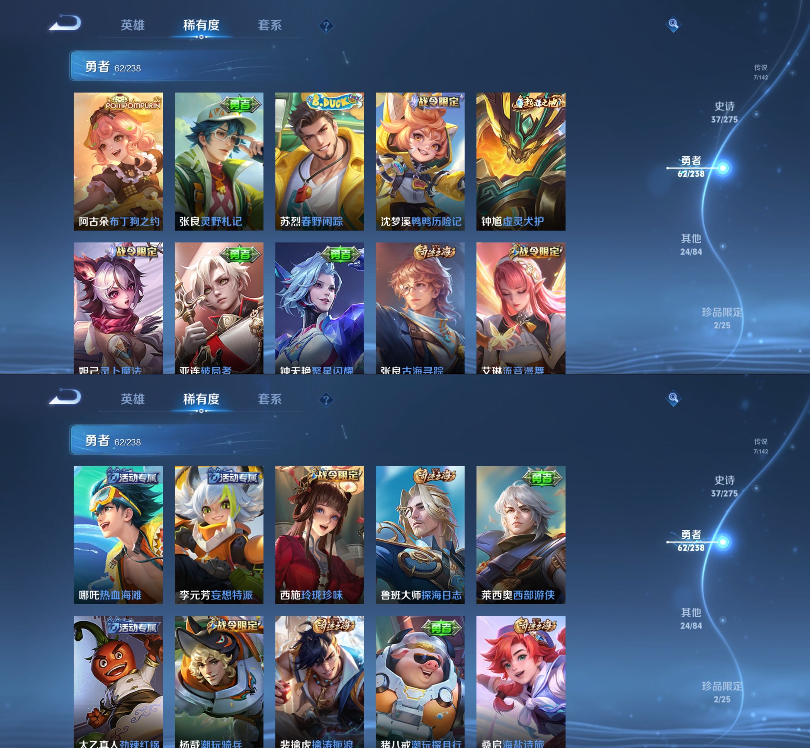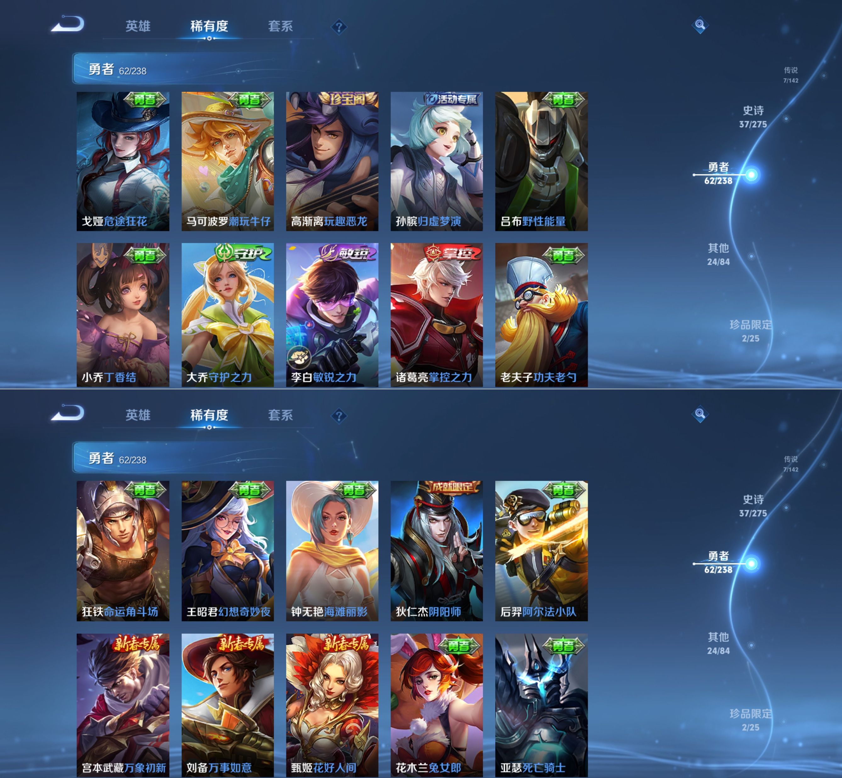 贵族等级:v7皮肤数:141传说品质7 珍品传说2 荣耀典藏1 英雄数:124