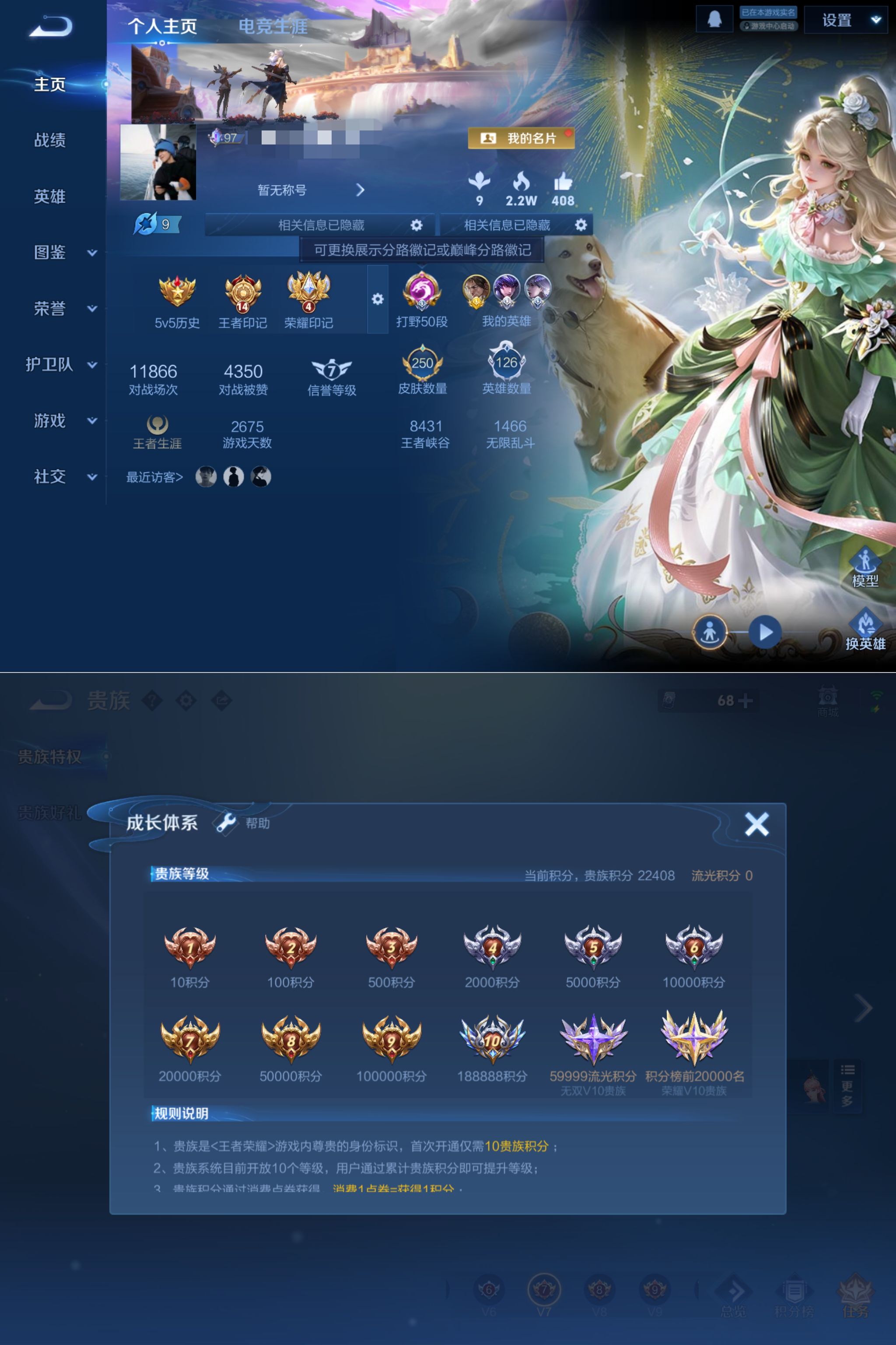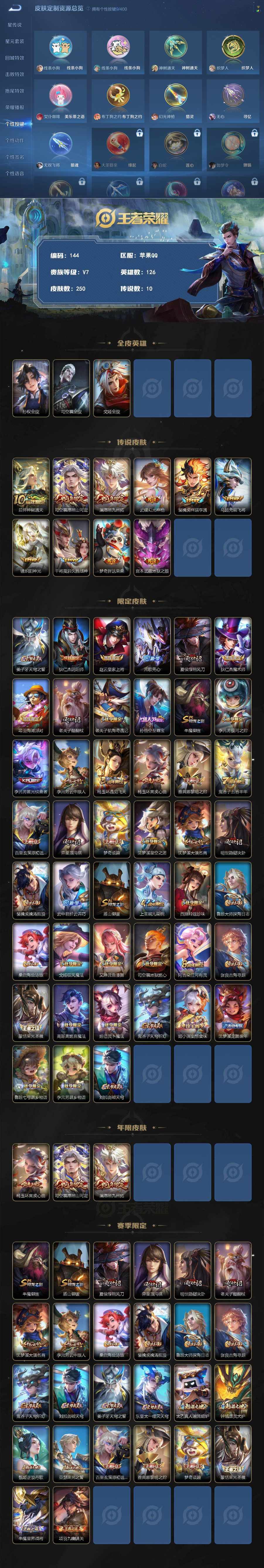 贵族等级:v7皮肤数:250传说品质10 生肖限定3 情人节限定1 英雄数:126