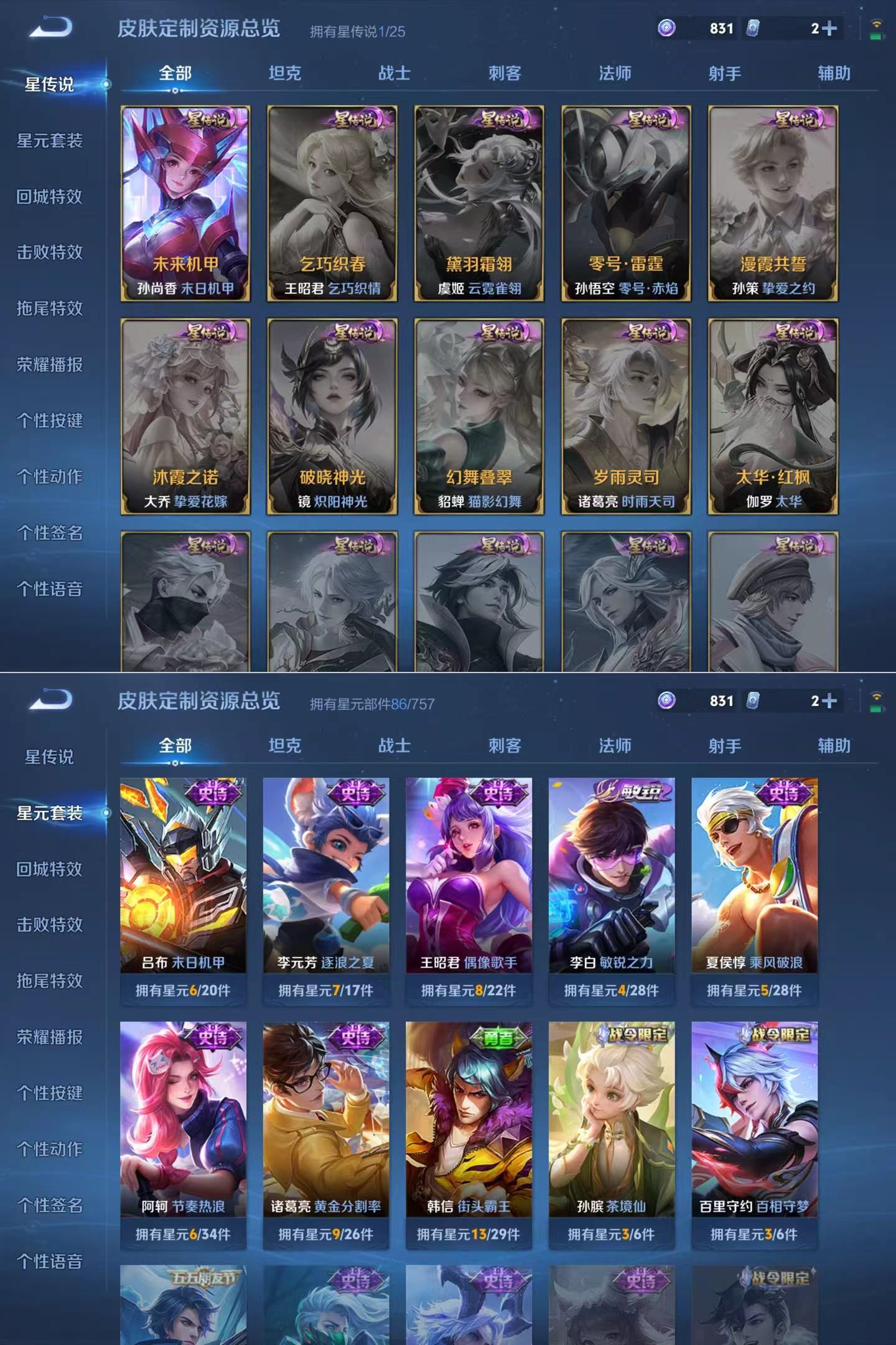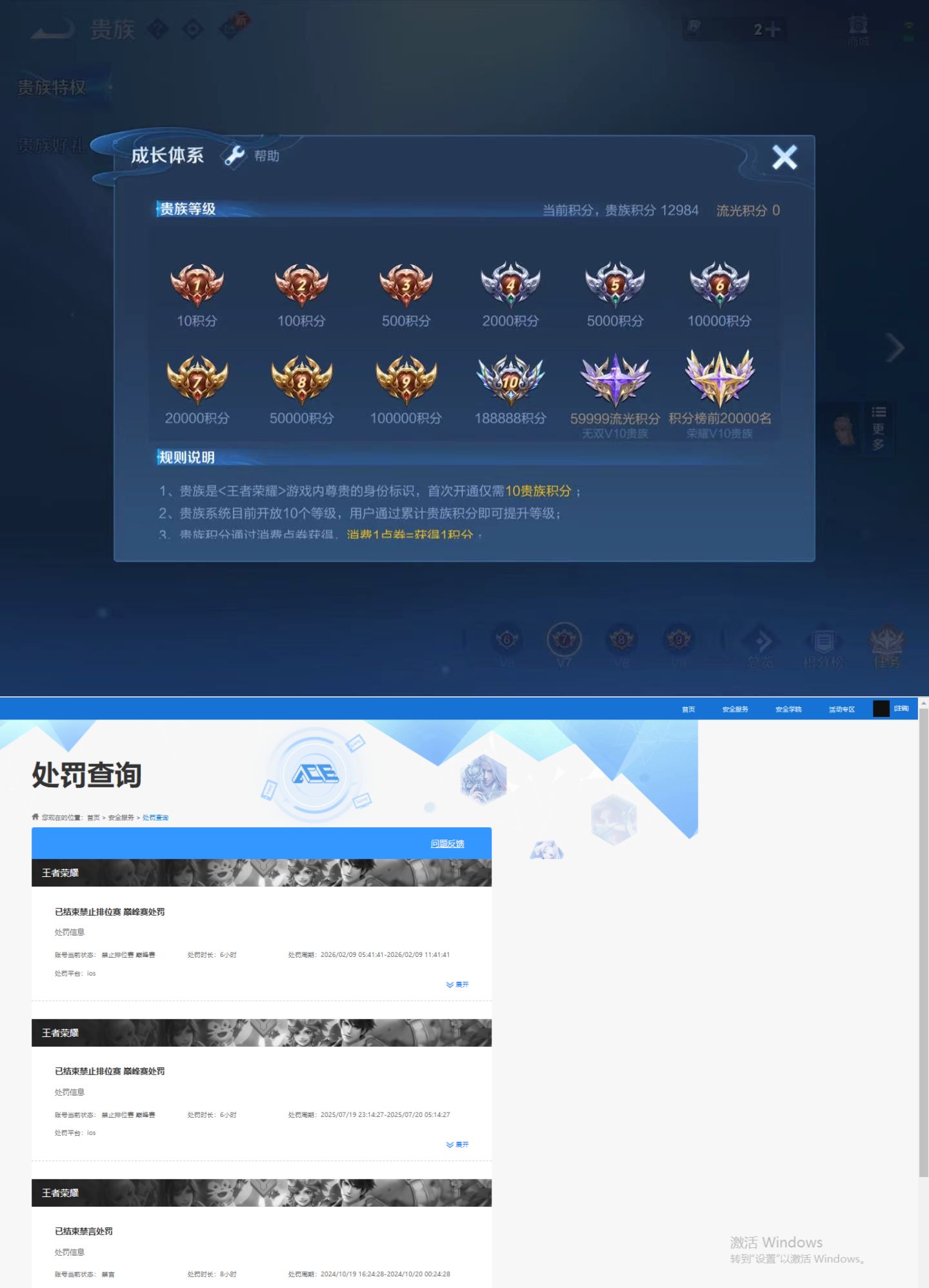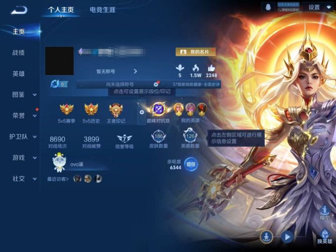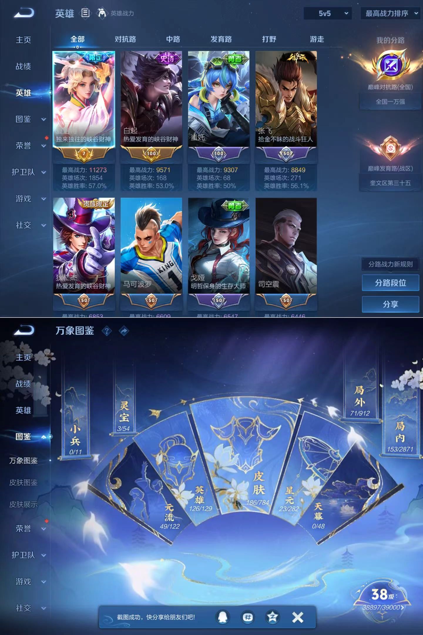 贵族等级:v6皮肤数:186传说品质3 荣耀典藏1 情人节限定1 英雄数:126