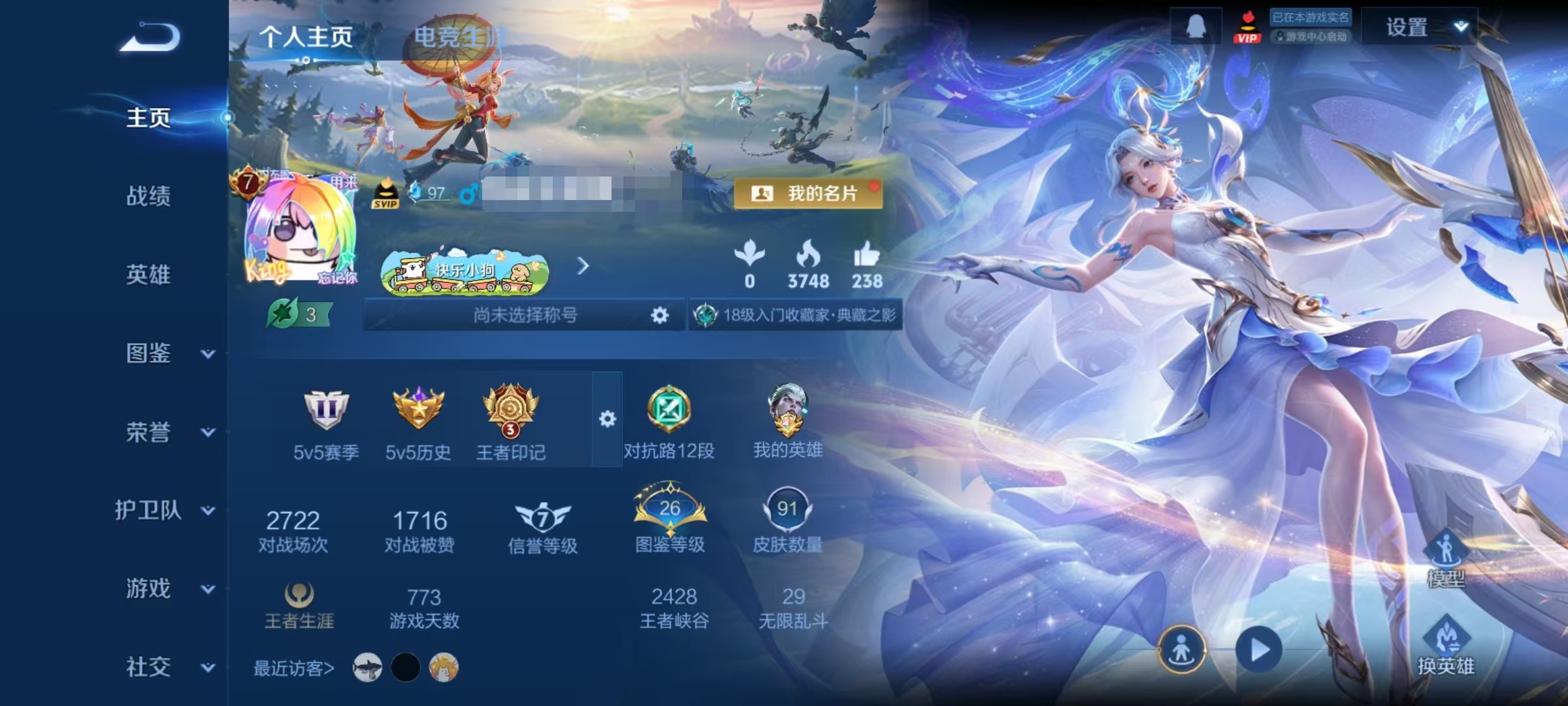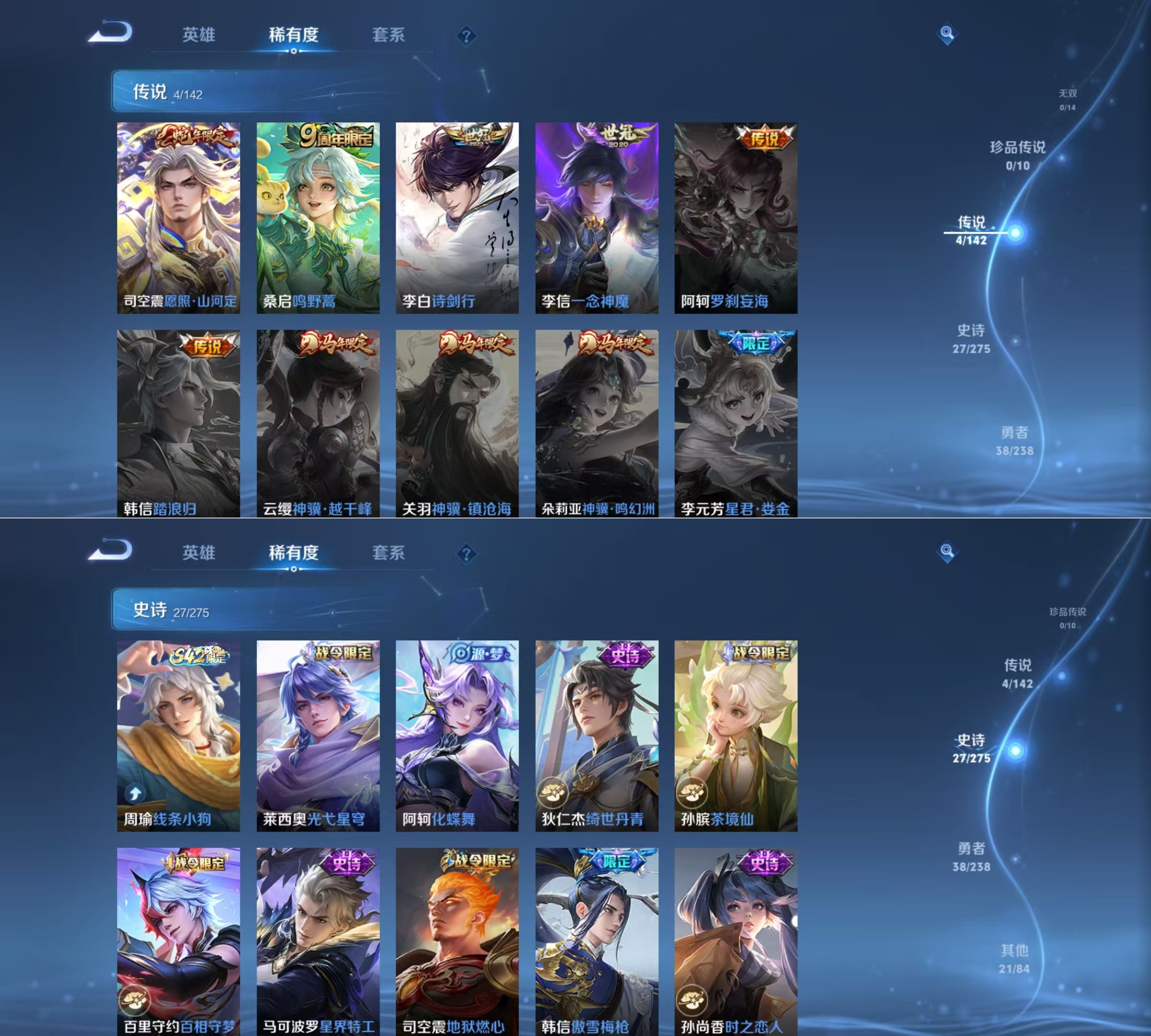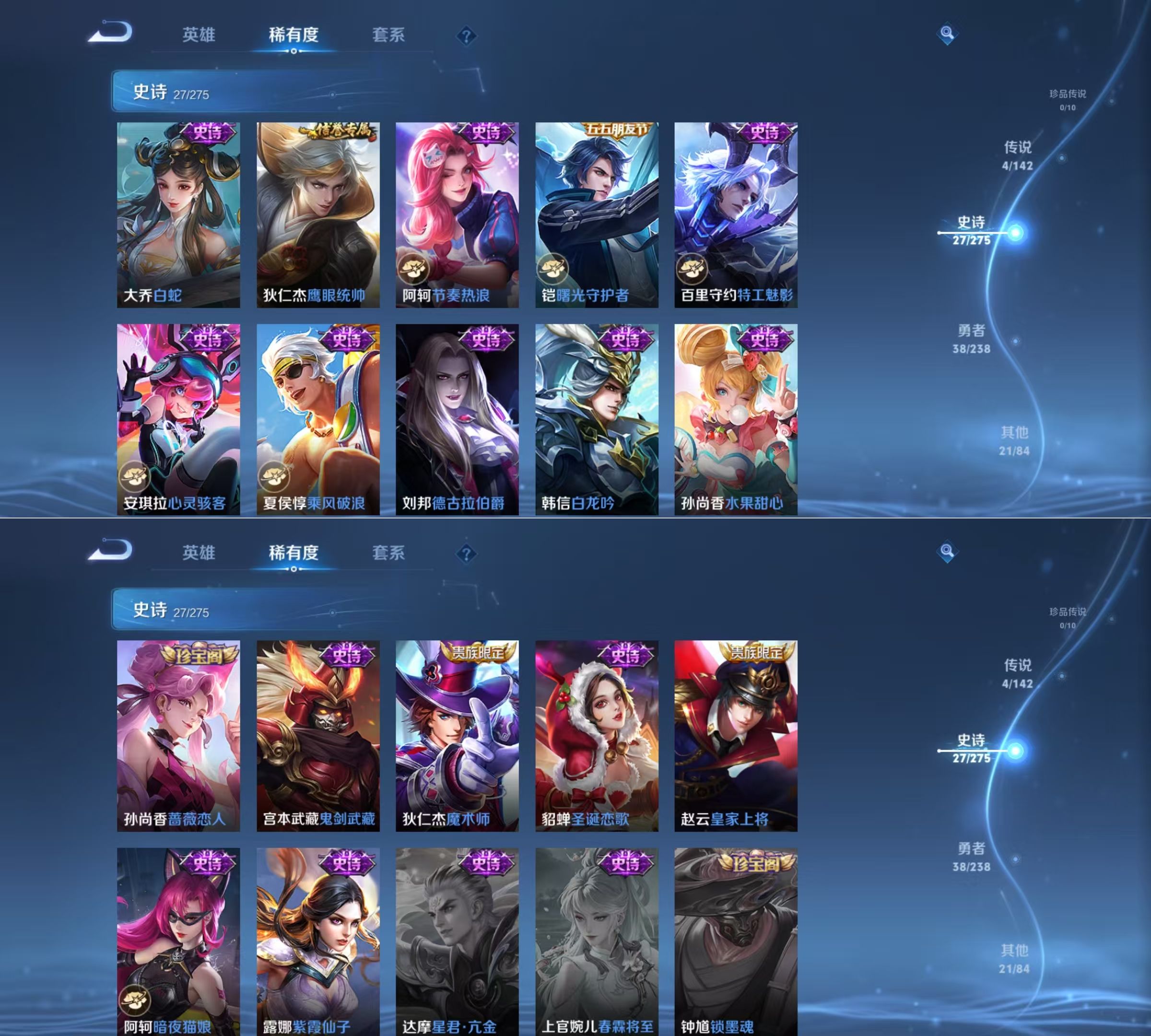 贵族等级:v7皮肤数:92传说品质4 生肖限定1 荣耀典藏1 英雄数:109