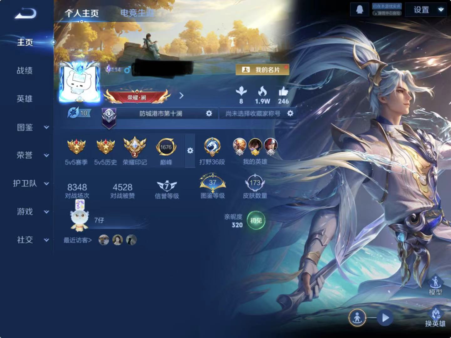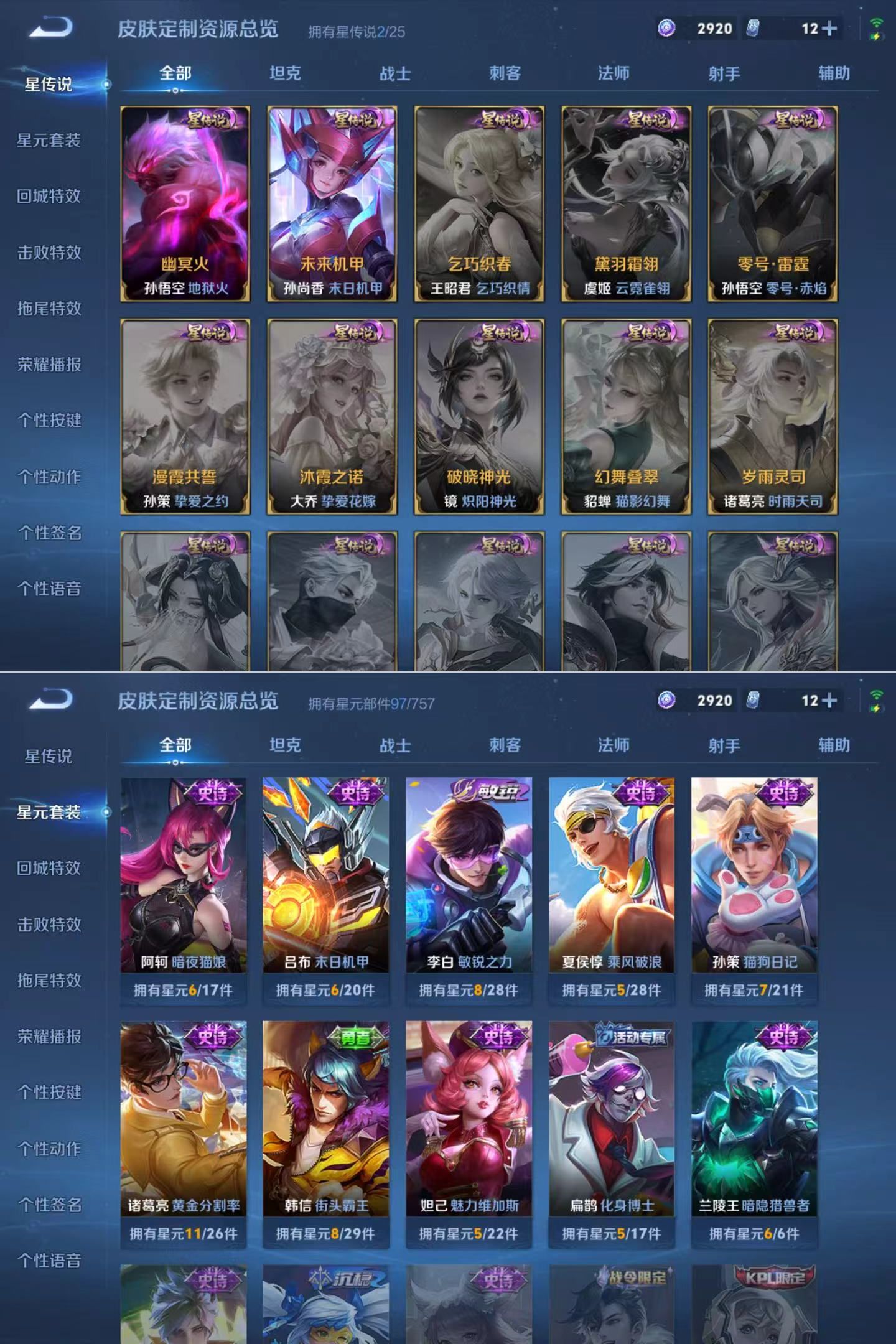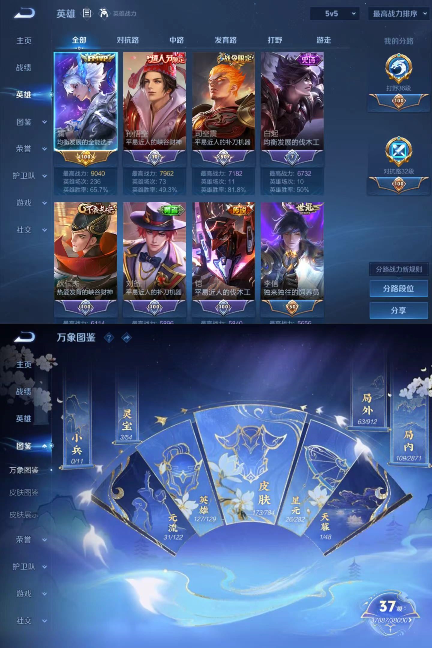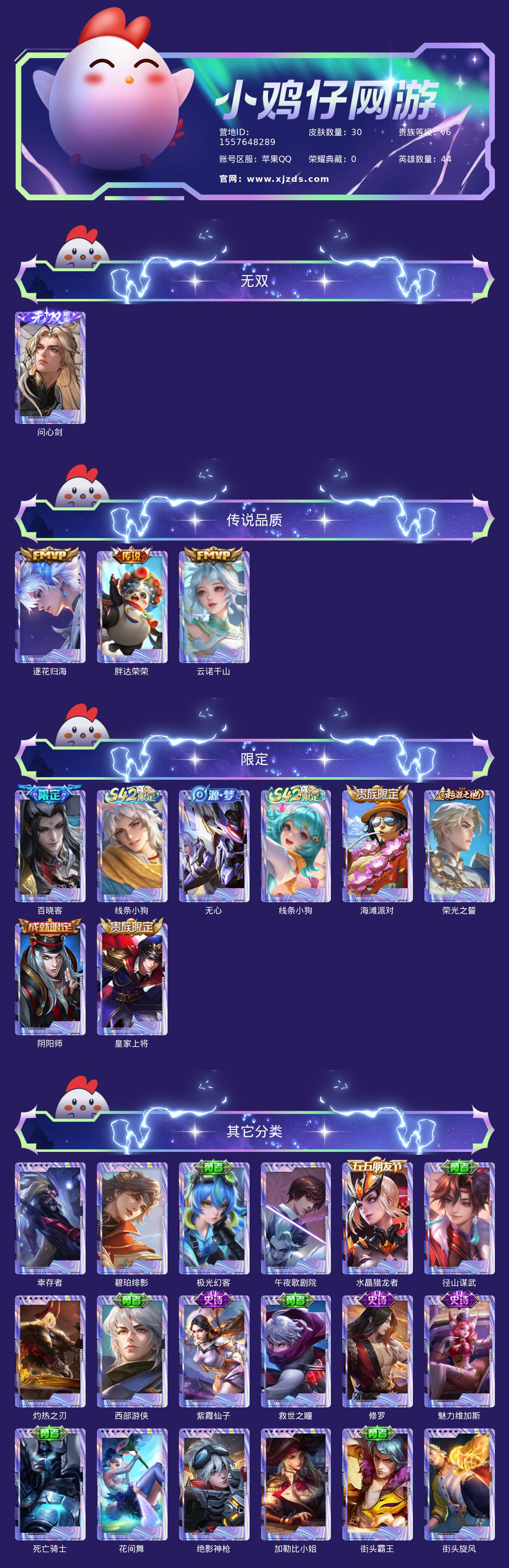 贵族等级:v6皮肤数:30传说品质3 无双1 英雄数:44