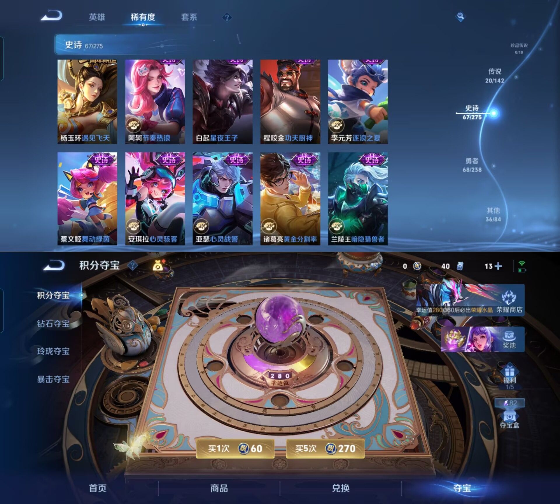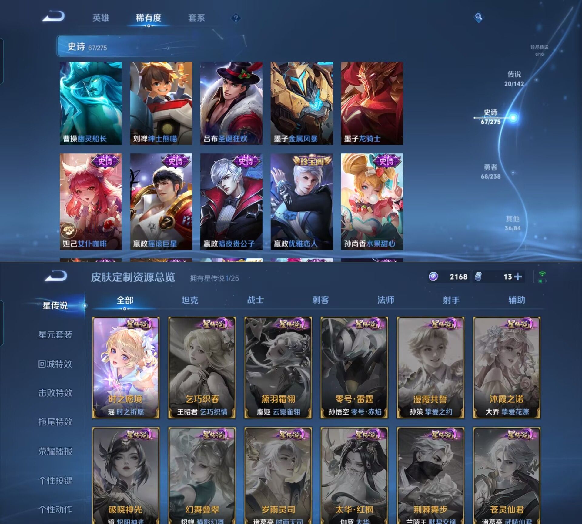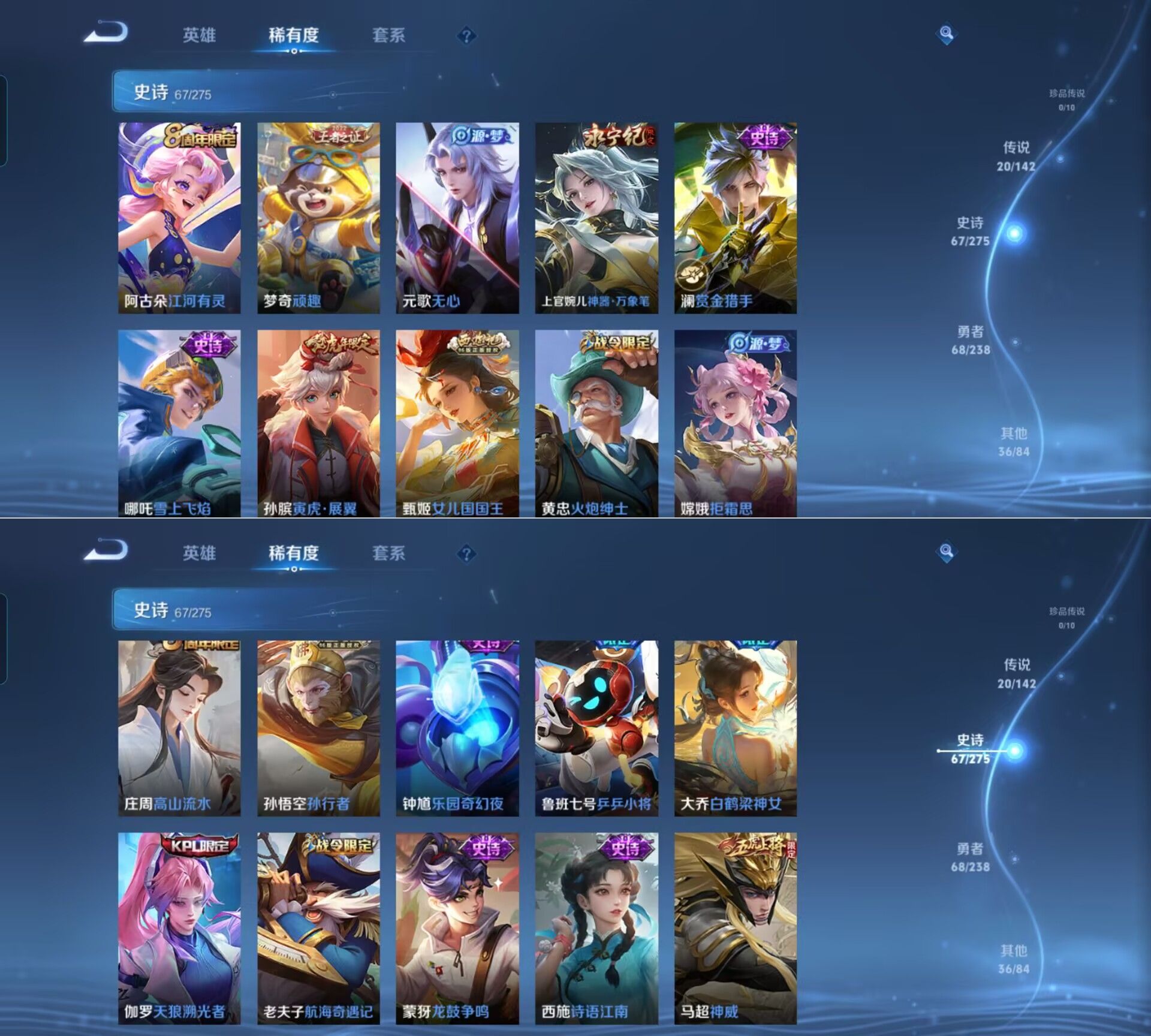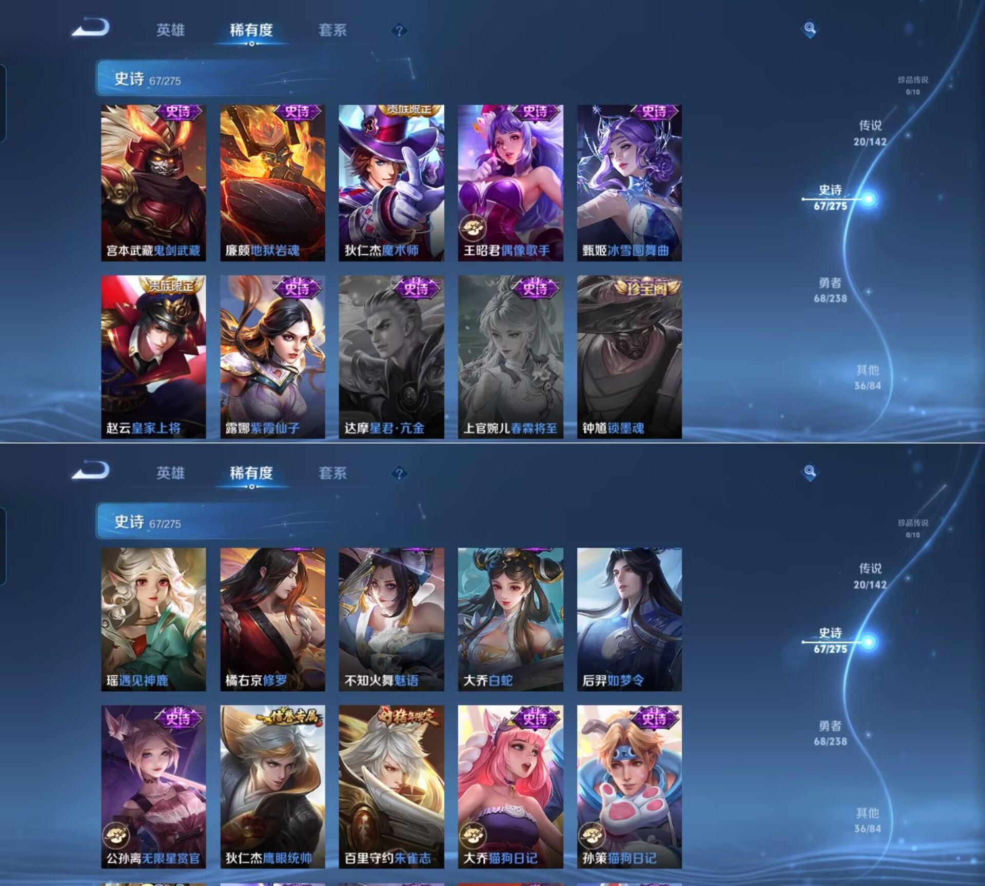 贵族等级:v8皮肤数:191情人节限定3 传说品质20 生肖限定5 英雄数:127