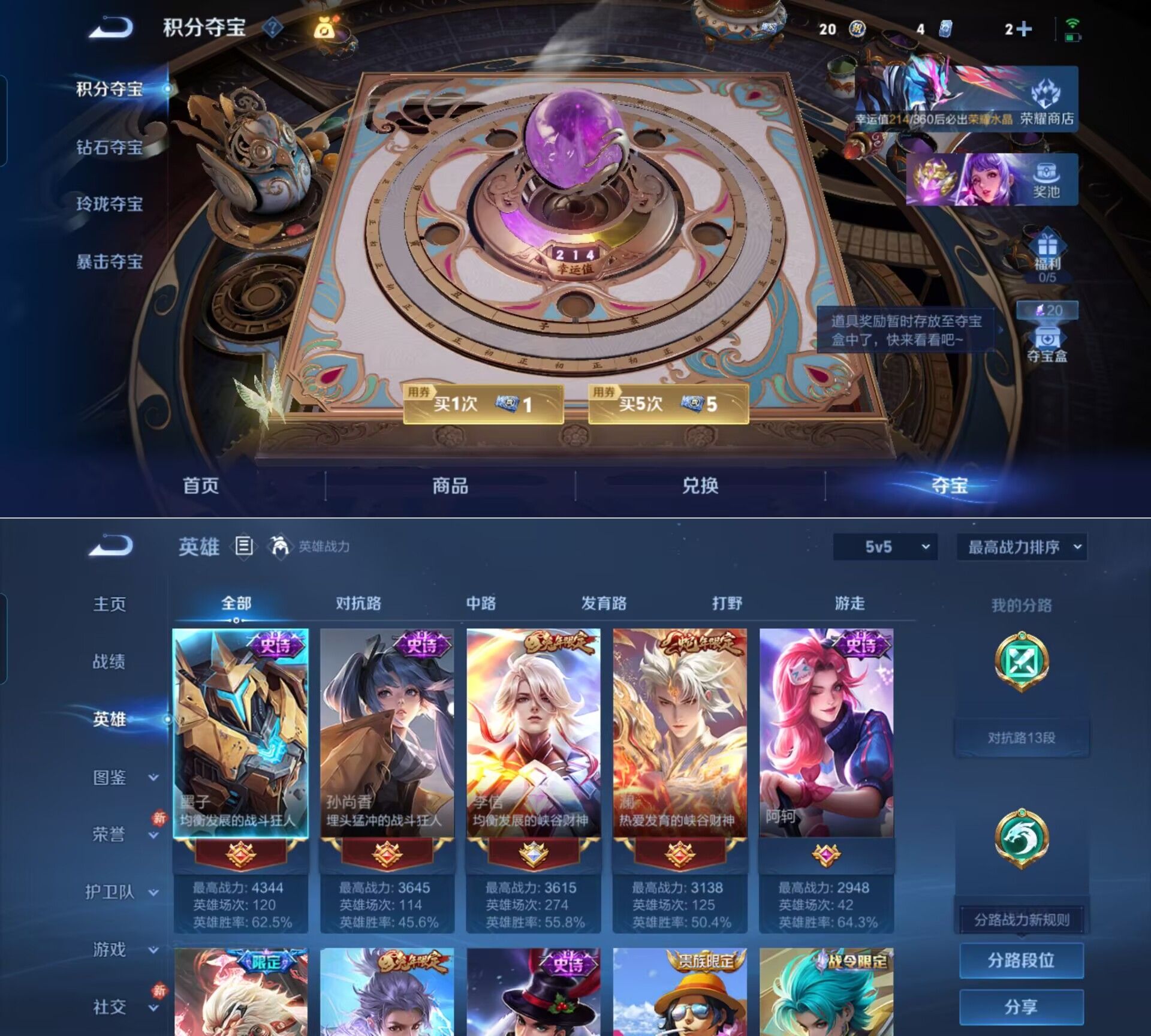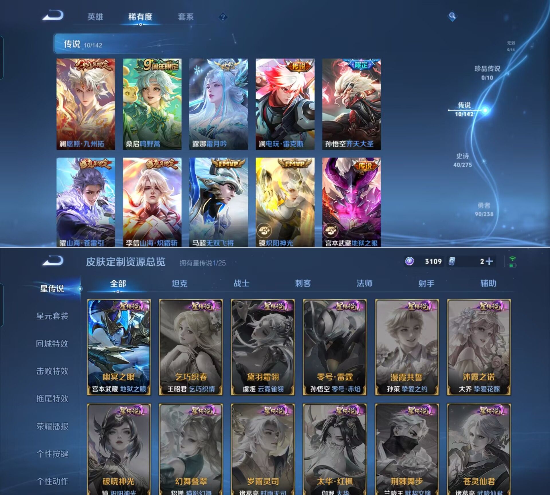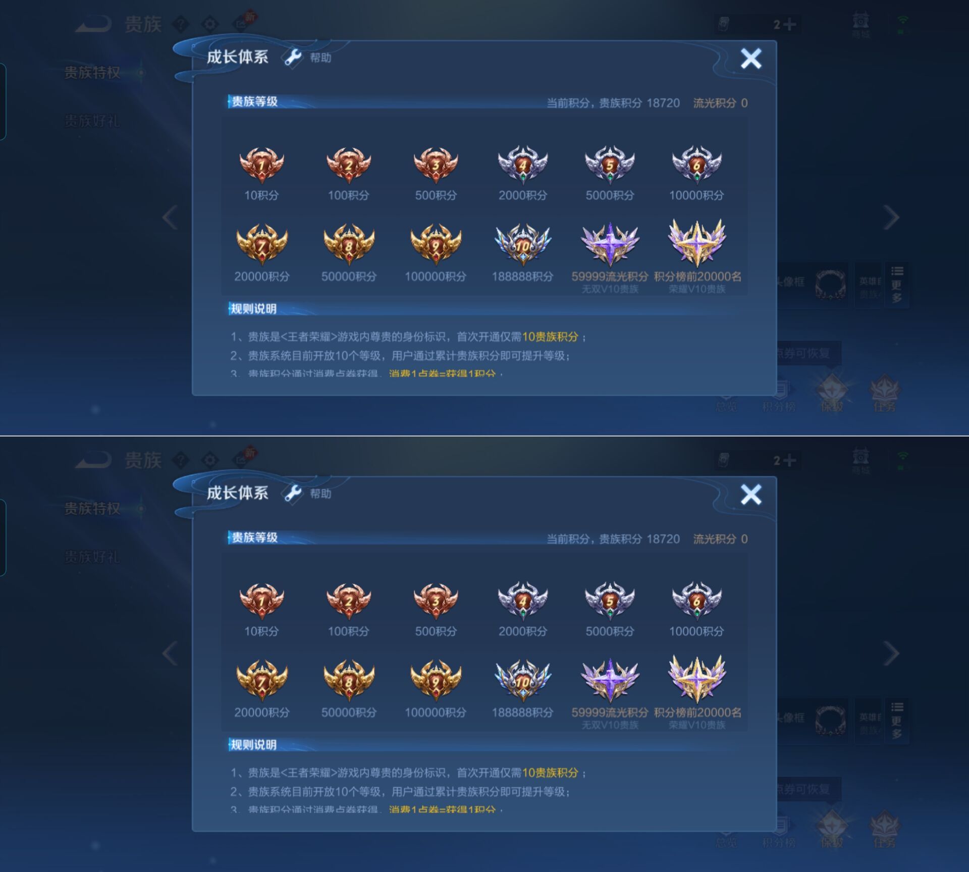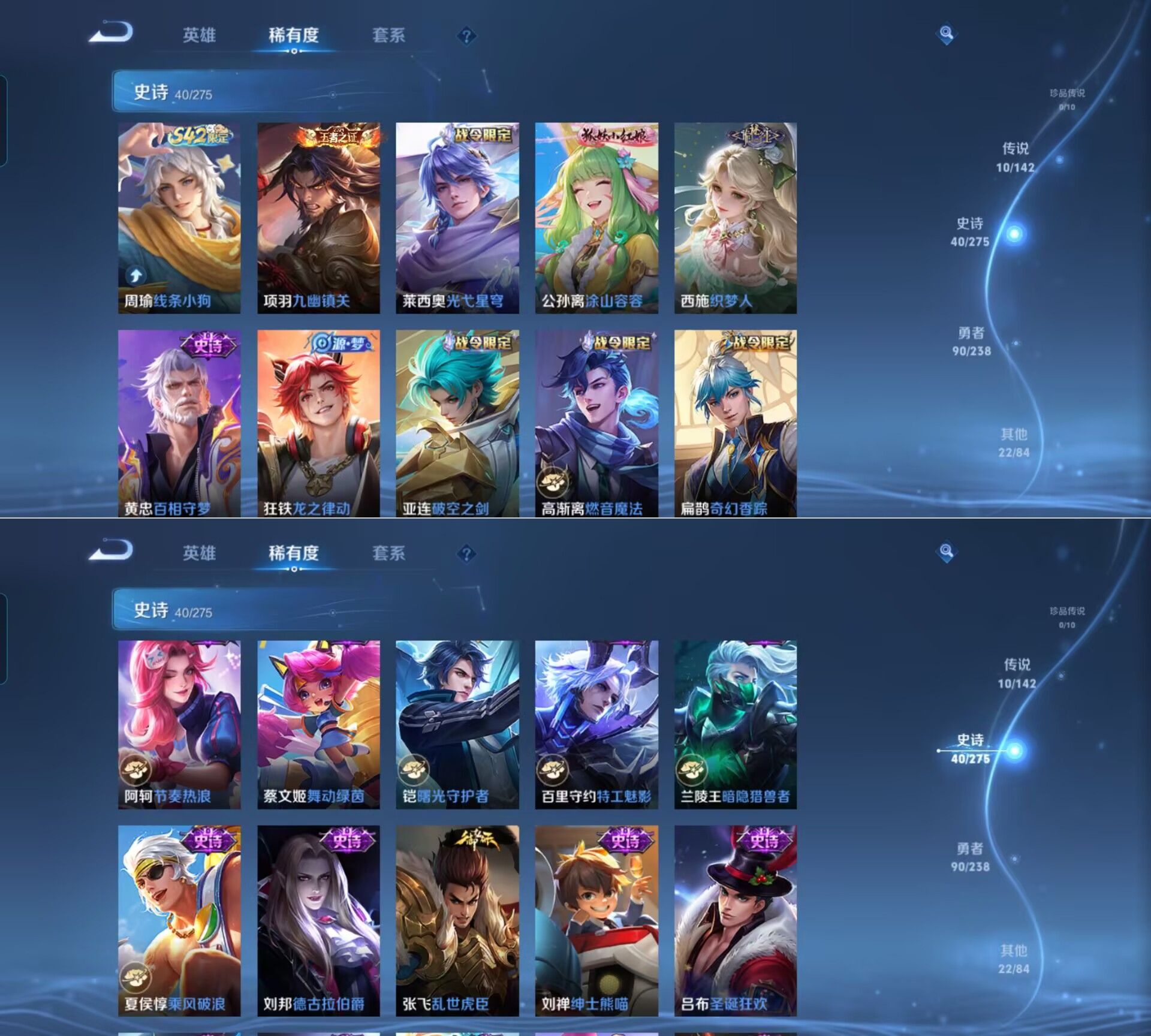 贵族等级:v6皮肤数:162传说品质10 生肖限定3 英雄数:127