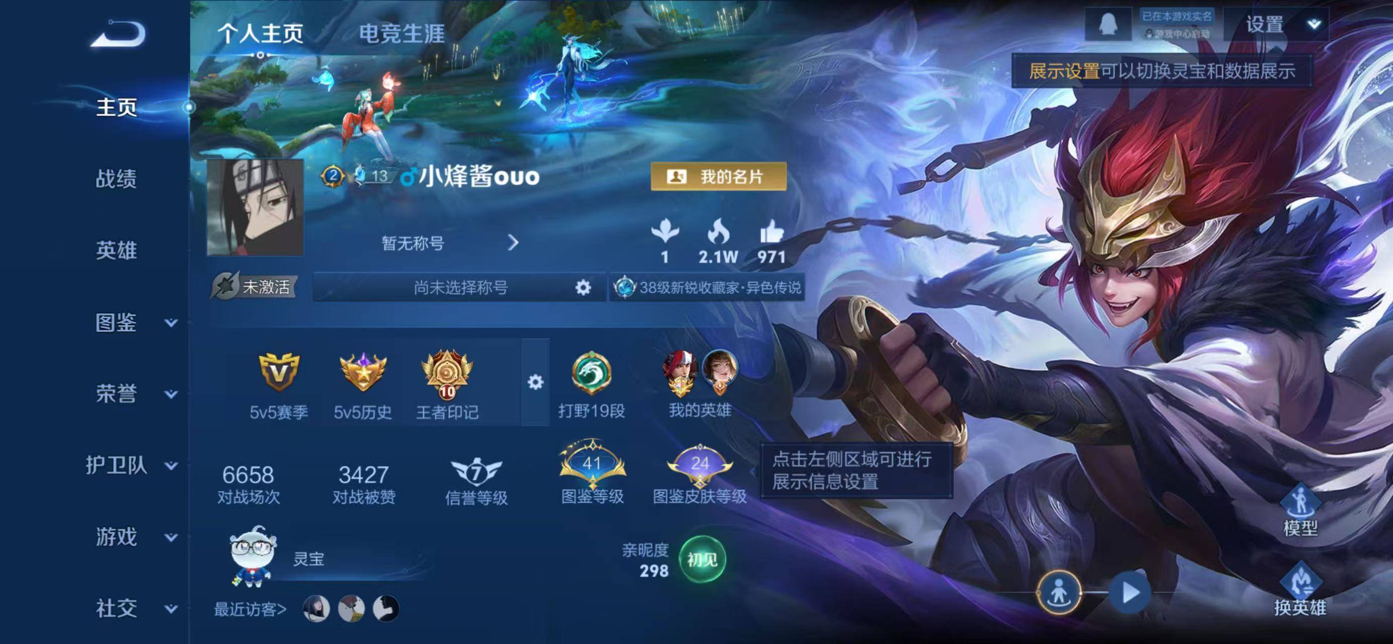 贵族等级:v8皮肤数:273传说品质13 生肖限定4 荣耀典藏1 英雄数:122