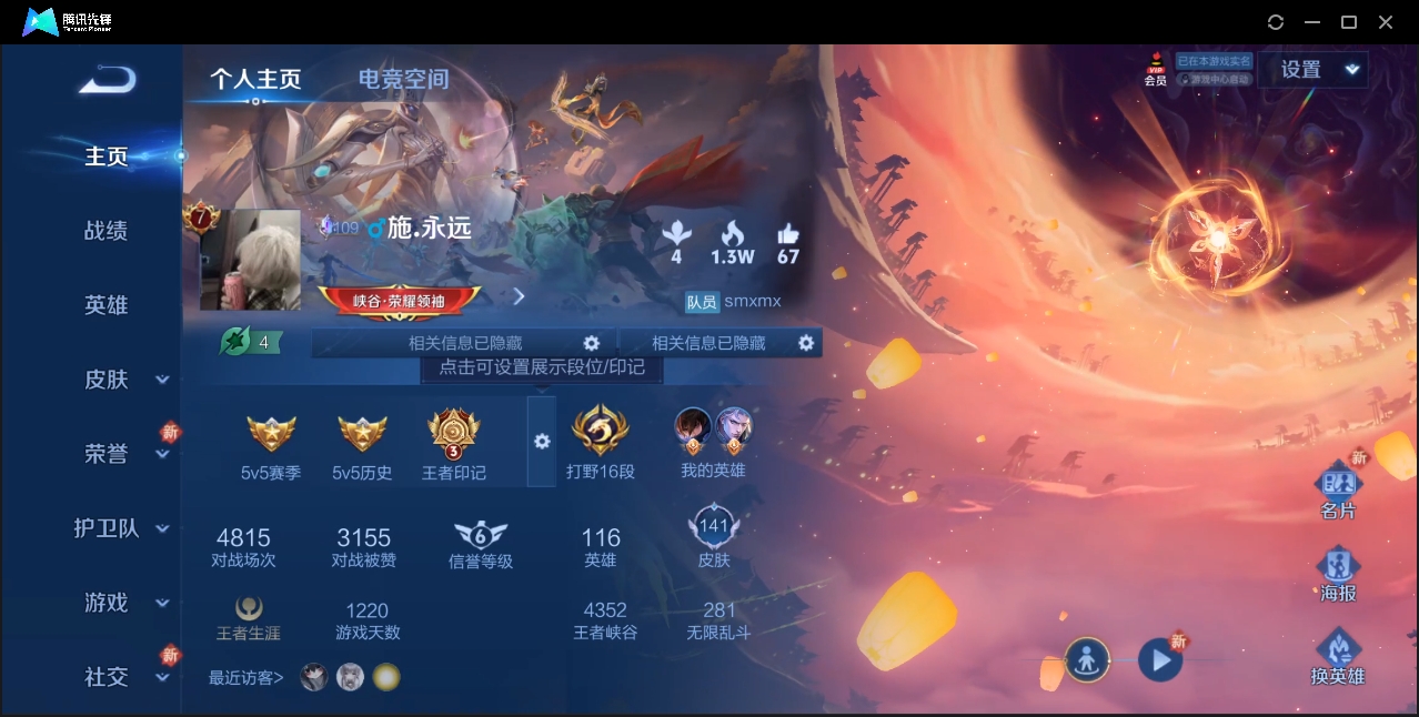 贵族等级:v8皮肤数:274情人节限定2 传说品质16 荣耀典藏3 生肖限定2 英雄数:121