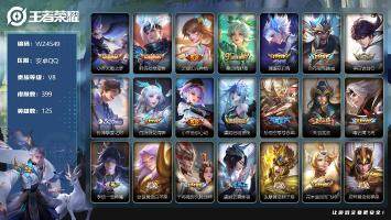 贵族等级:v8皮肤数:318传说品质21 生肖限定10 情人节限定3 荣耀典藏1 英雄数:124