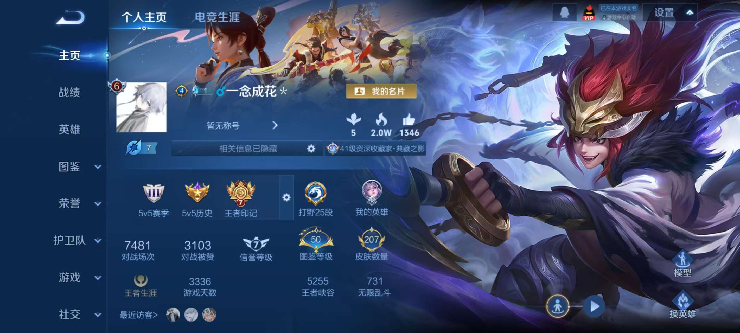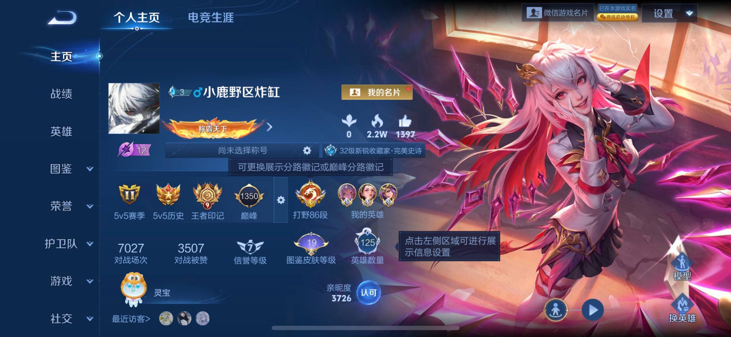 贵族等级:v7皮肤数:193传说品质14 生肖限定2 英雄数:121