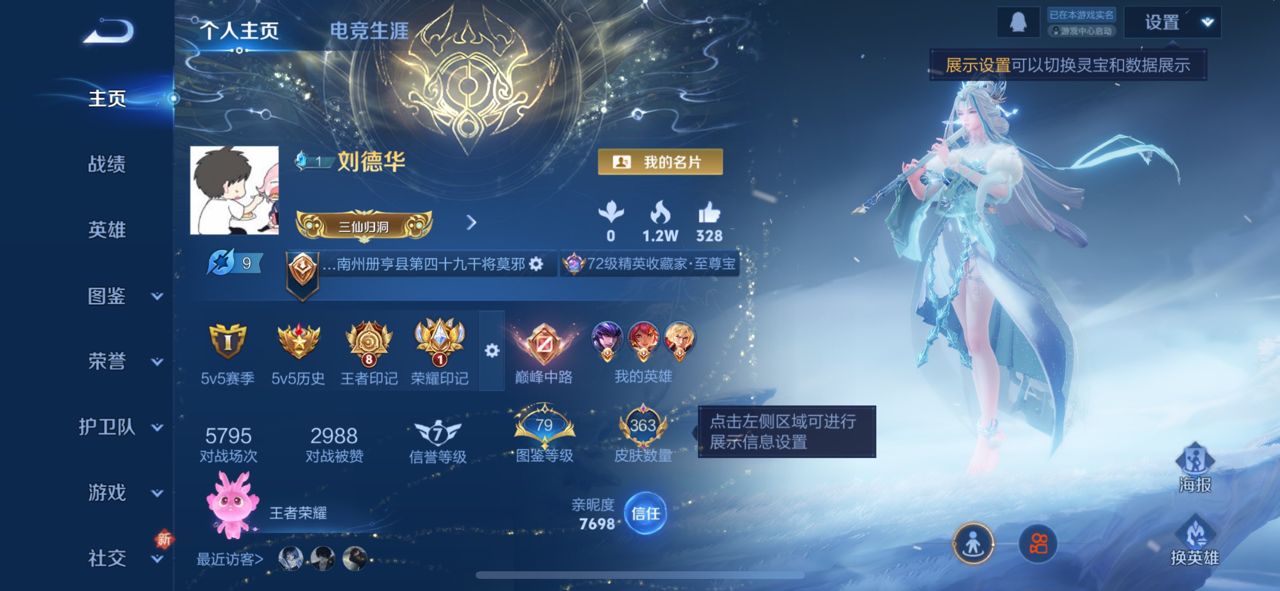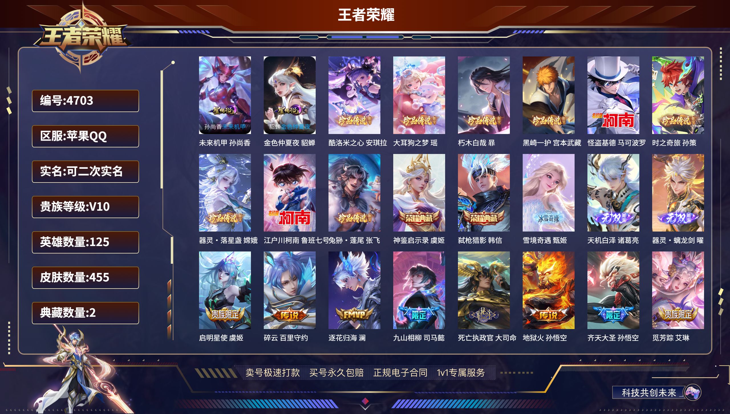 贵族等级:v4皮肤数:118荣耀典藏1 传说品质2 英雄数:116