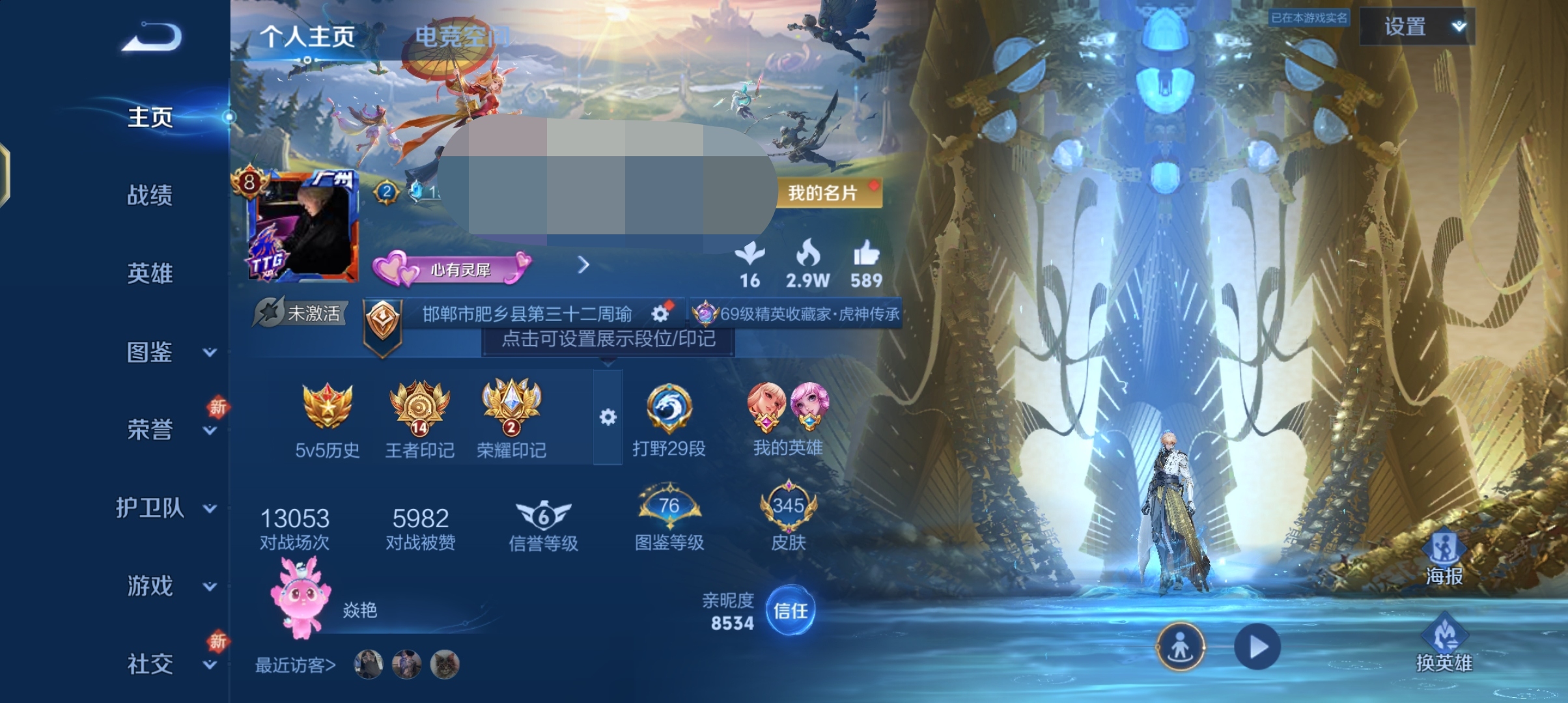 贵族等级:v9皮肤数:206传说品质36 生肖限定11 情人节限定3 荣耀典藏1 英雄数:122