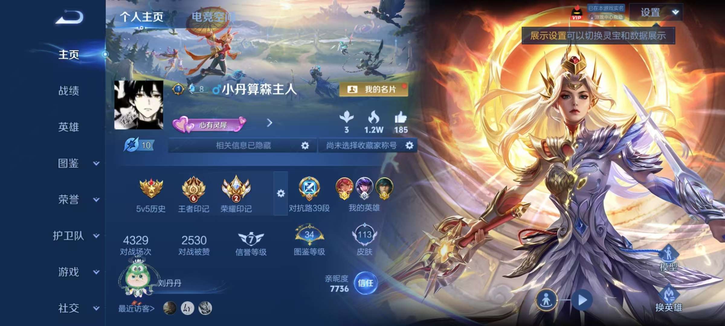 贵族等级:v9皮肤数:333情人节限定4 荣耀典藏3 传说品质21 生肖限定7 英雄数:122