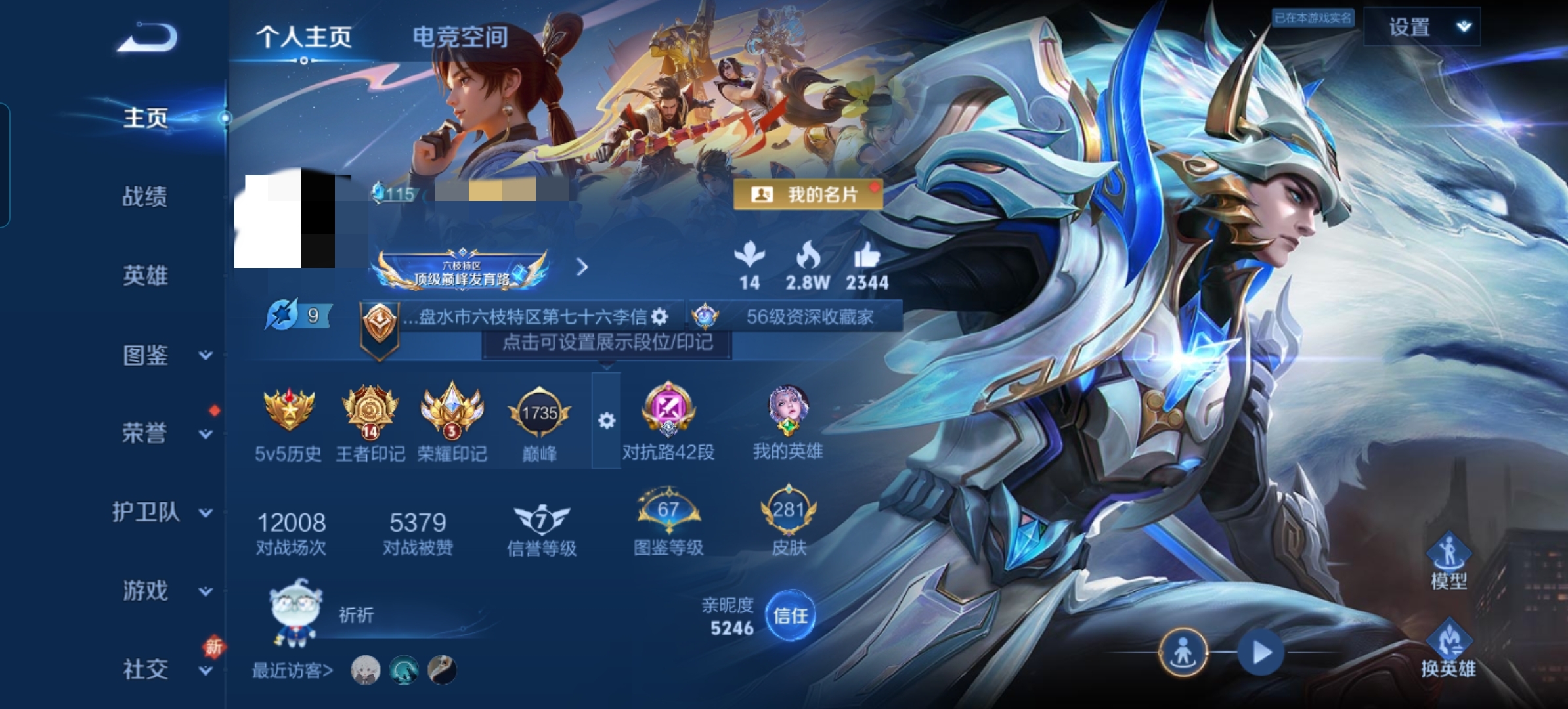 贵族等级:v7皮肤数:98传说品质12 情人节限定1 英雄数:116