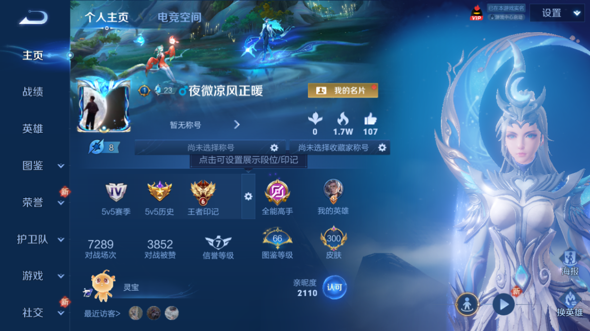 贵族等级:v6皮肤数:169传说品质5 生肖限定1 荣耀典藏1 英雄数:122