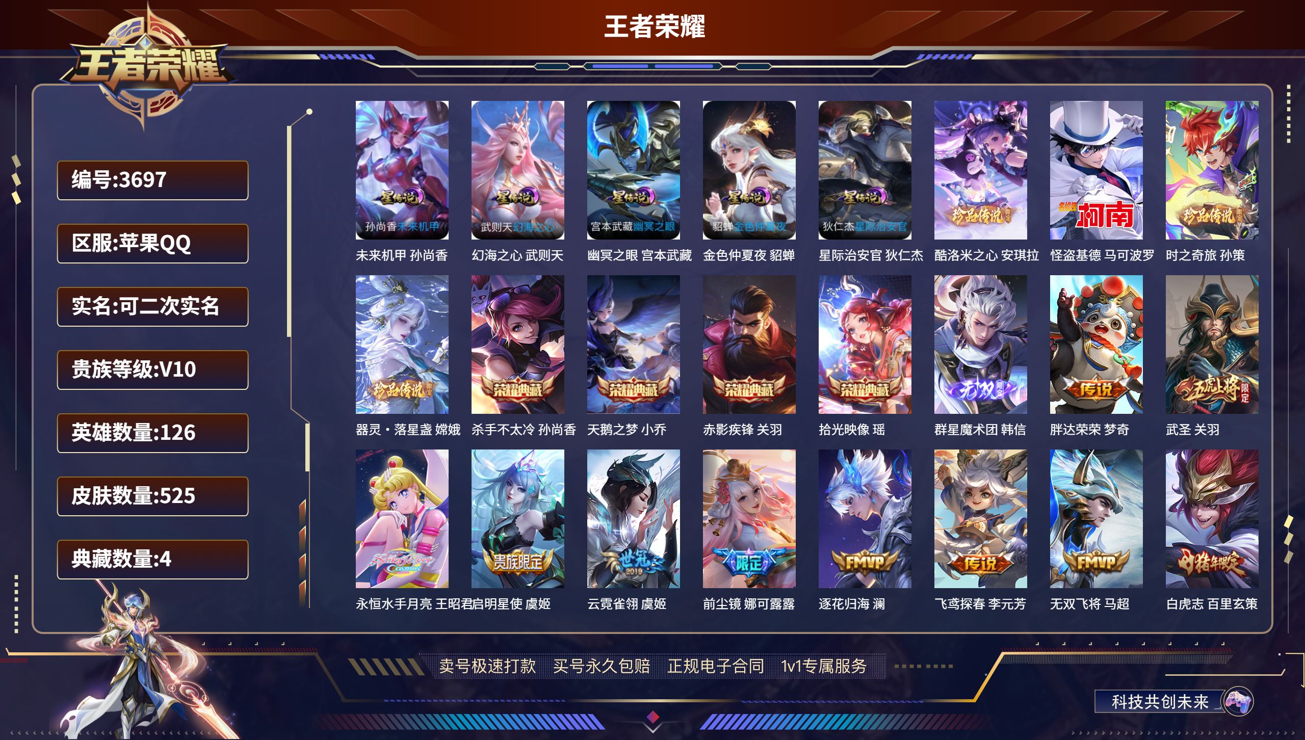 贵族等级:v4皮肤数:100传说品质4 生肖限定1 英雄数:100
