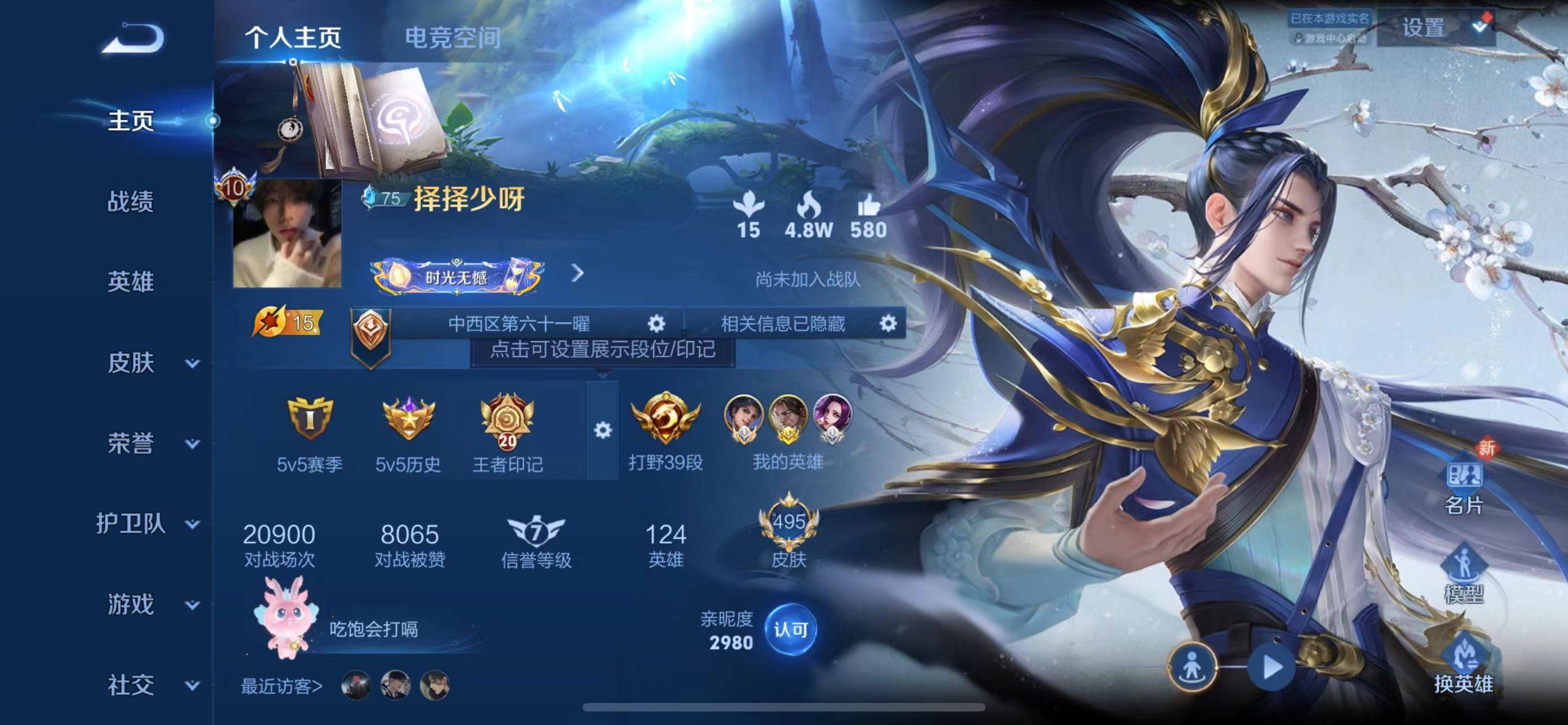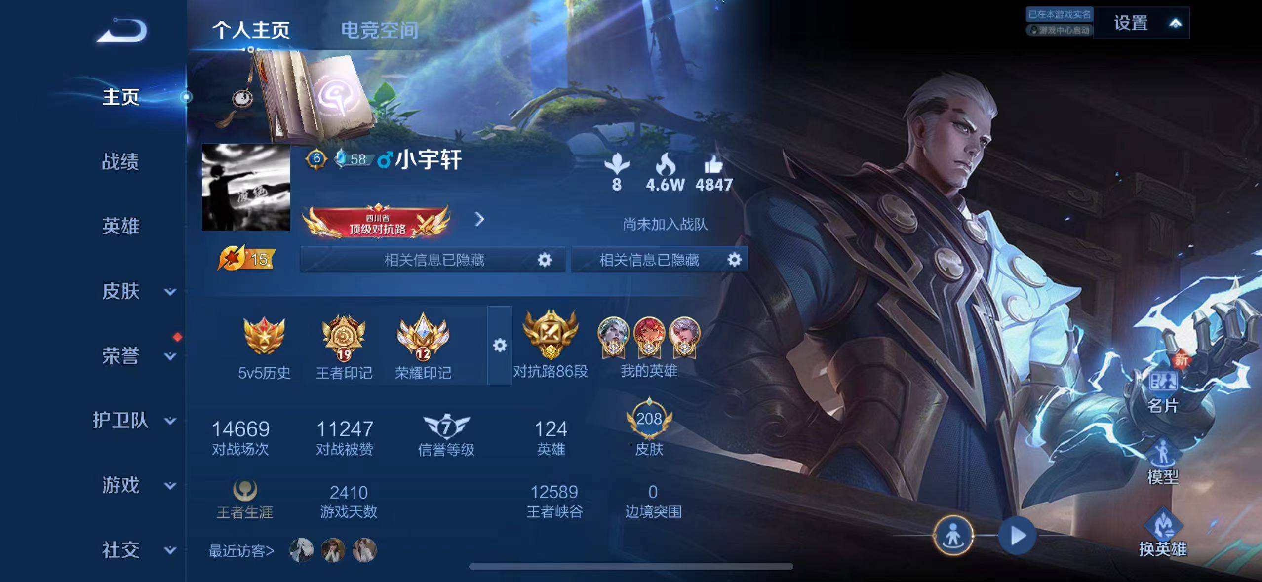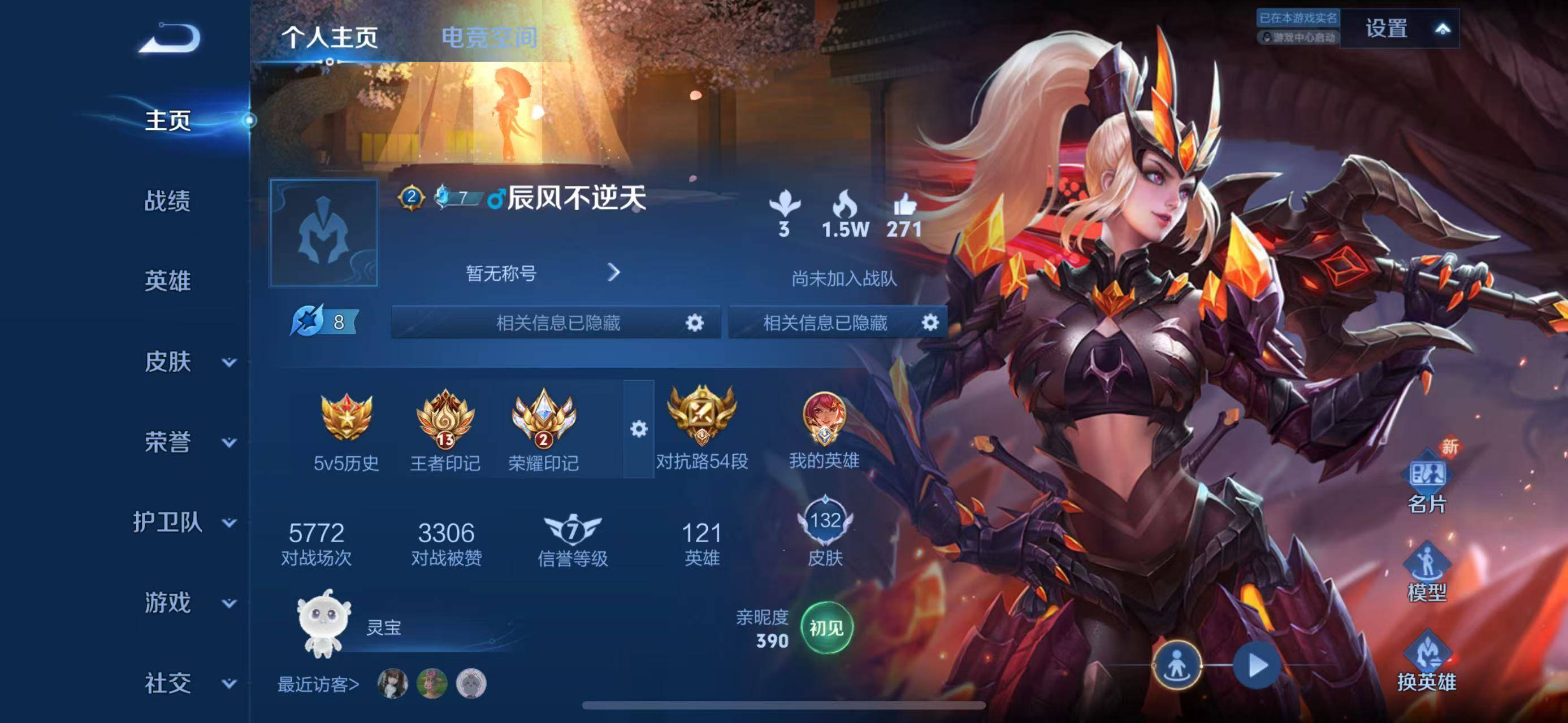 贵族等级:v8皮肤数:268传说品质20 情人节限定5 生肖限定3 荣耀典藏1 英雄数:119