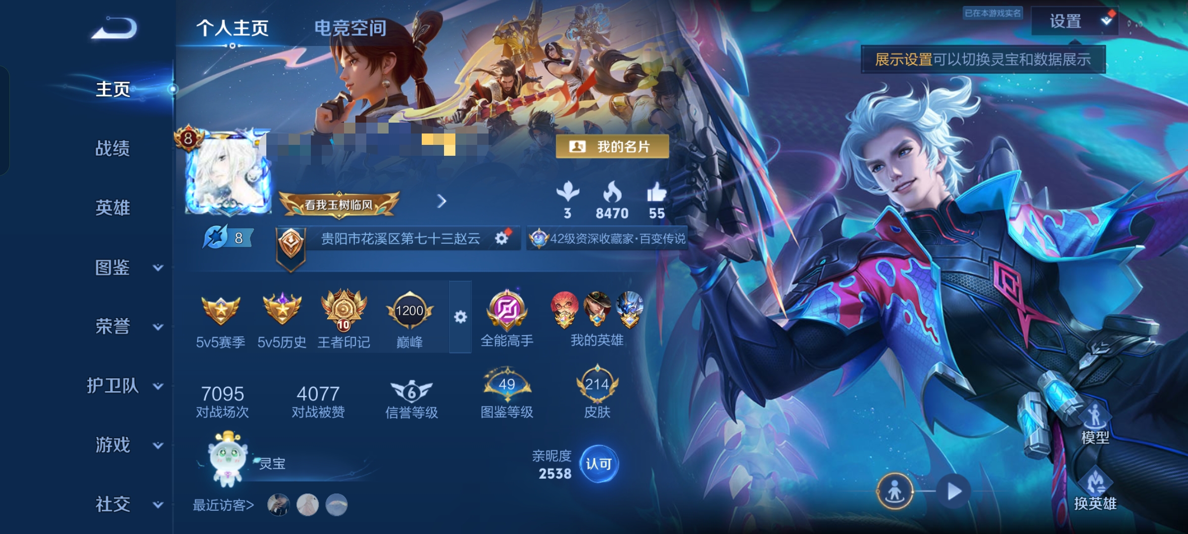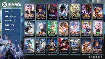 贵族等级:v8皮肤数:231传说品质21 情人节限定3 荣耀典藏2 生肖限定5 英雄数:122