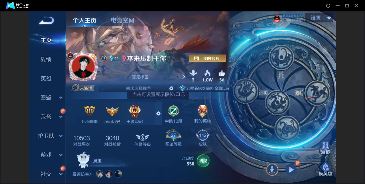 贵族等级:v3皮肤数:13传说品质1 英雄数:18