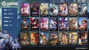 贵族等级:v6皮肤数:109情人节限定1 传说品质1 生肖限定1 英雄数:111