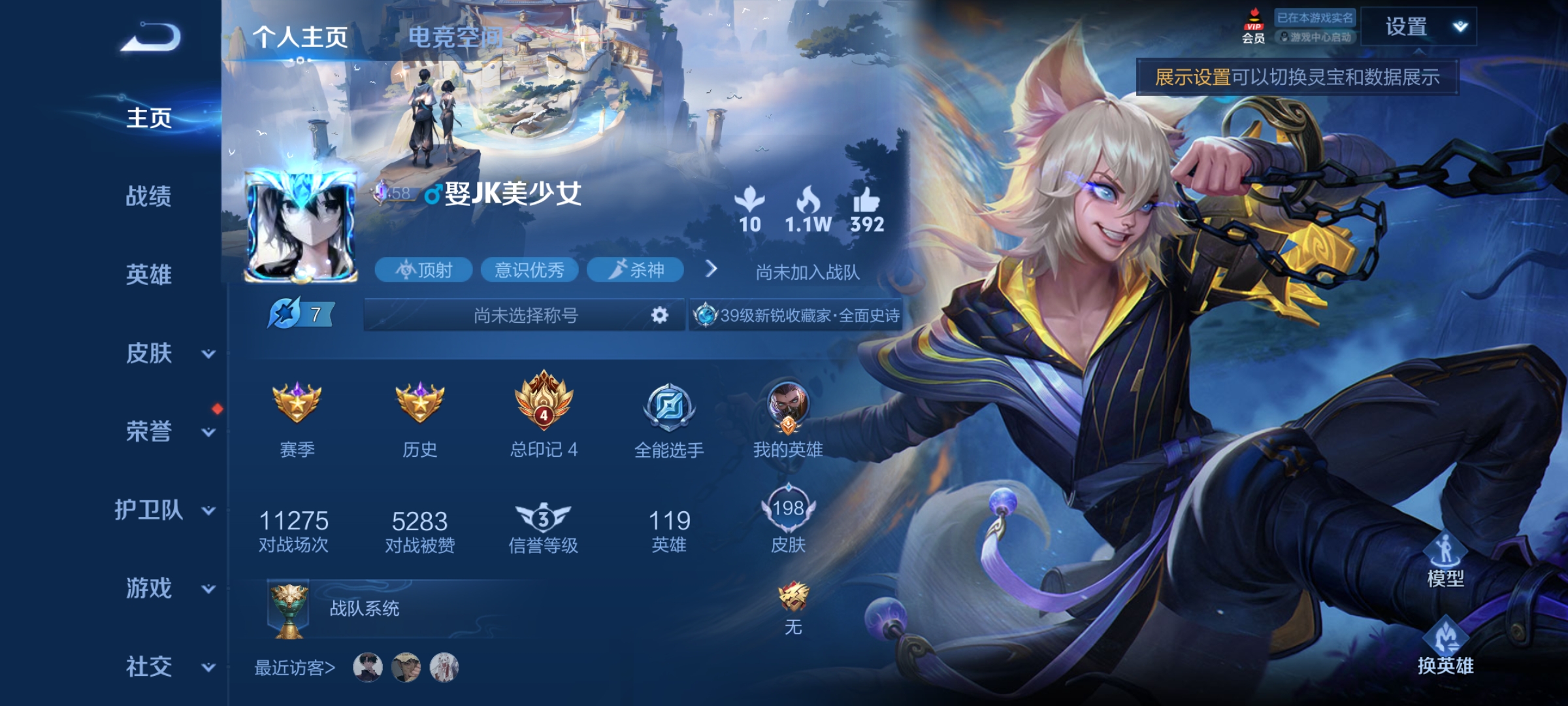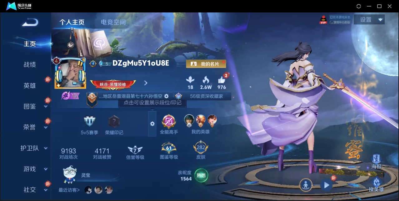 贵族等级:v3皮肤数:55生肖限定1 英雄数:74