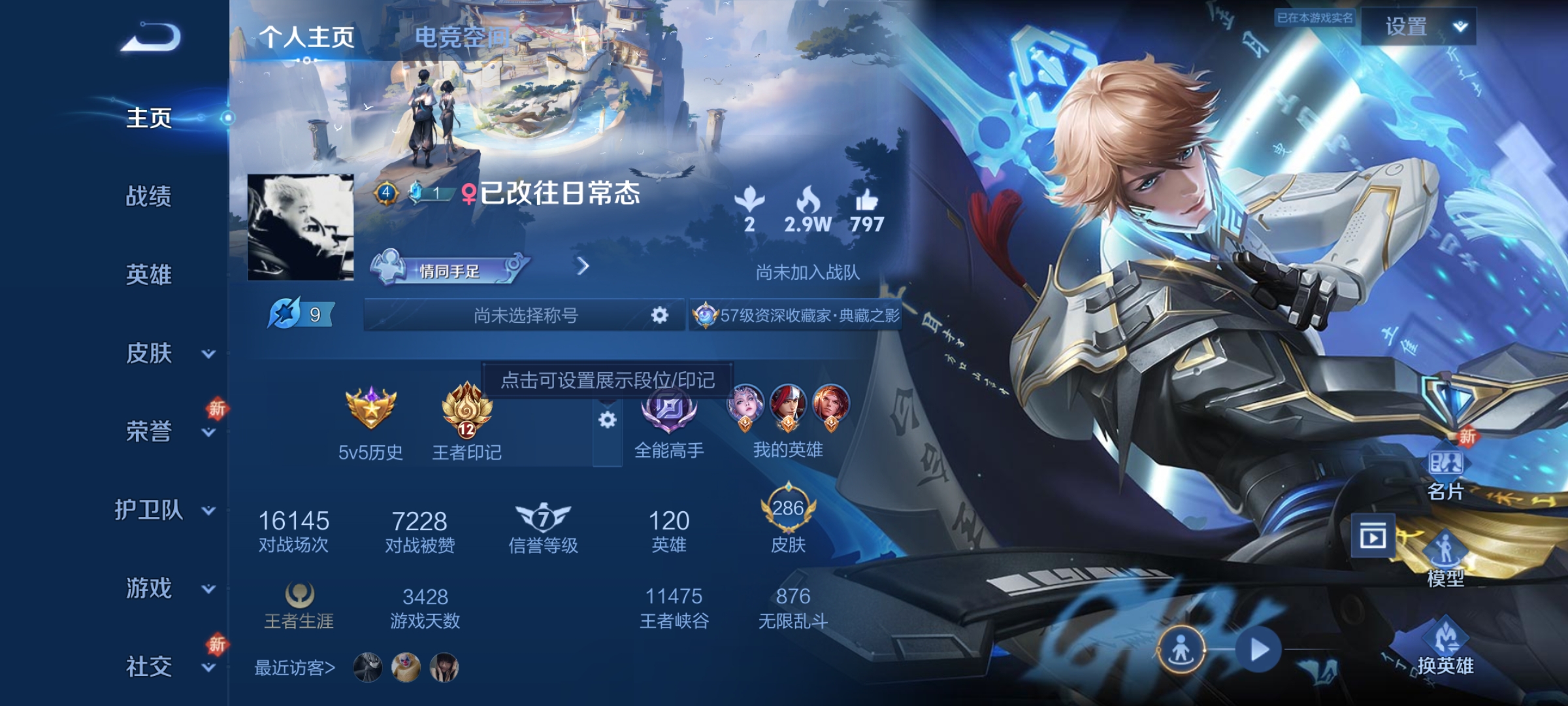 贵族等级:v8皮肤数:192传说品质14 生肖限定4 情人节限定4 英雄数:119