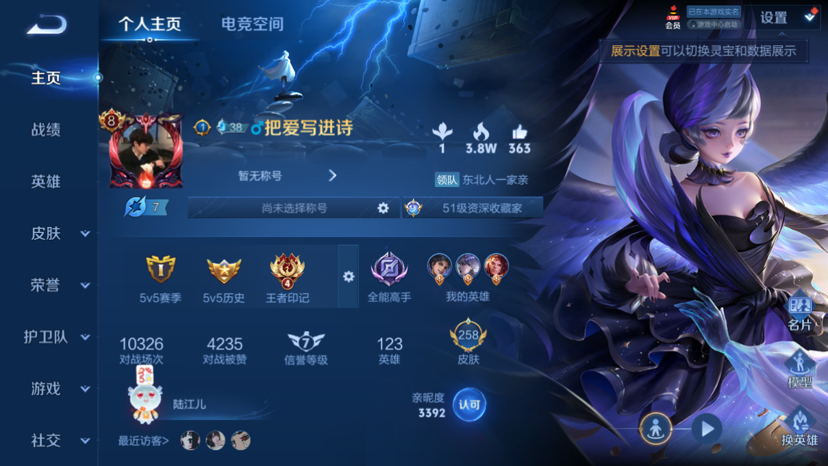 贵族等级:v4皮肤数:9传说品质2 英雄数:23