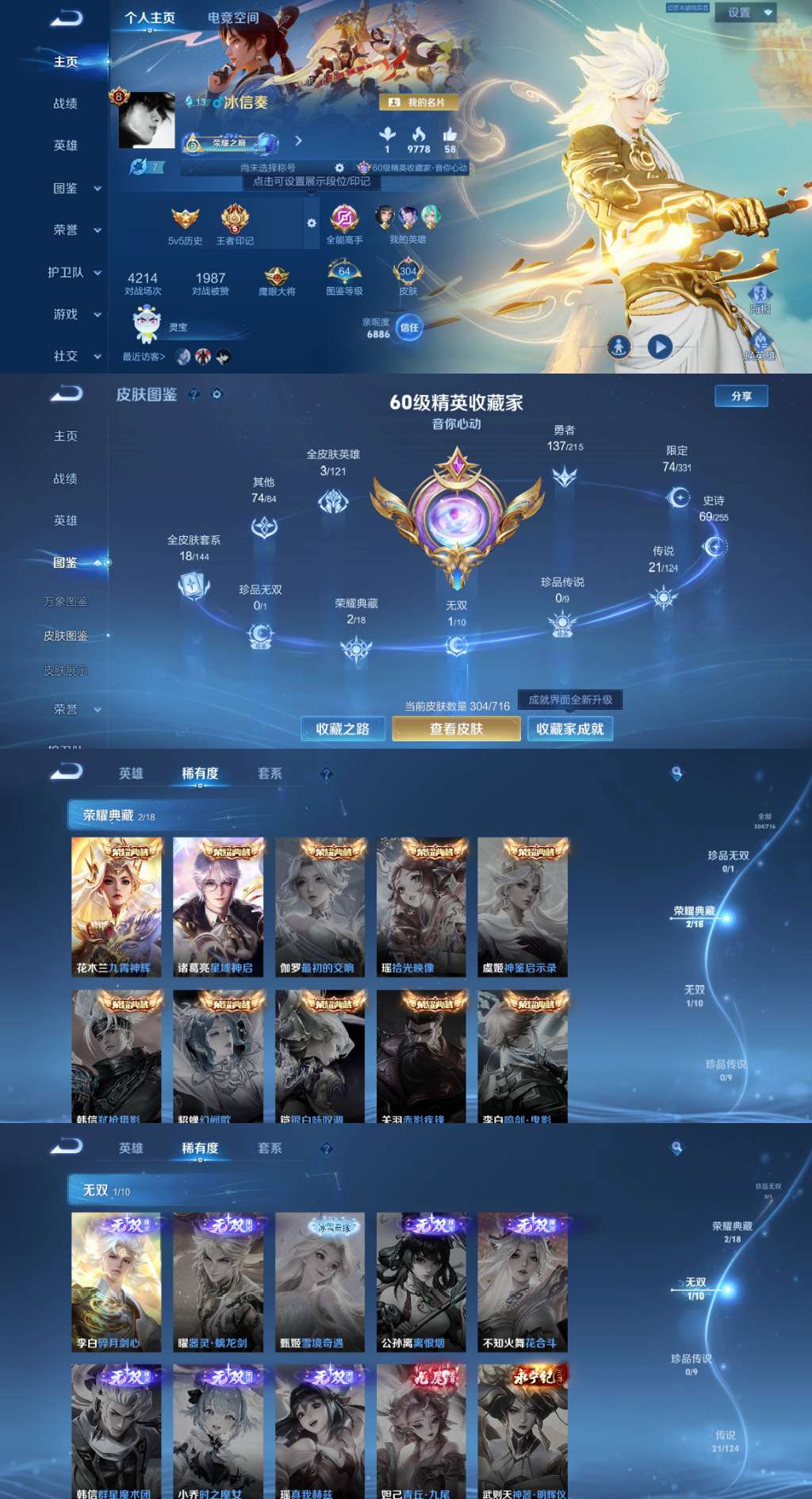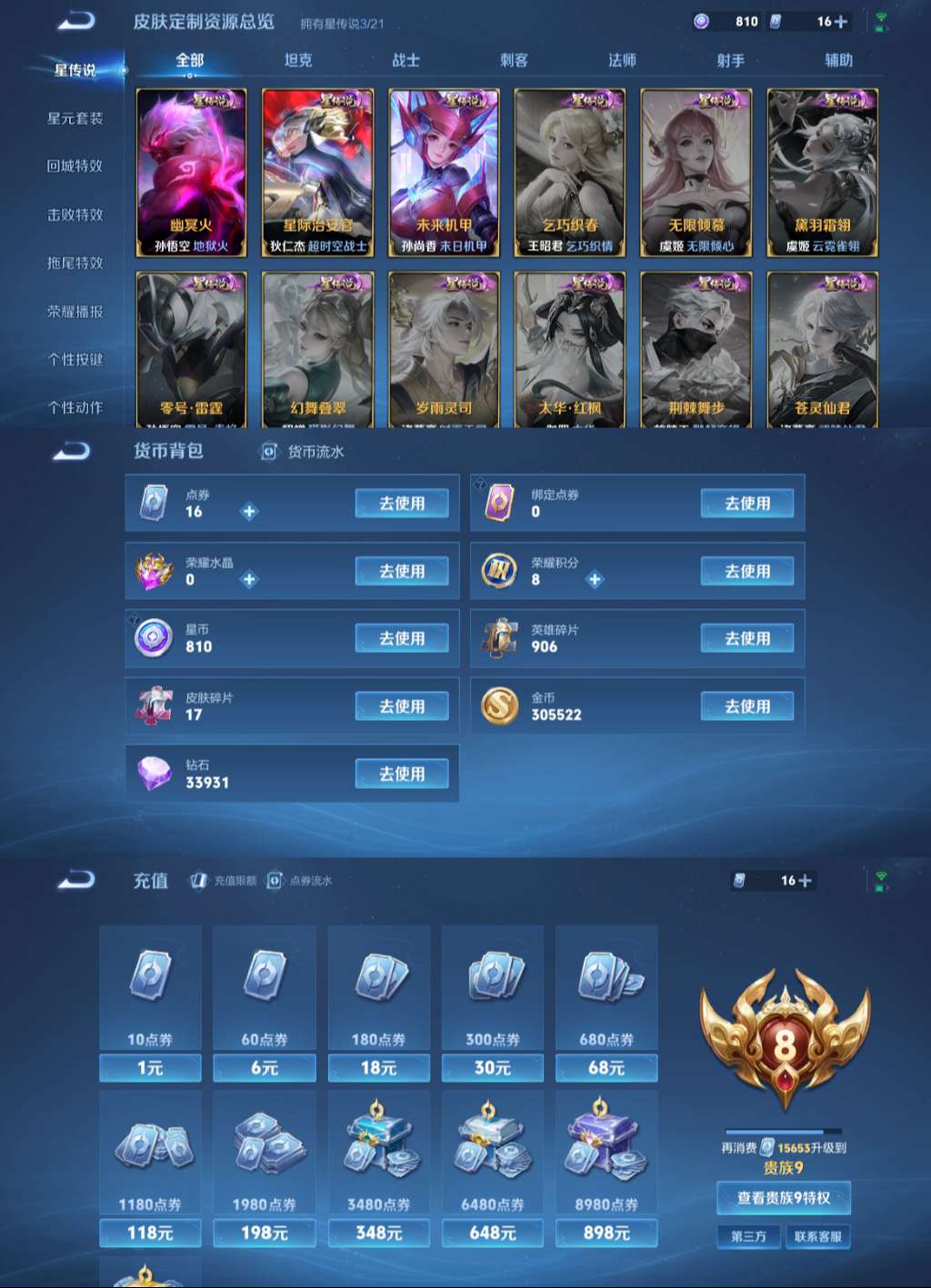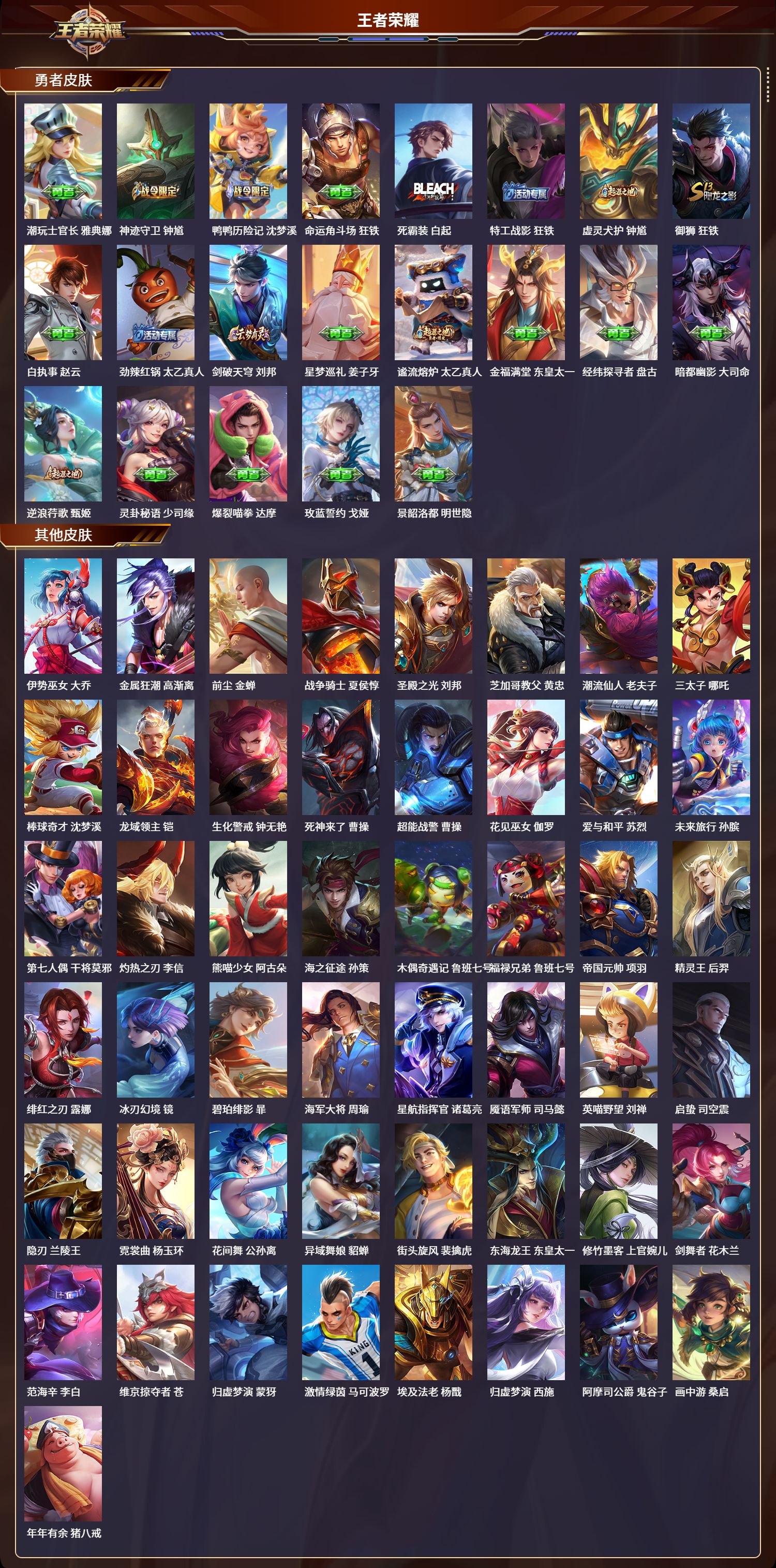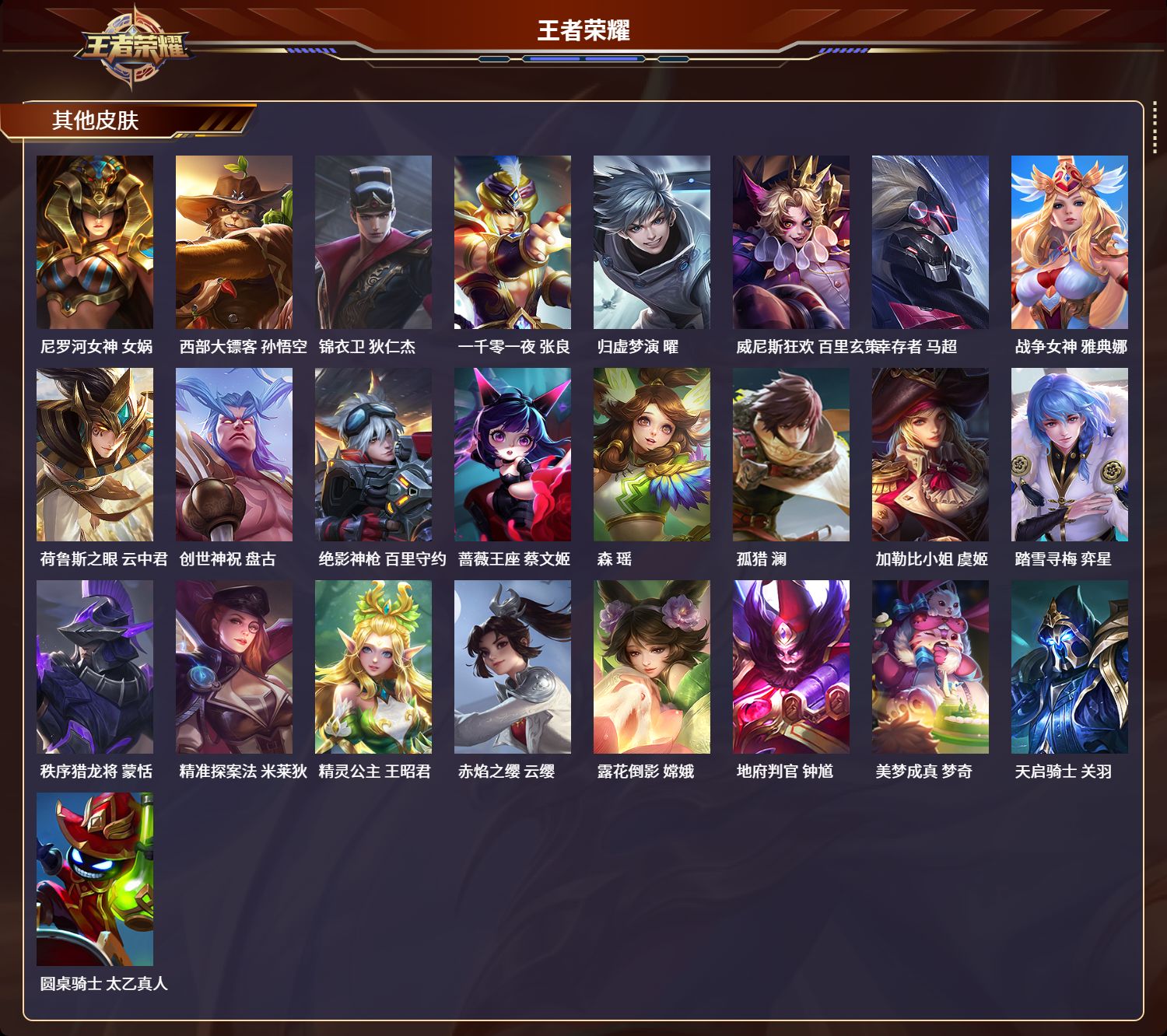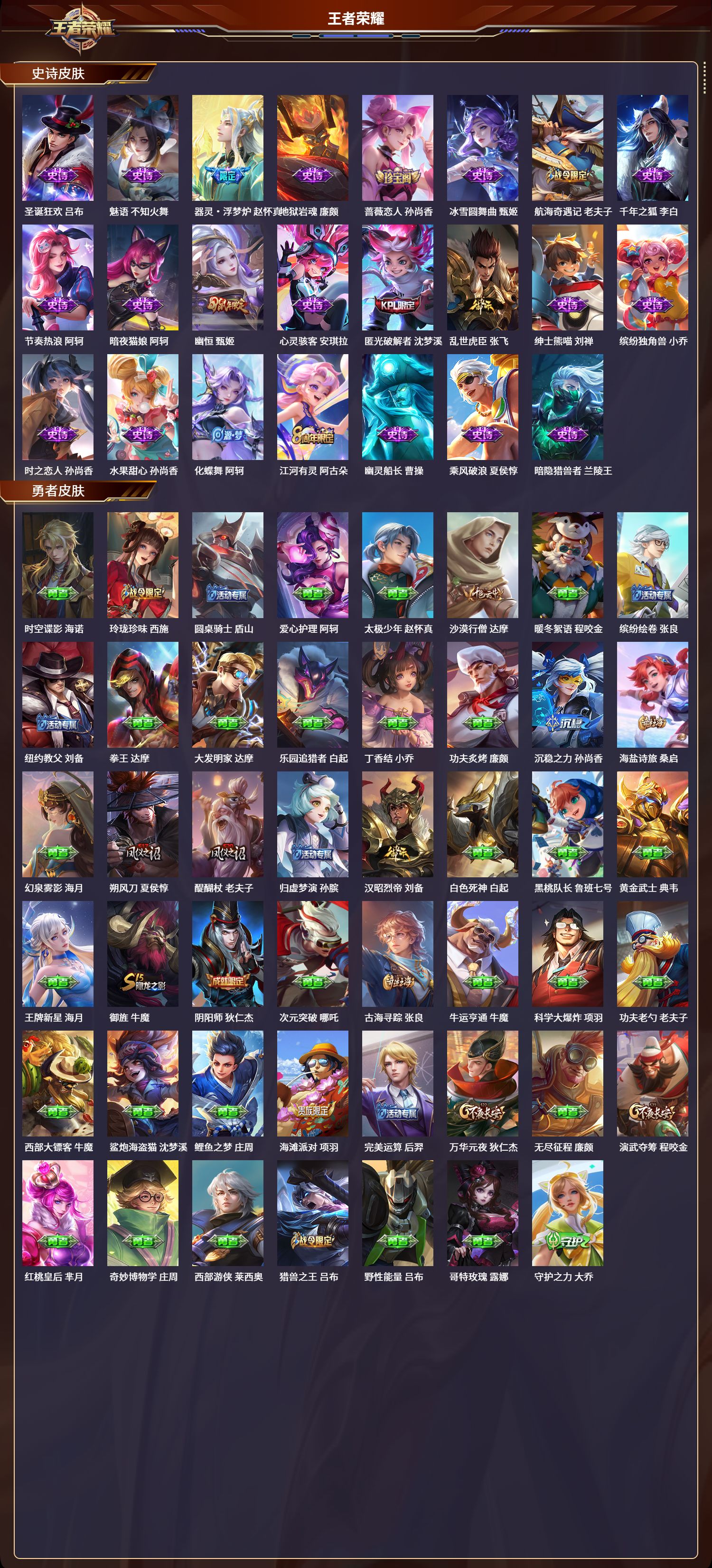 贵族等级:v7皮肤数:101传说品质4 情人节限定2 生肖限定1 英雄数:109