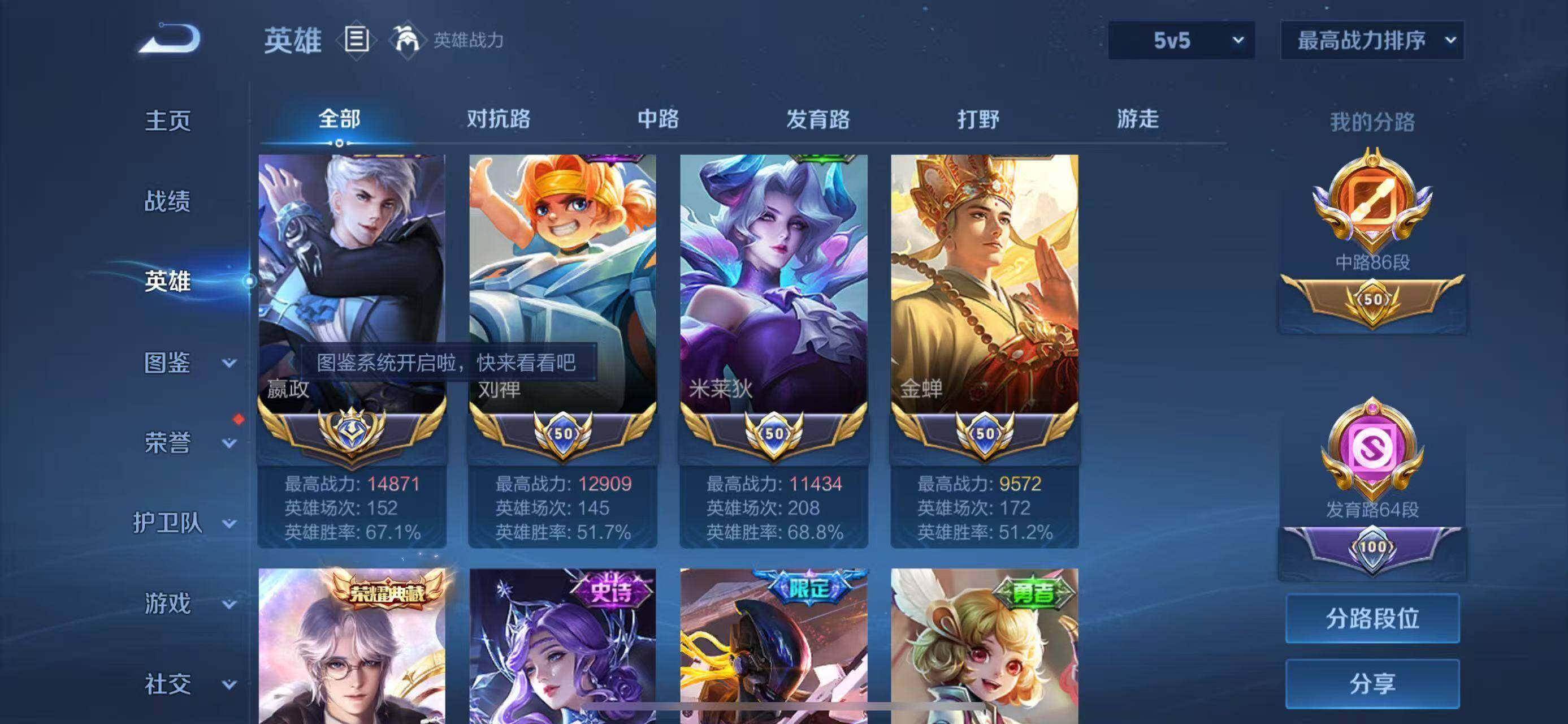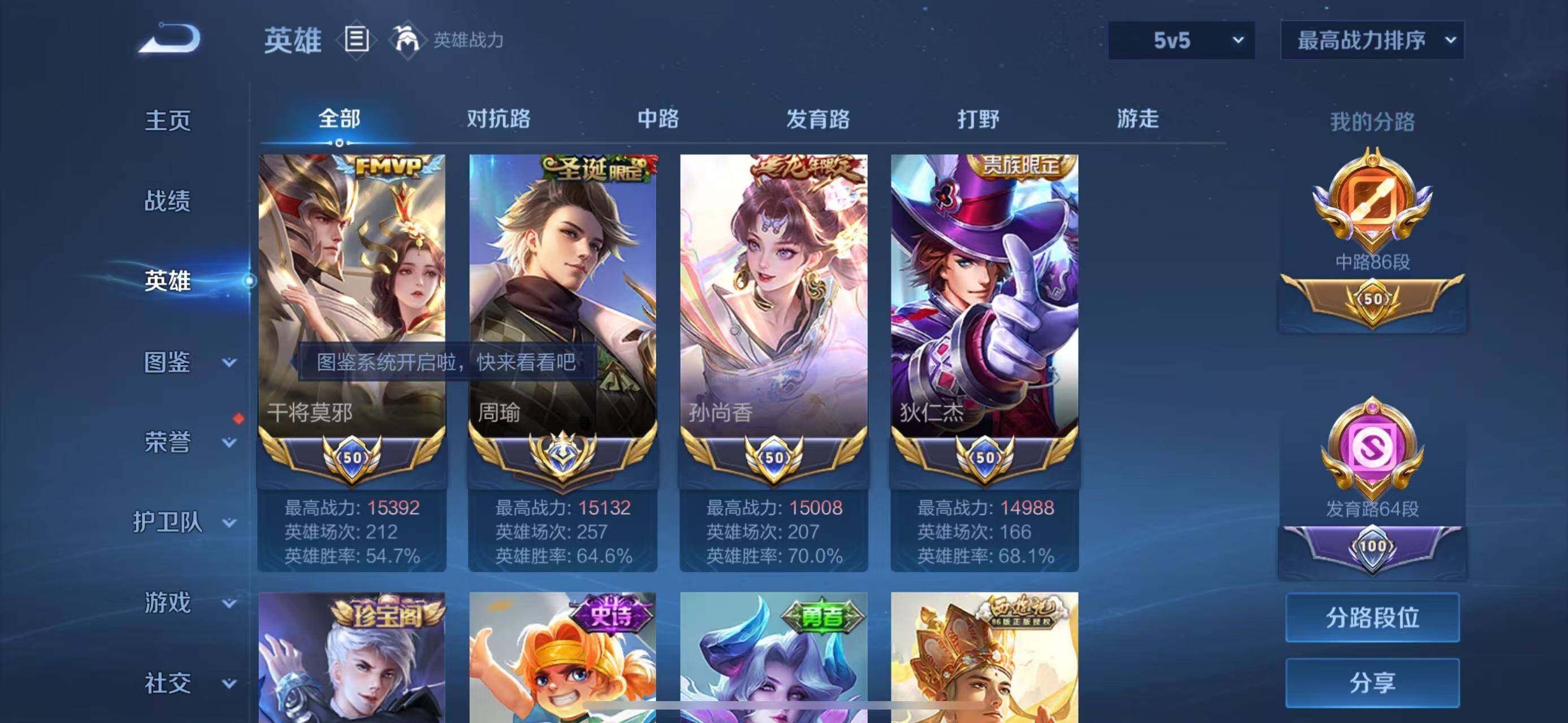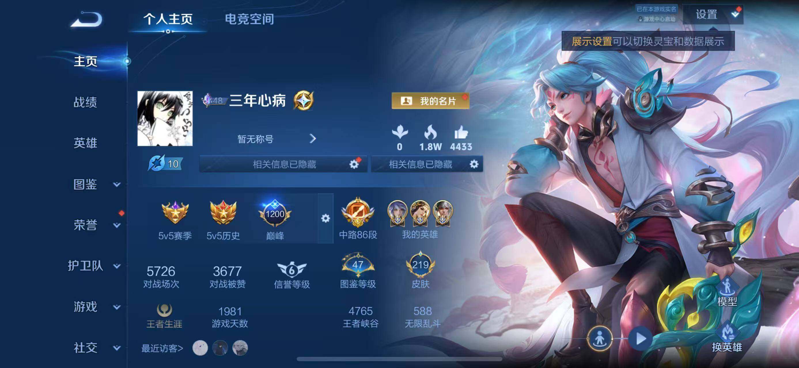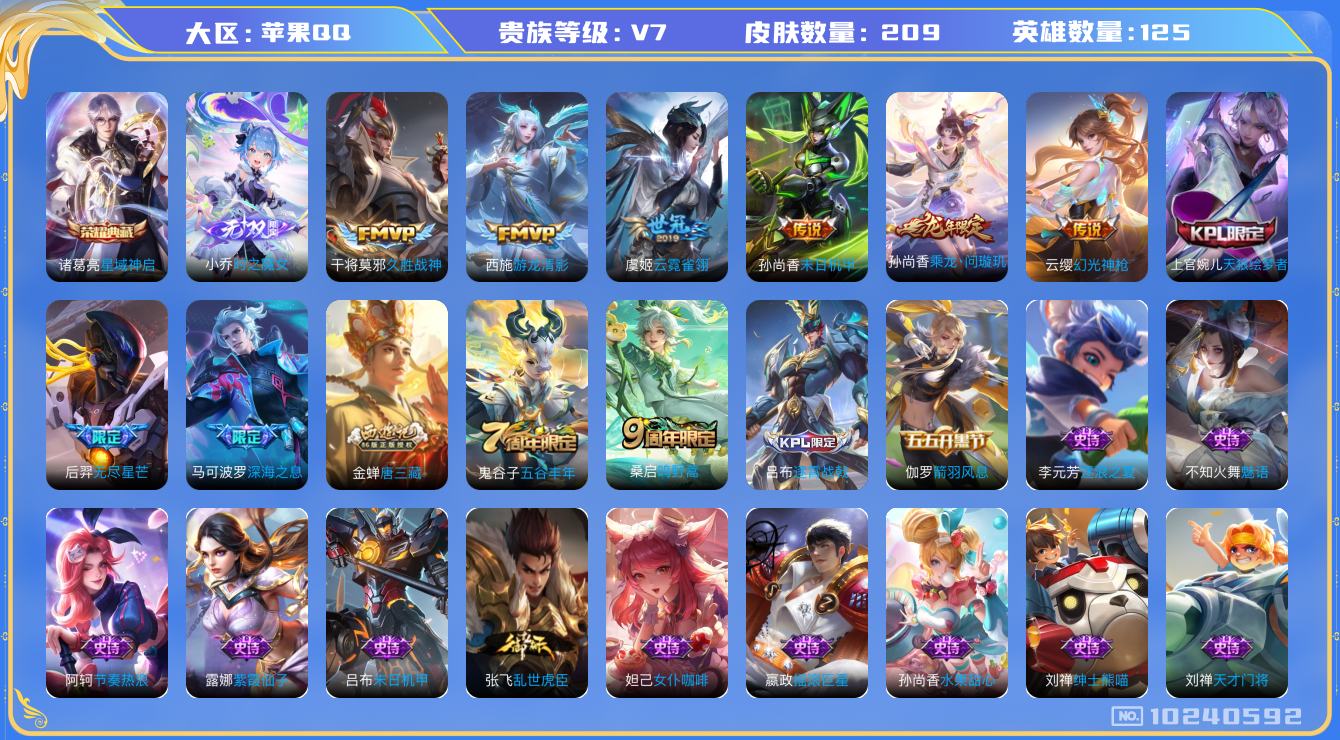 贵族等级:v8皮肤数:381传说品质13 生肖限定9 荣耀典藏3 情人节限定1 英雄数:121