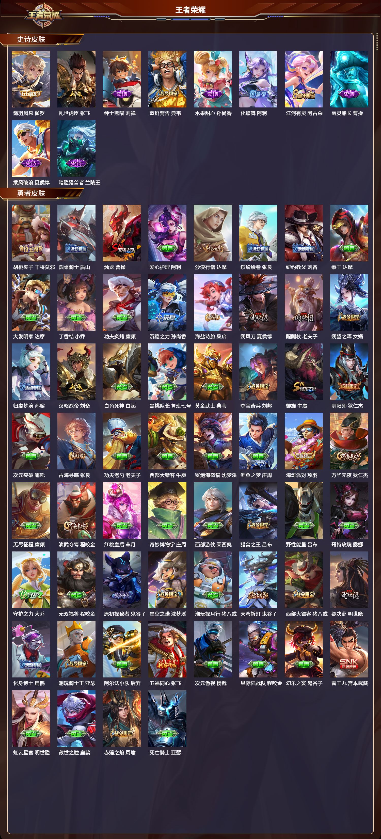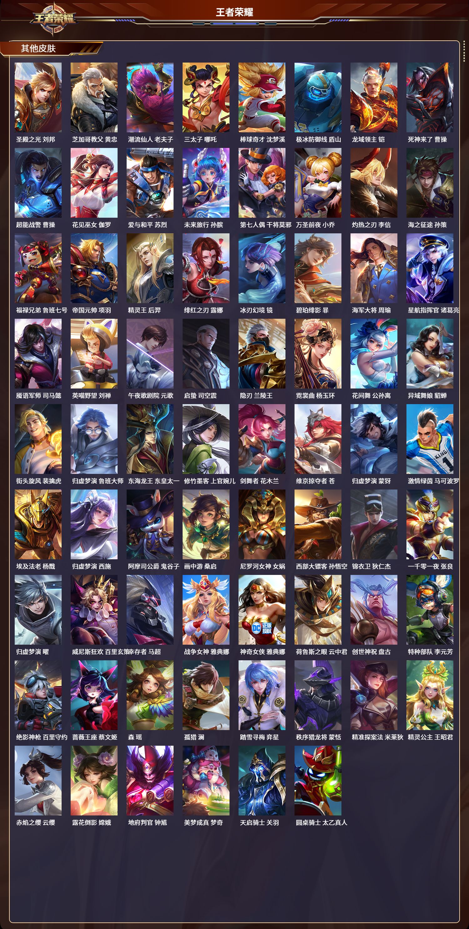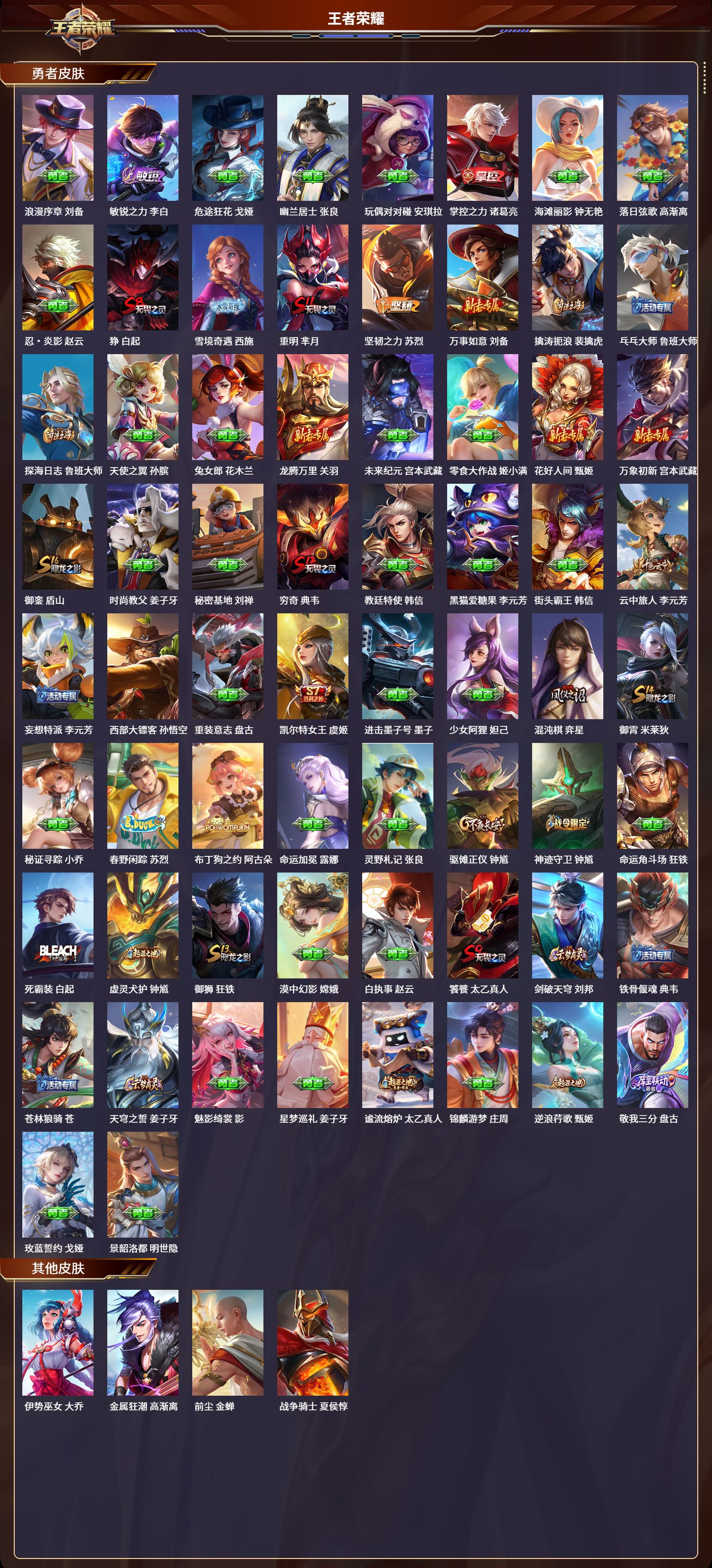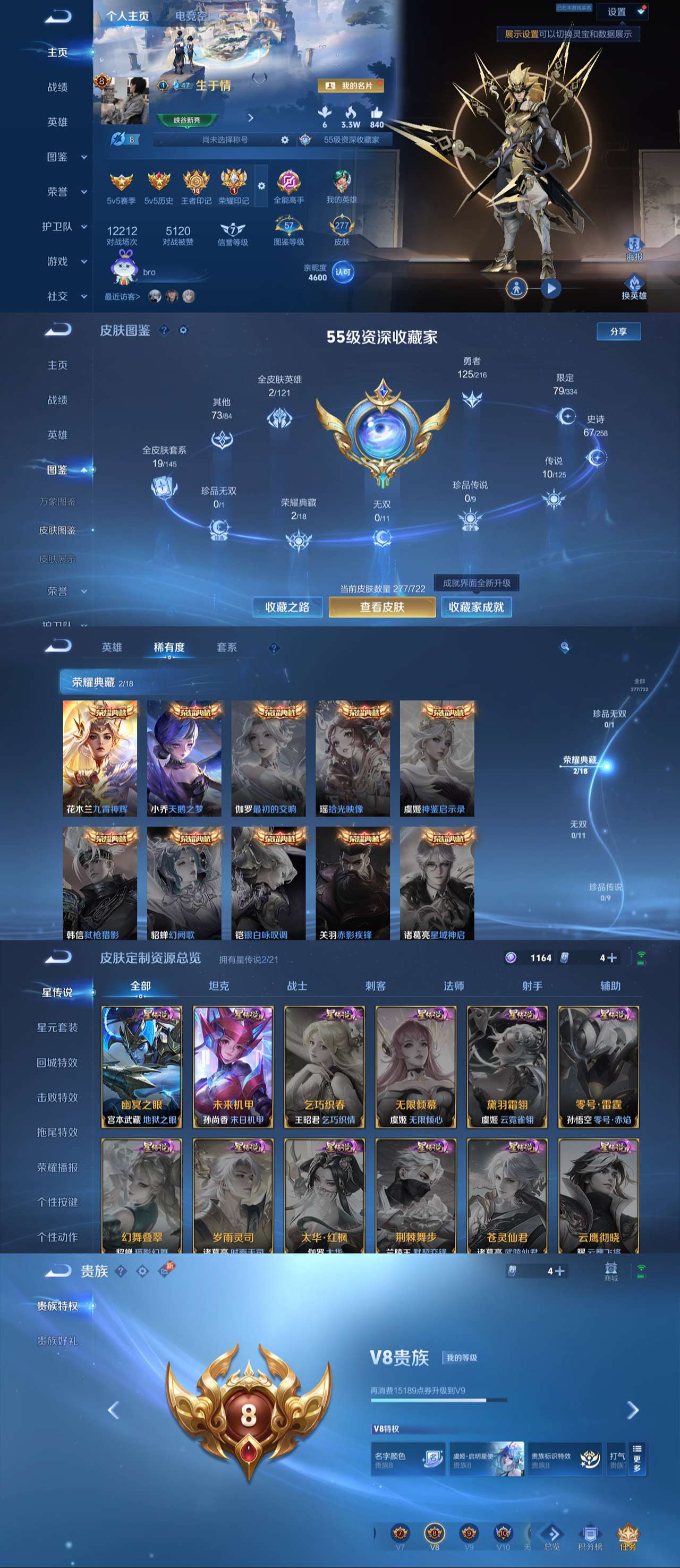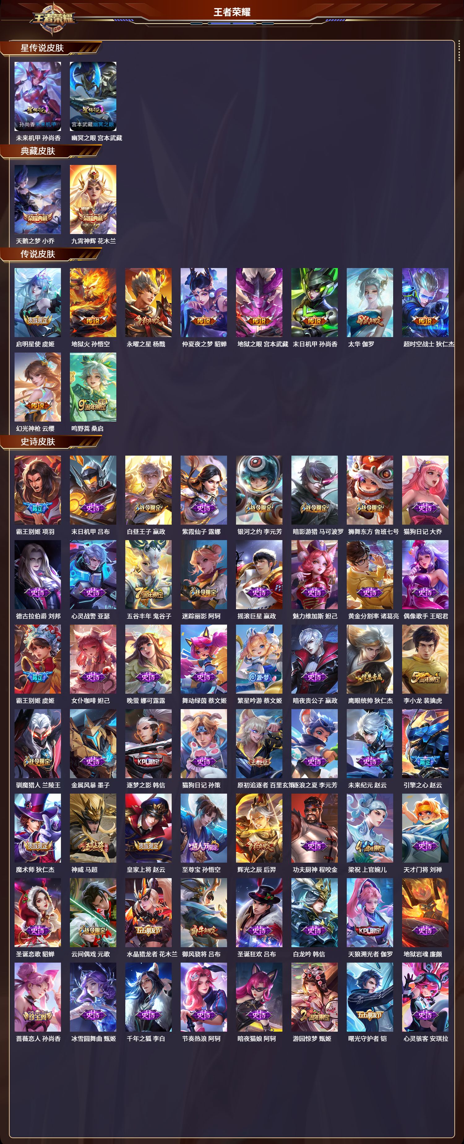 贵族等级:v5皮肤数:109生肖限定1 传说品质3 情人节限定1 英雄数:115