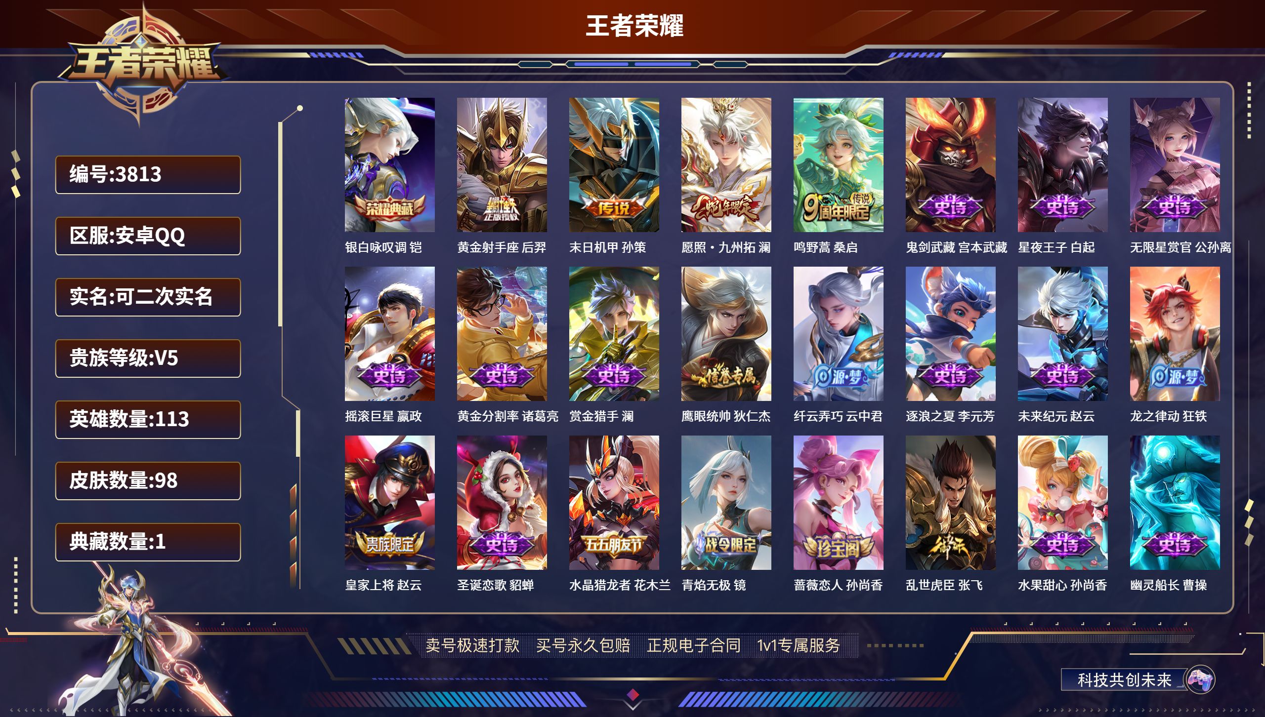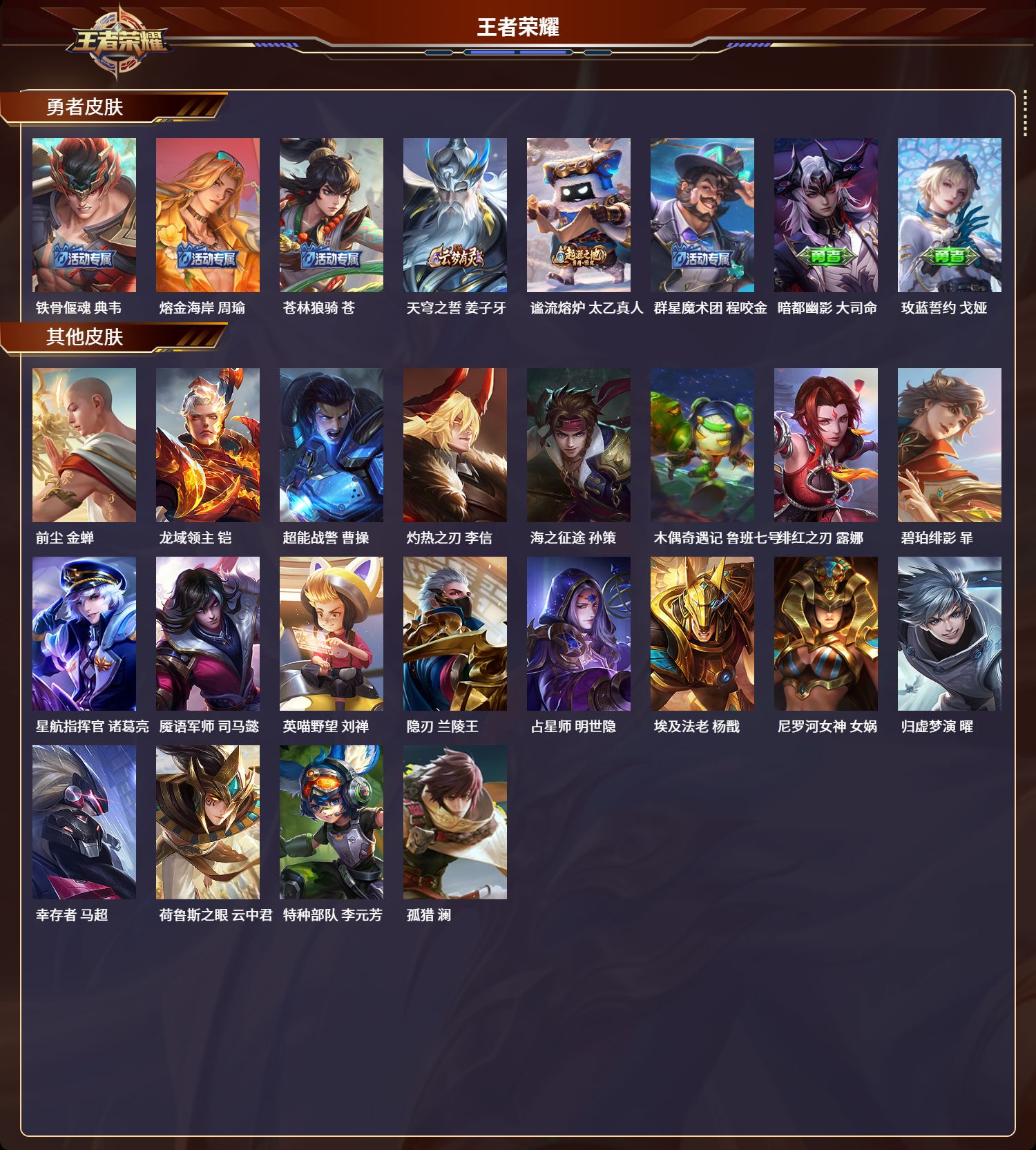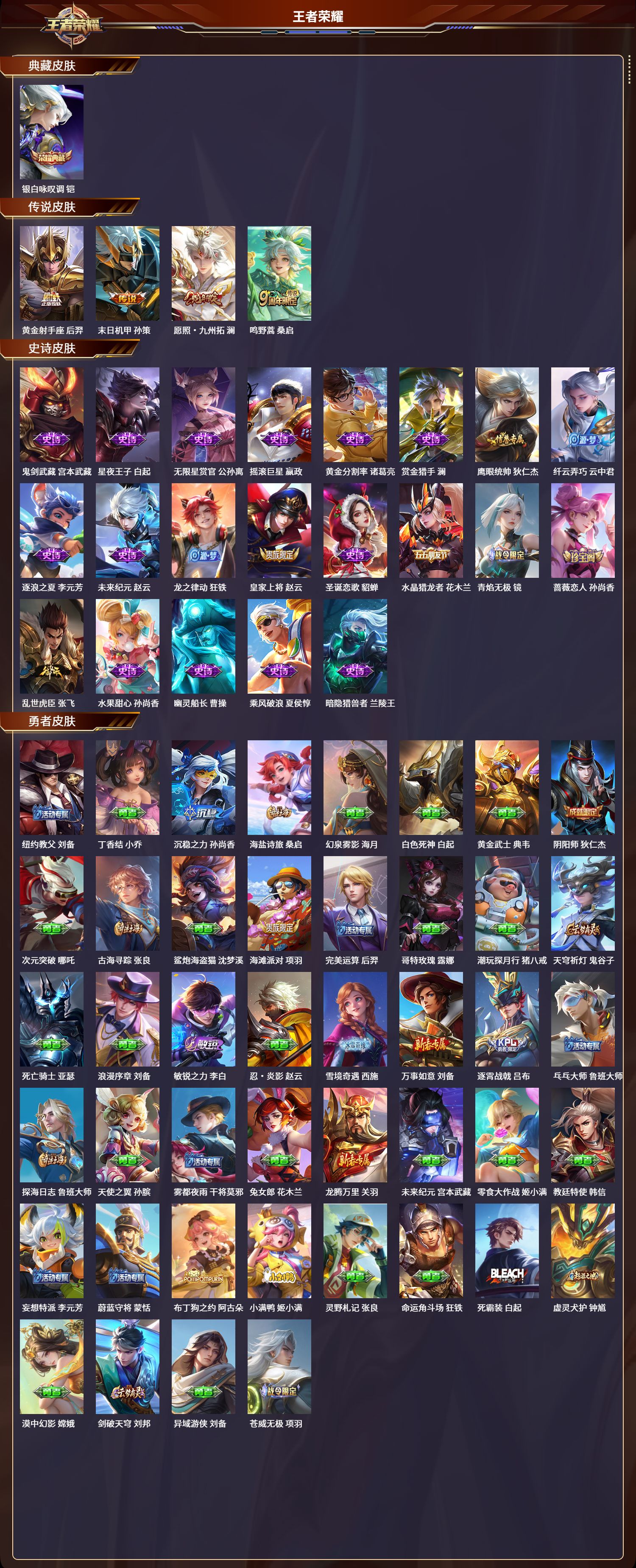 贵族等级:v5皮肤数:85传说品质3 生肖限定1 英雄数:105