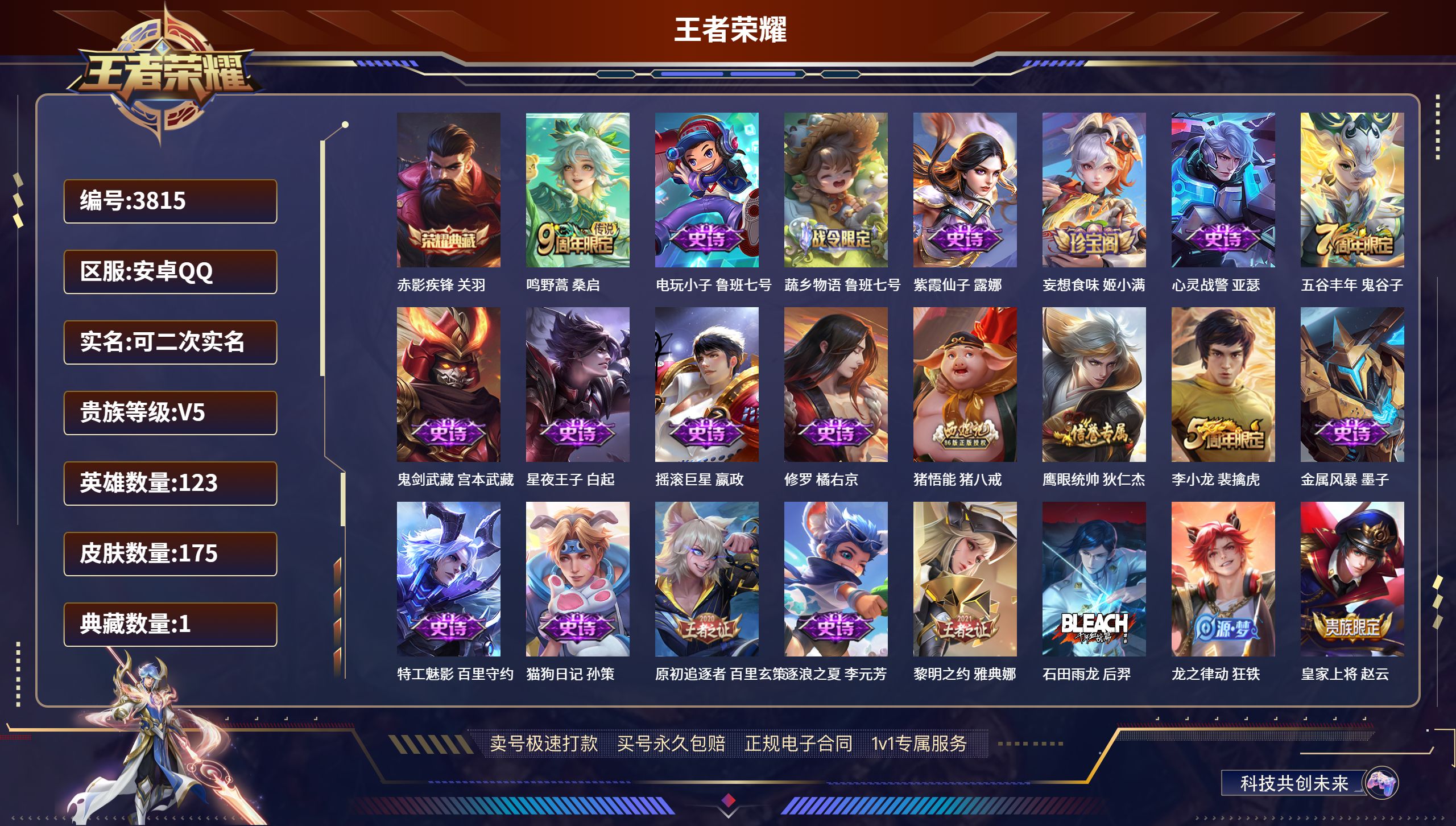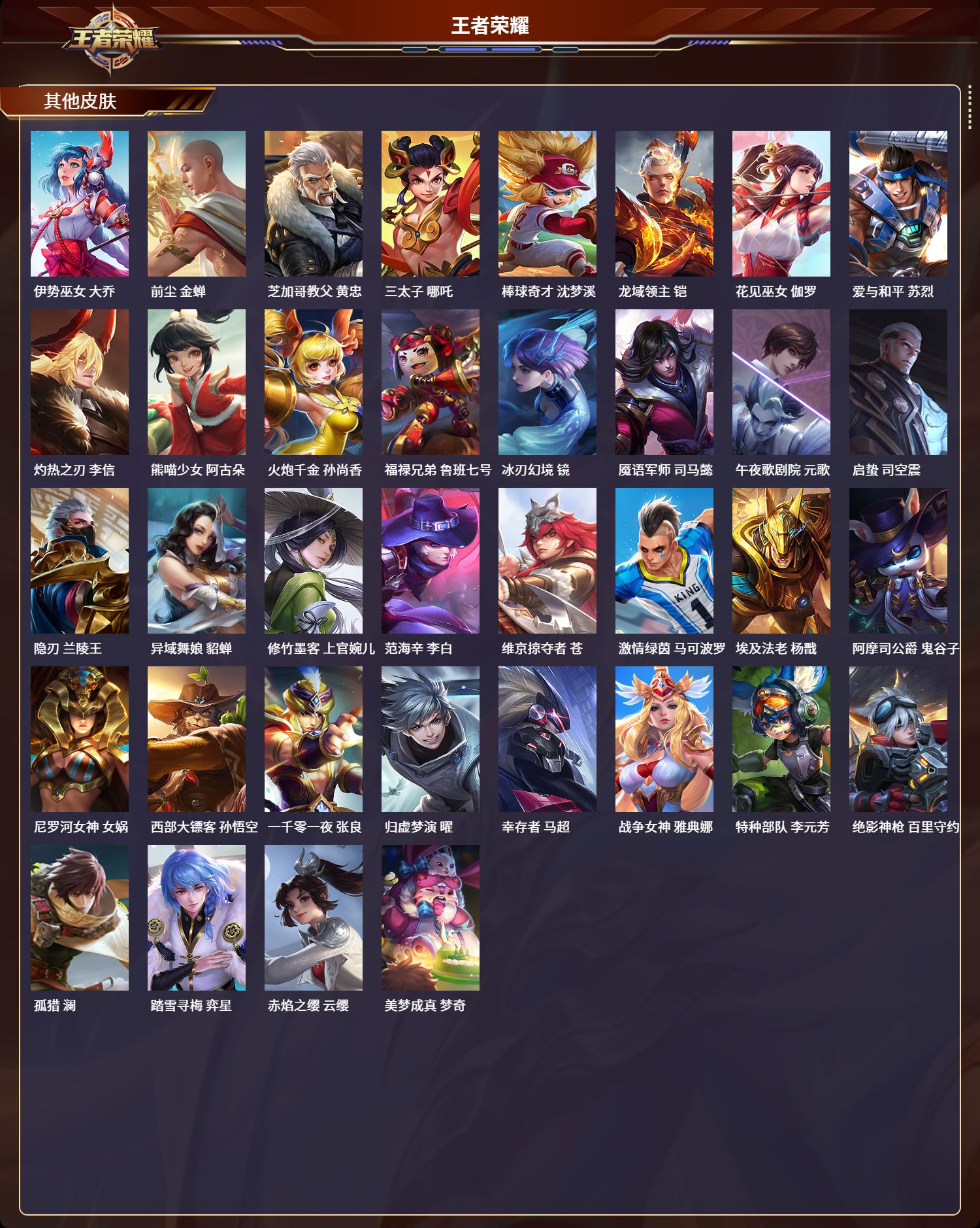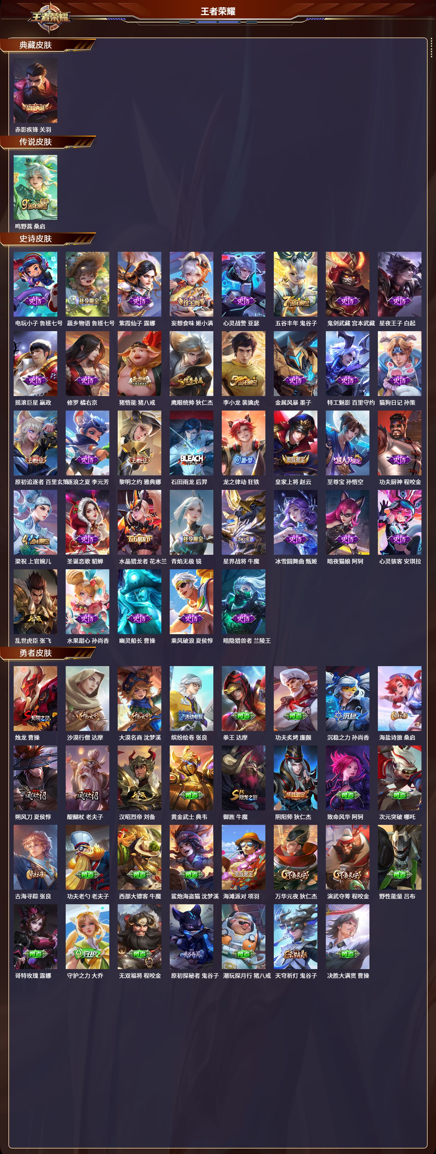 贵族等级:v6皮肤数:144情人节限定1 传说品质6 荣耀典藏1 英雄数:118