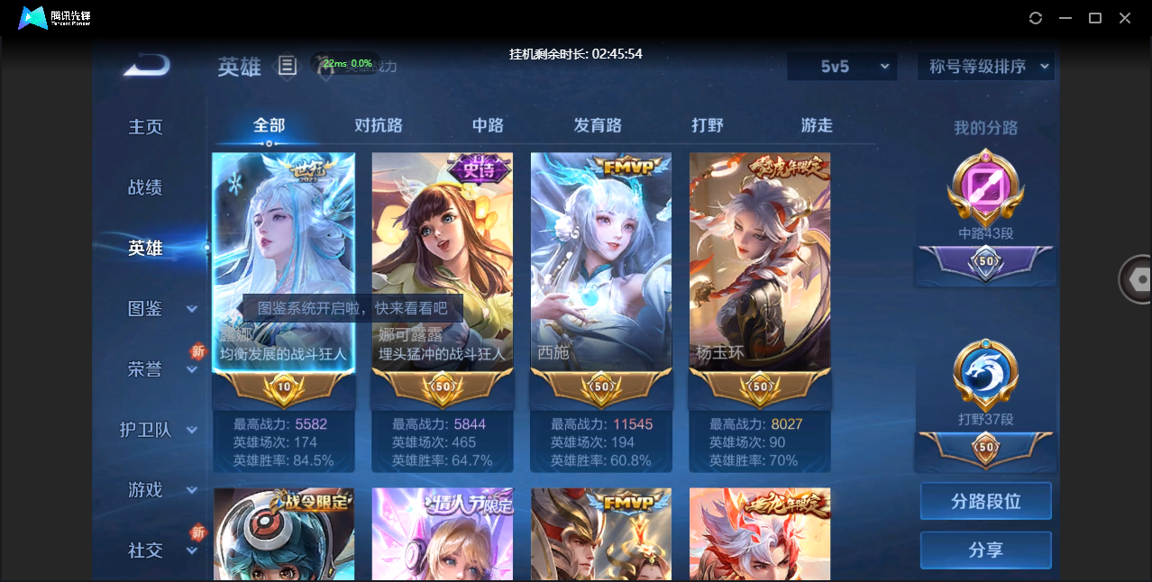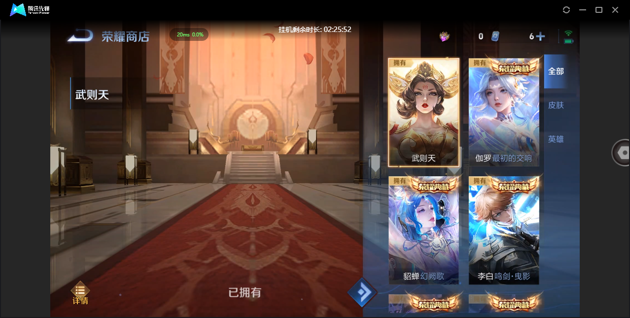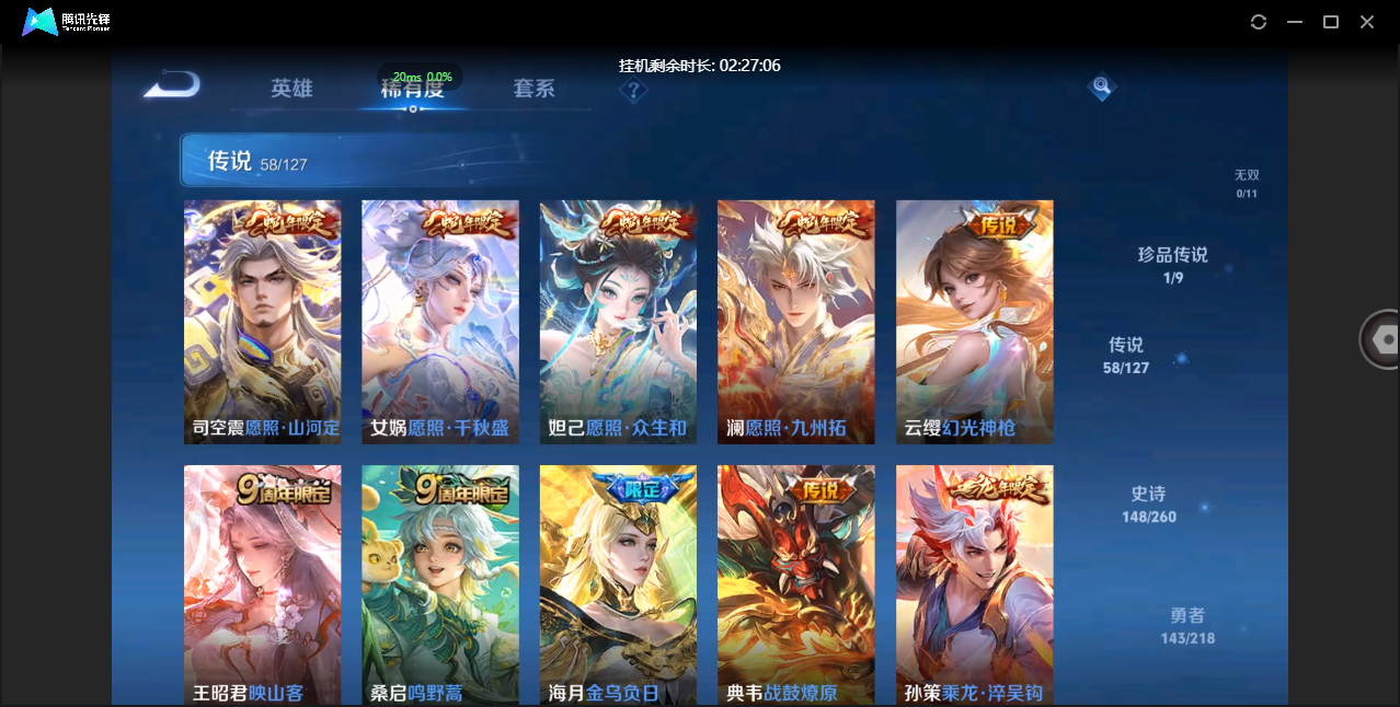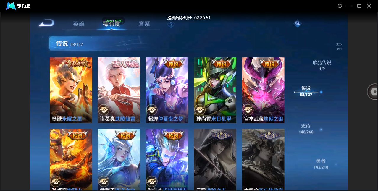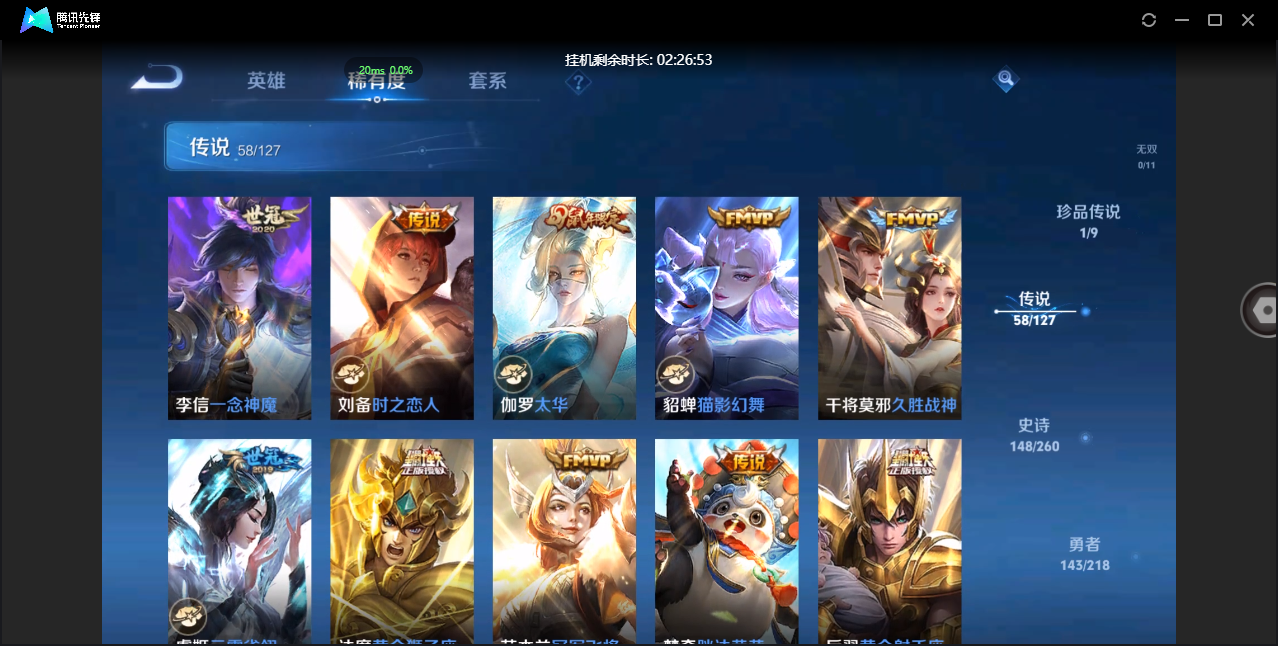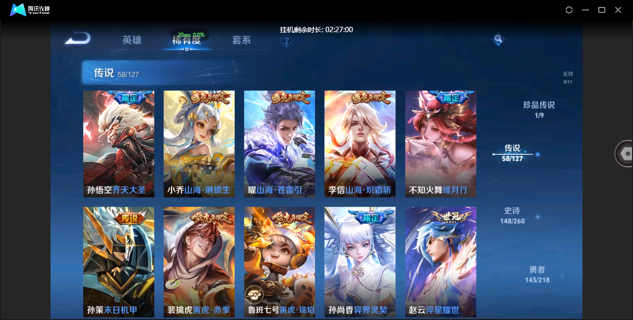 贵族等级:v6皮肤数:80传说品质5 情人节限定1 生肖限定1 英雄数:100