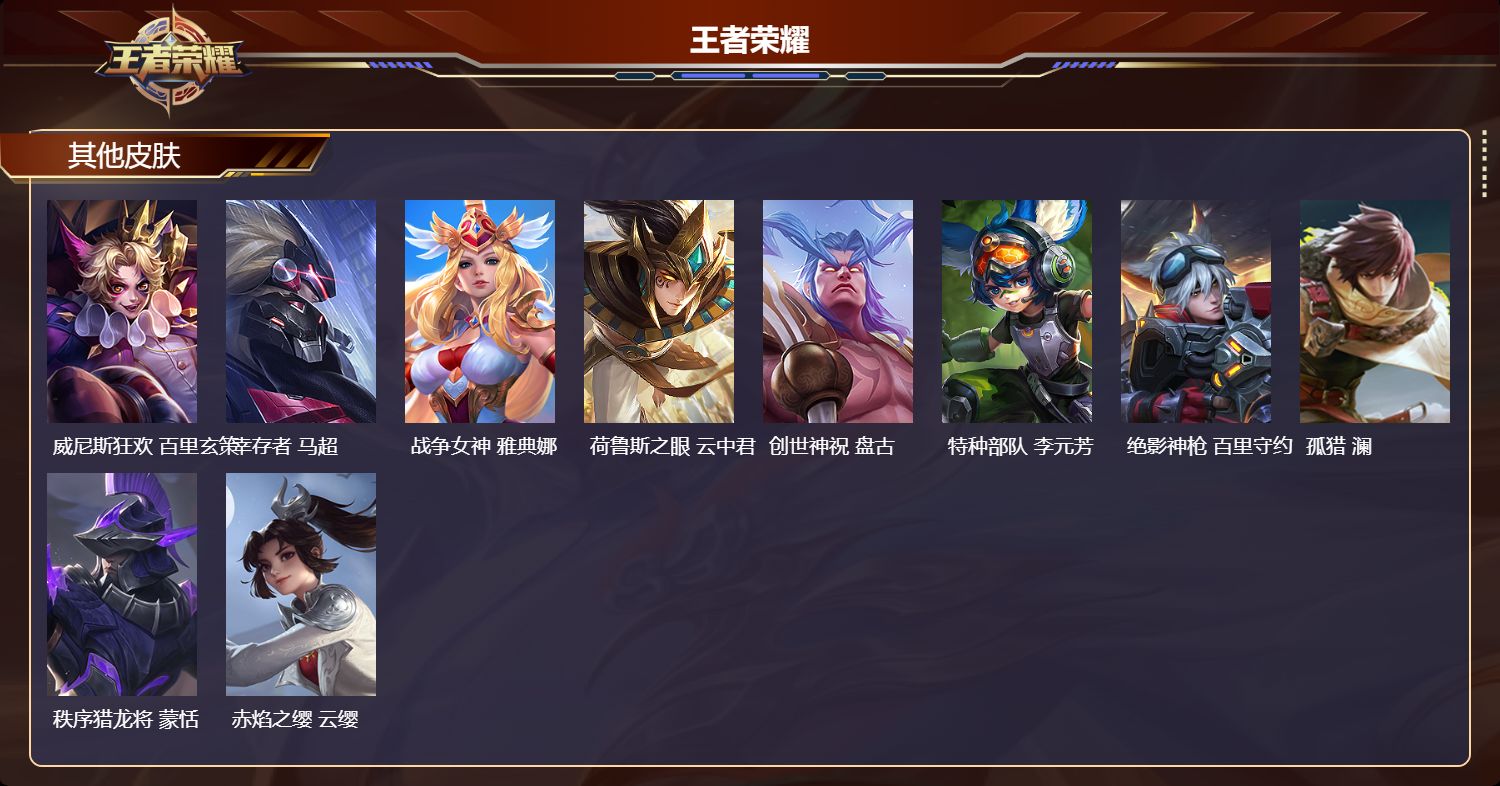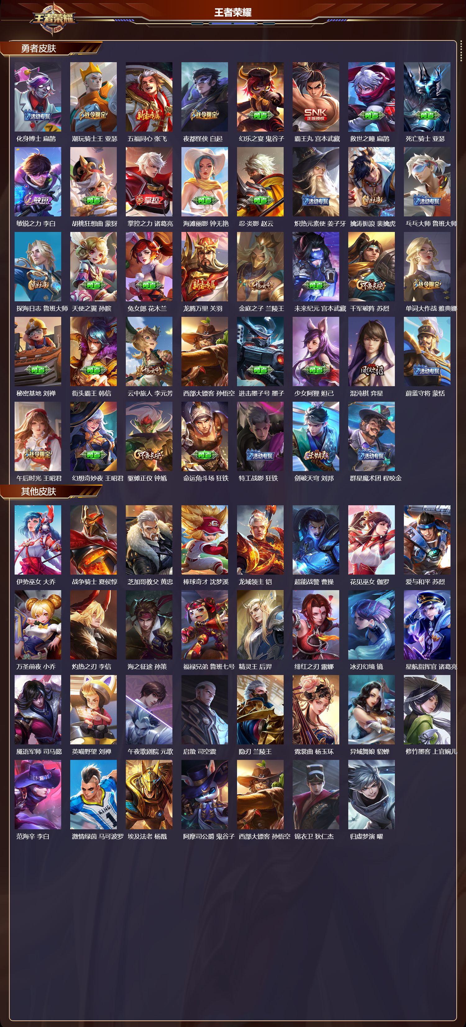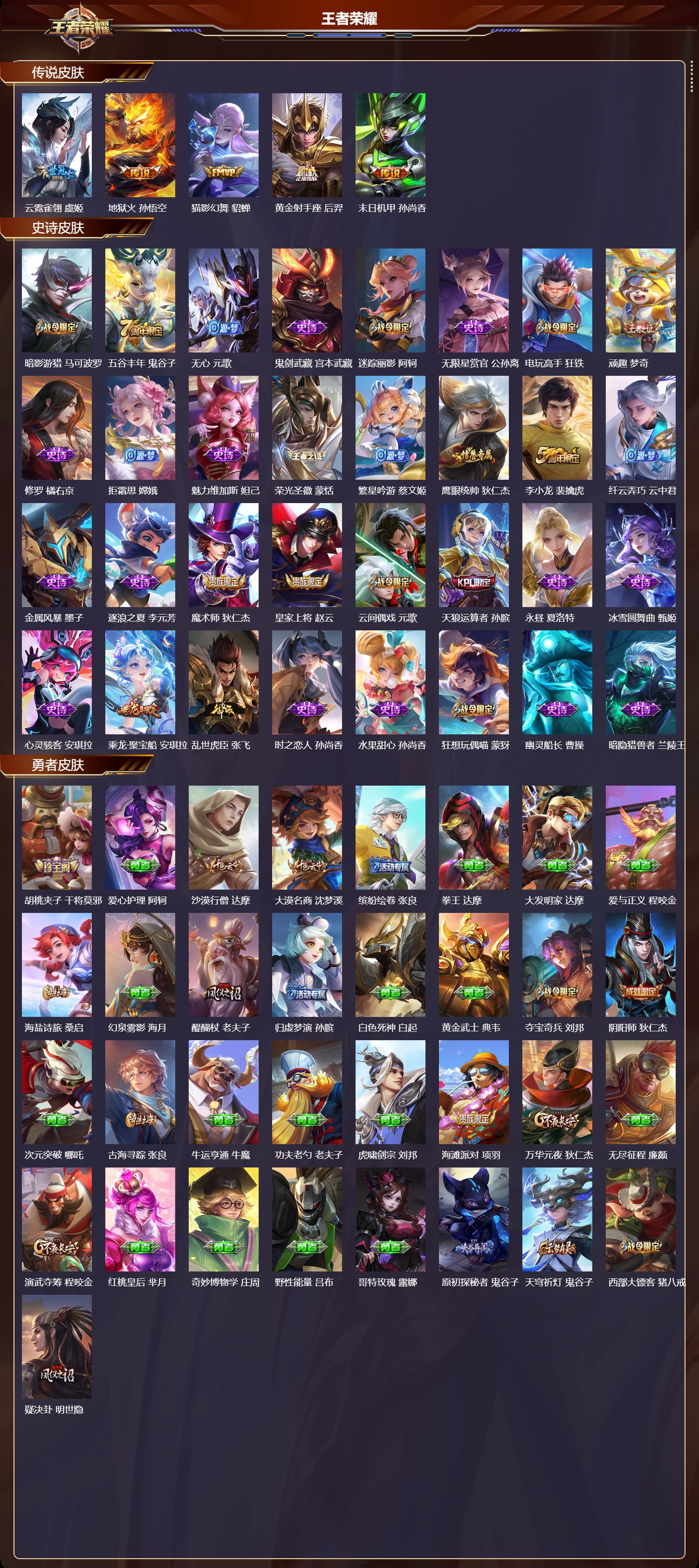 贵族等级:v7皮肤数:110传说品质9 生肖限定1 珍品传说1 英雄数:101