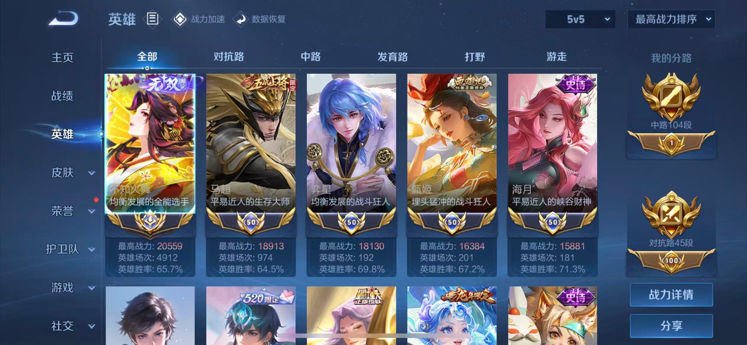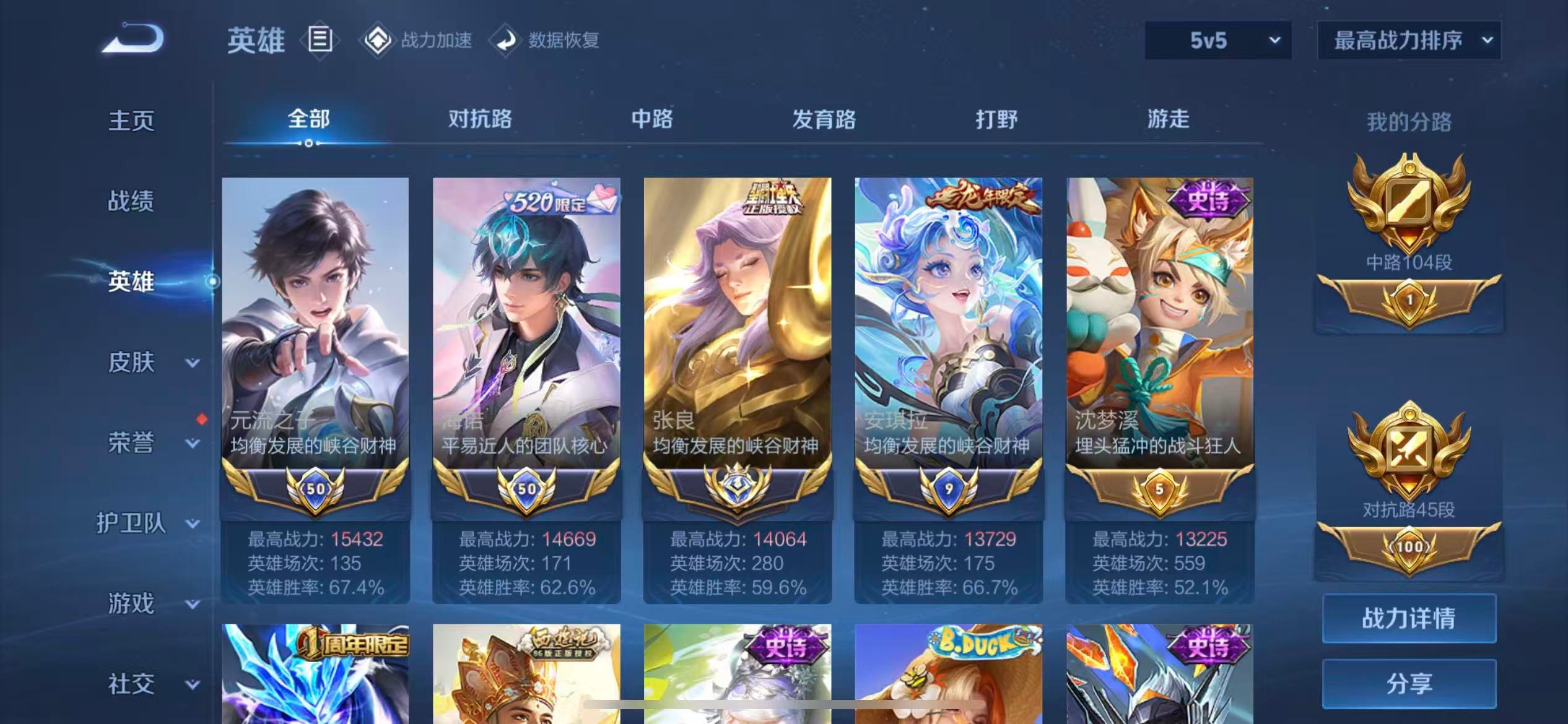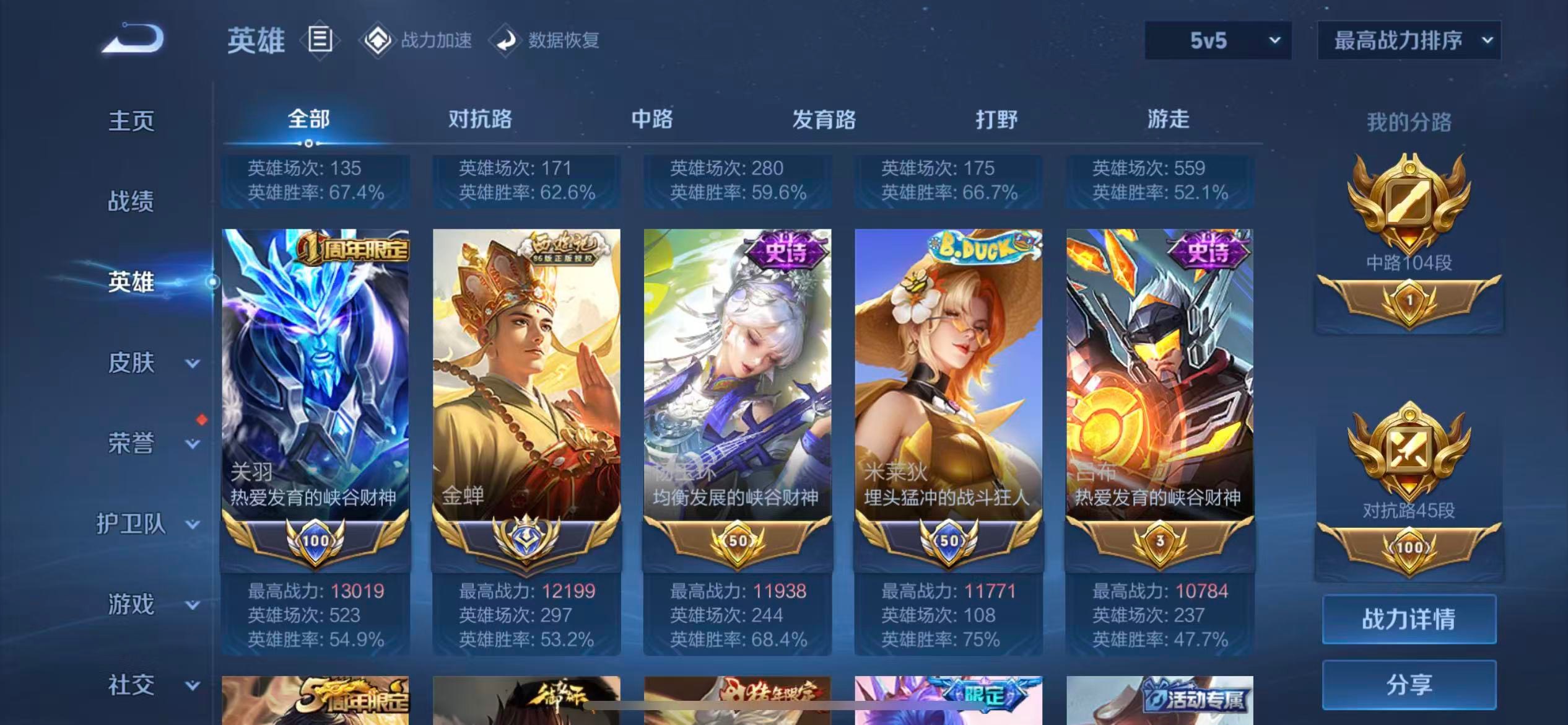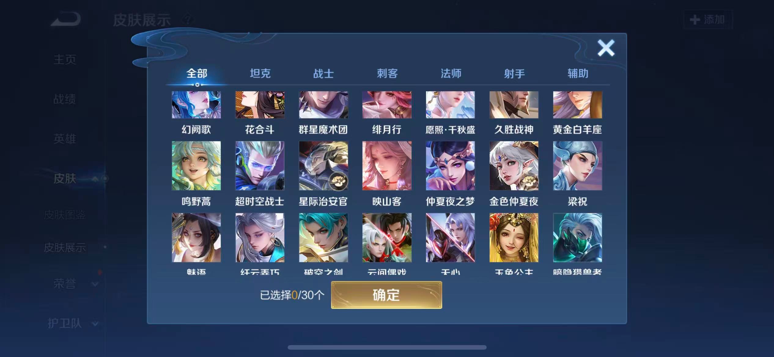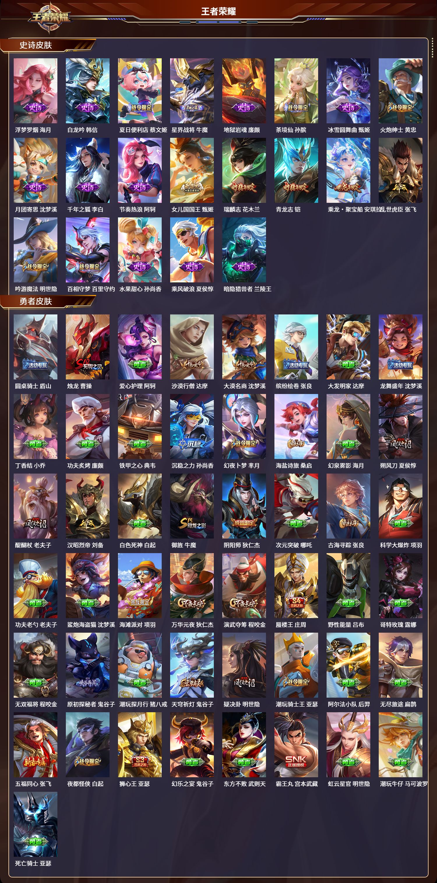 贵族等级:v8皮肤数:224传说品质11 生肖限定7 情人节限定3 荣耀典藏1 英雄数:120