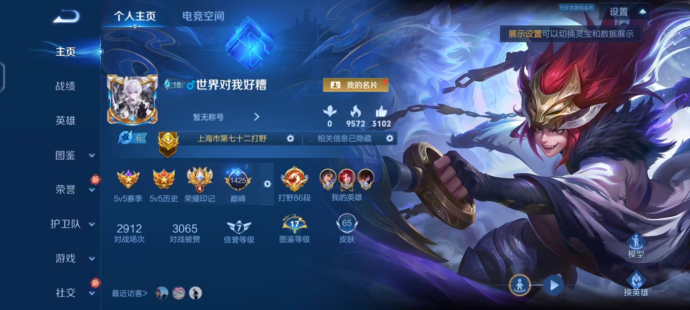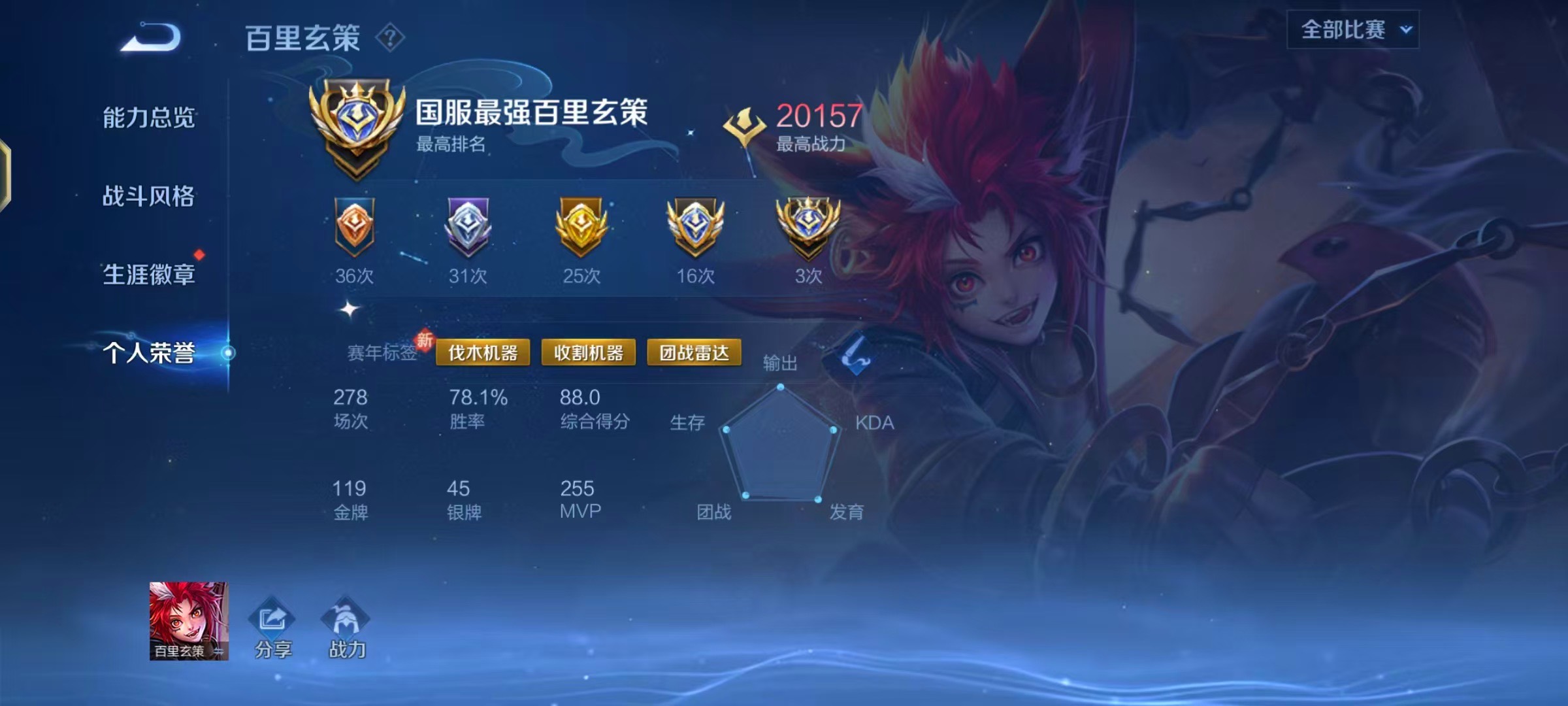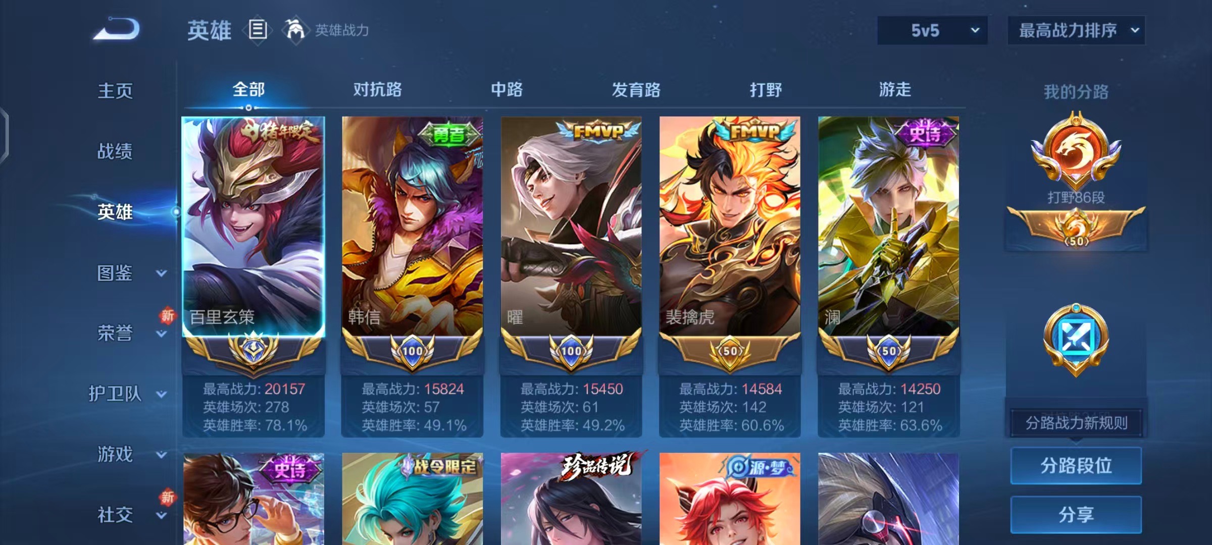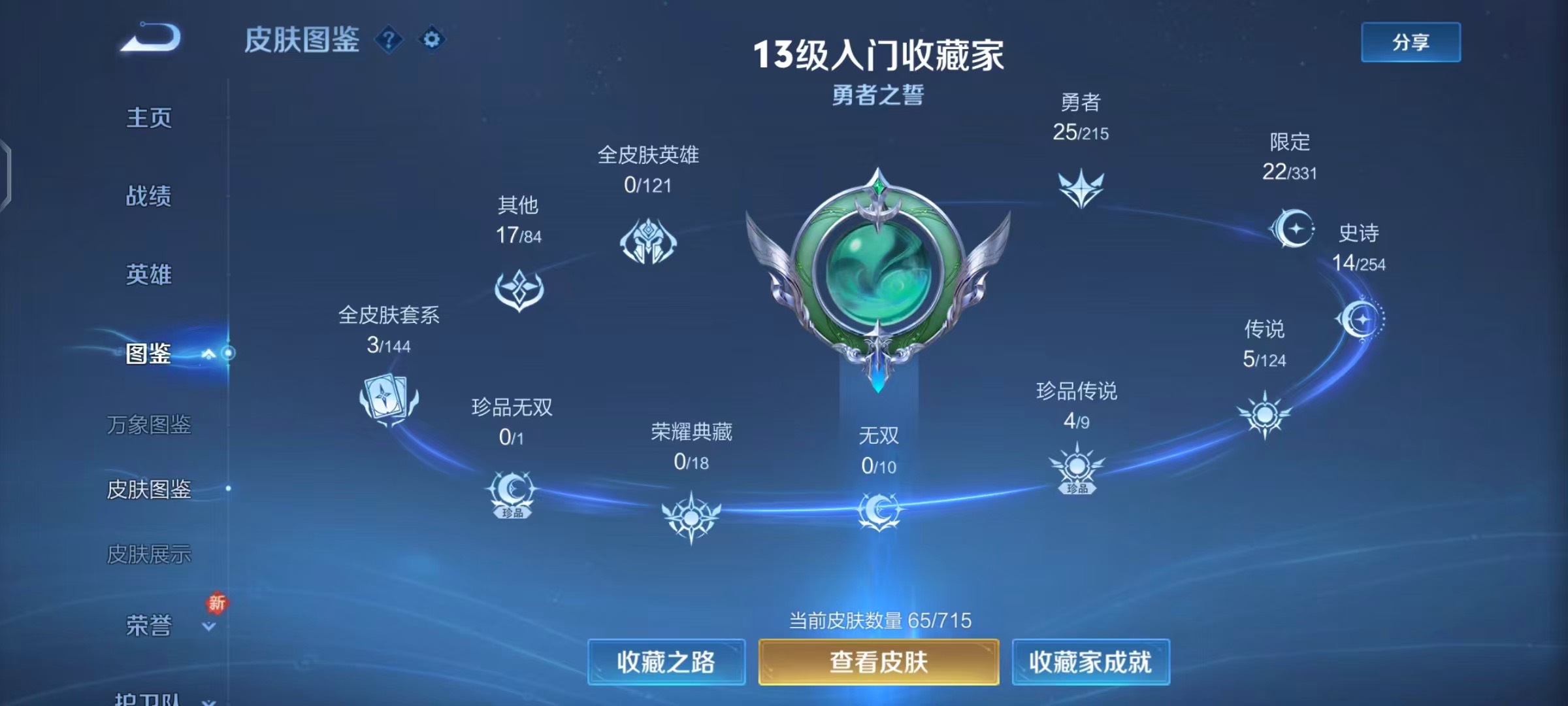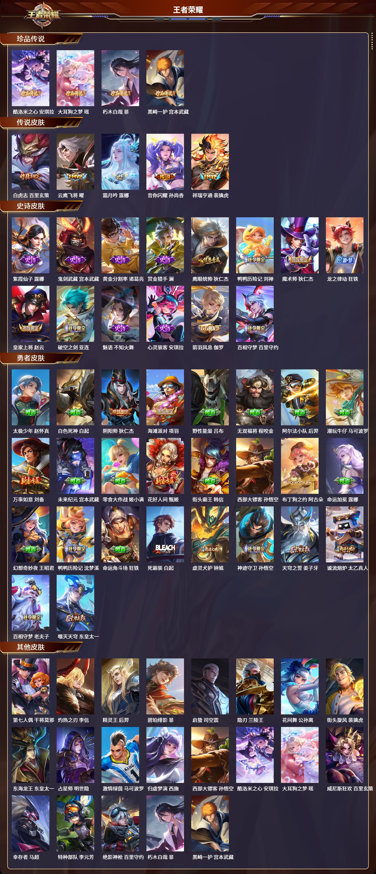 贵族等级:v7皮肤数:160传说品质5 生肖限定2 英雄数:120