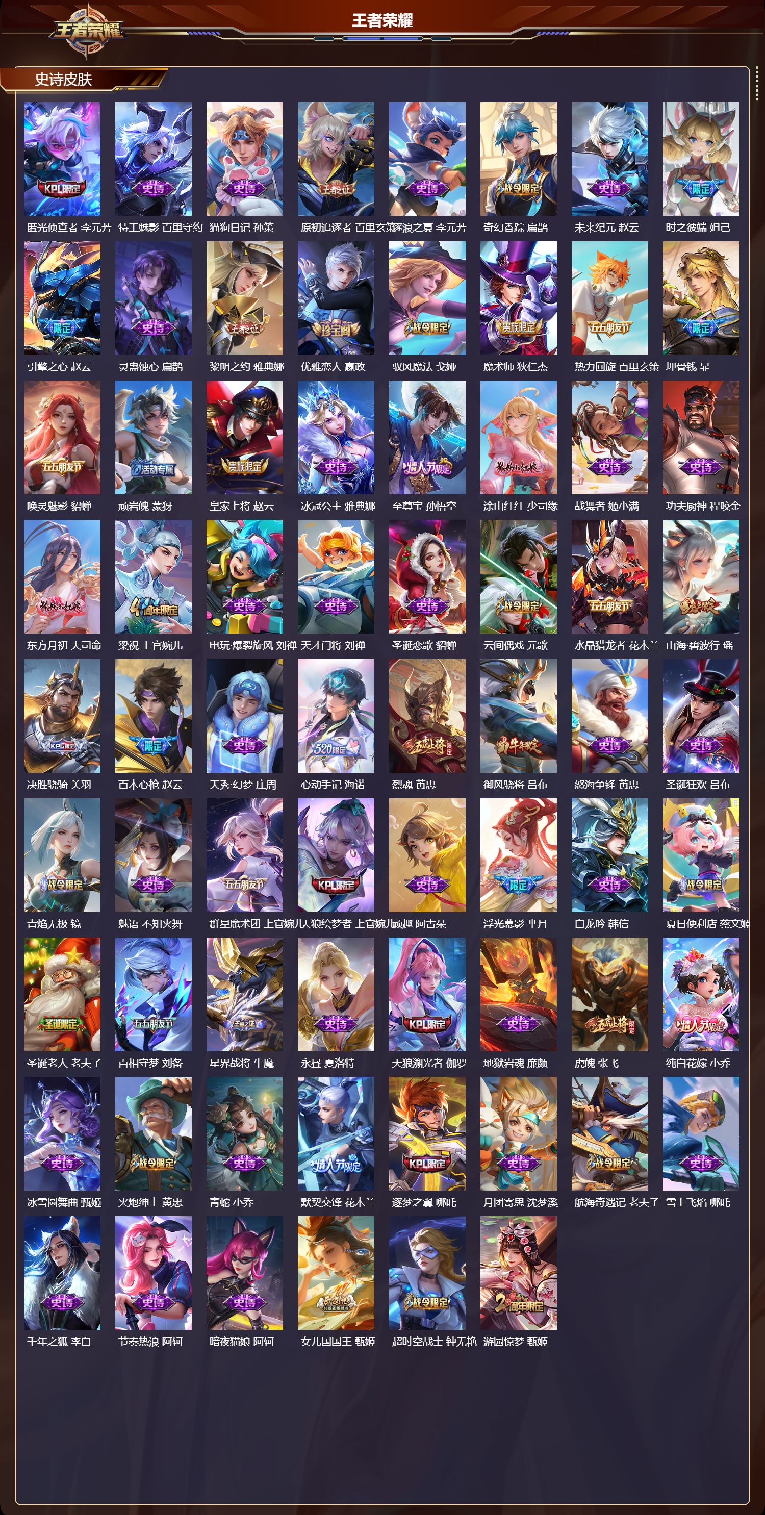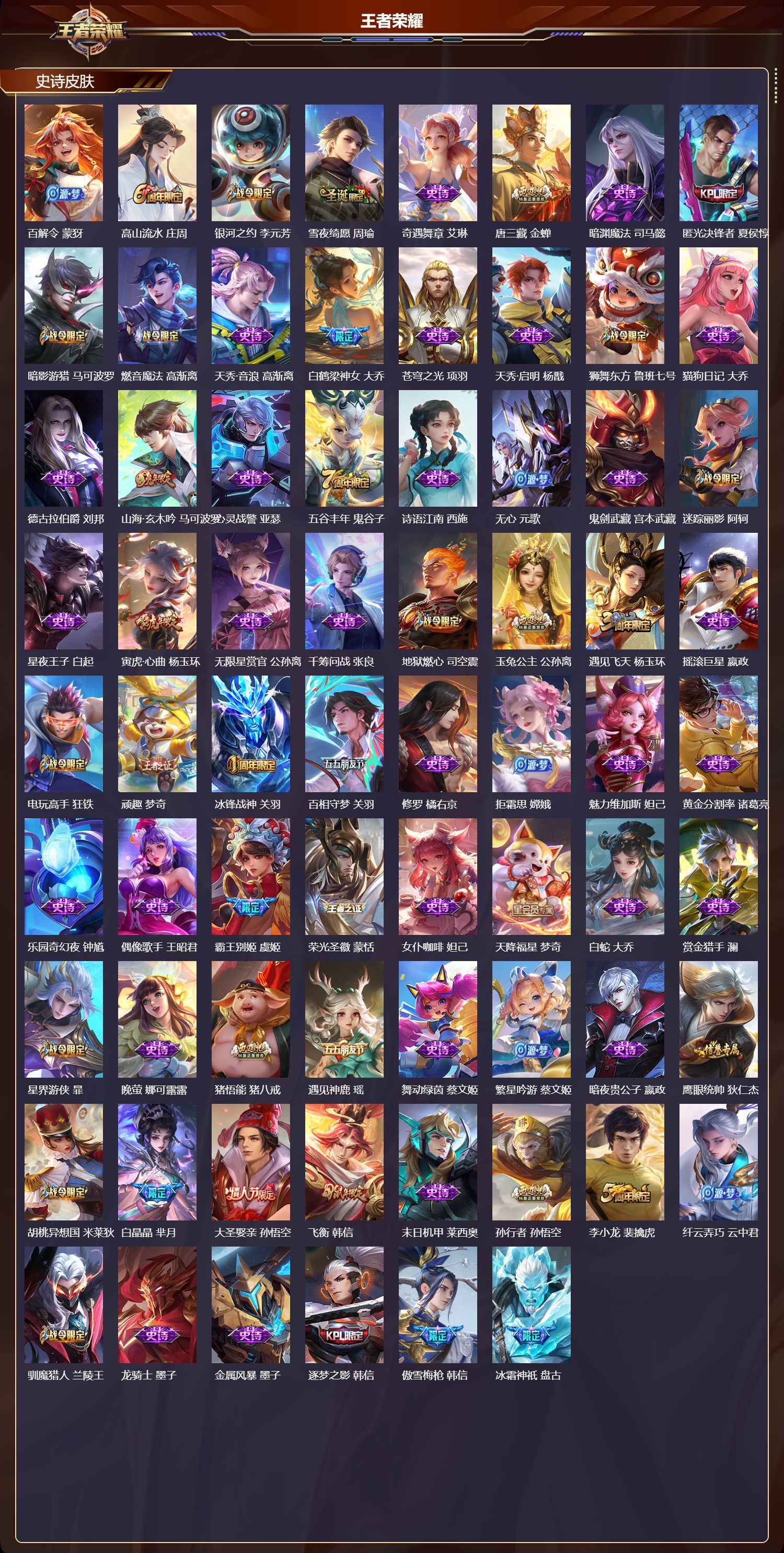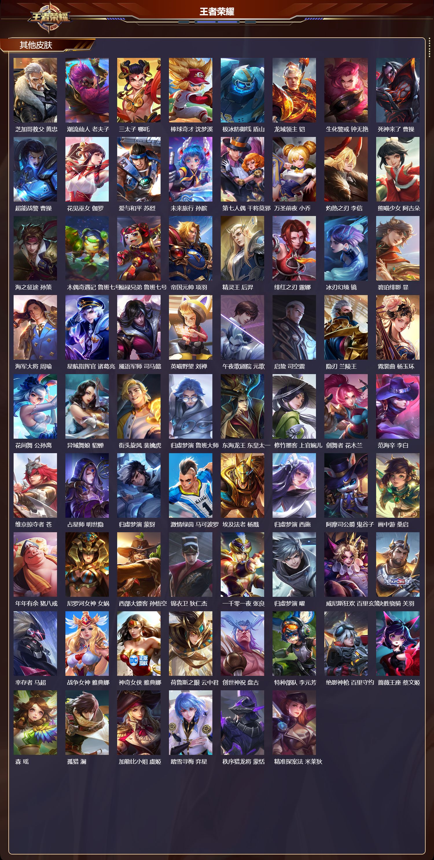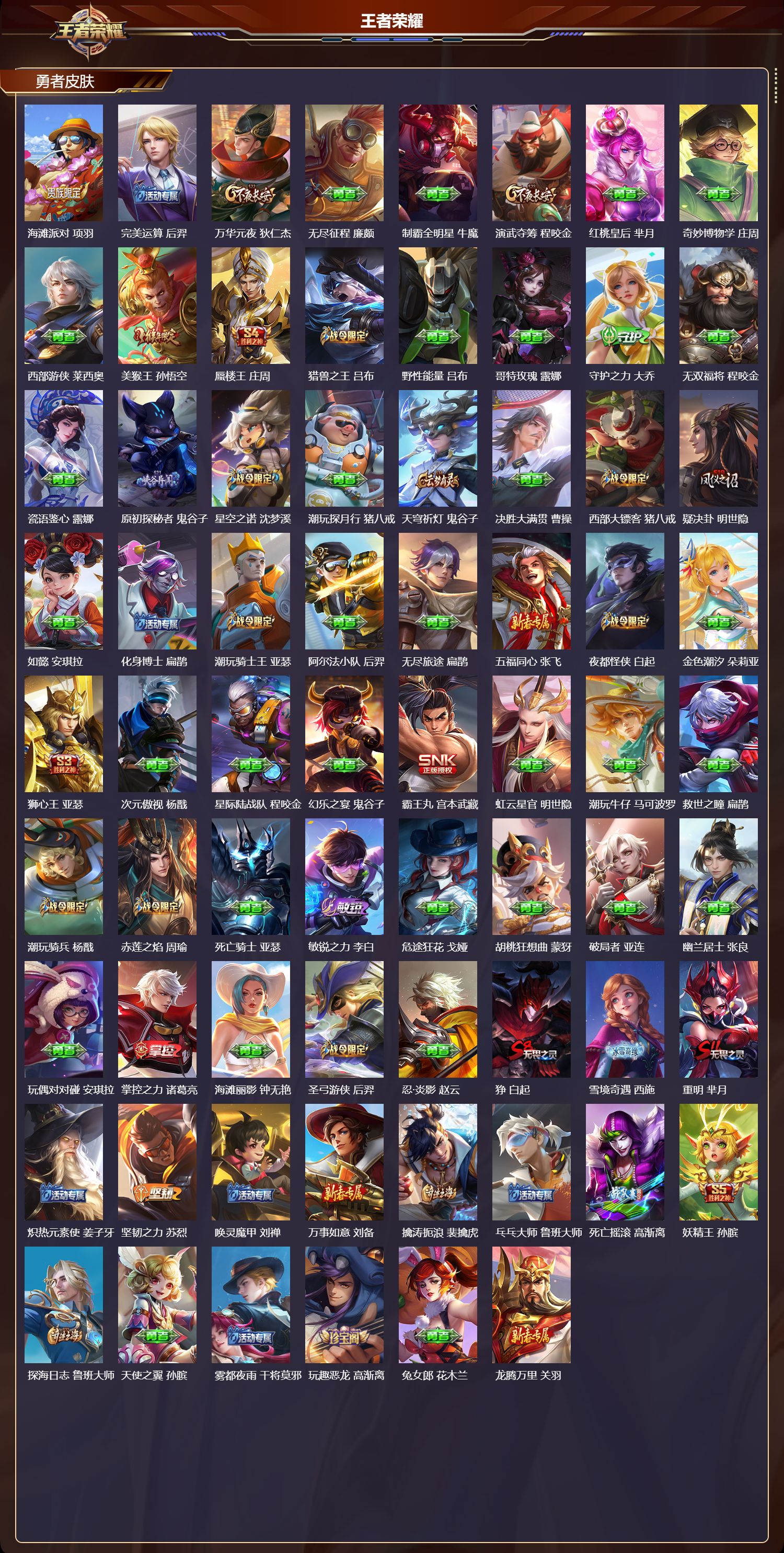 贵族等级:v6皮肤数:144传说品质6 生肖限定2 荣耀典藏1 英雄数:116
