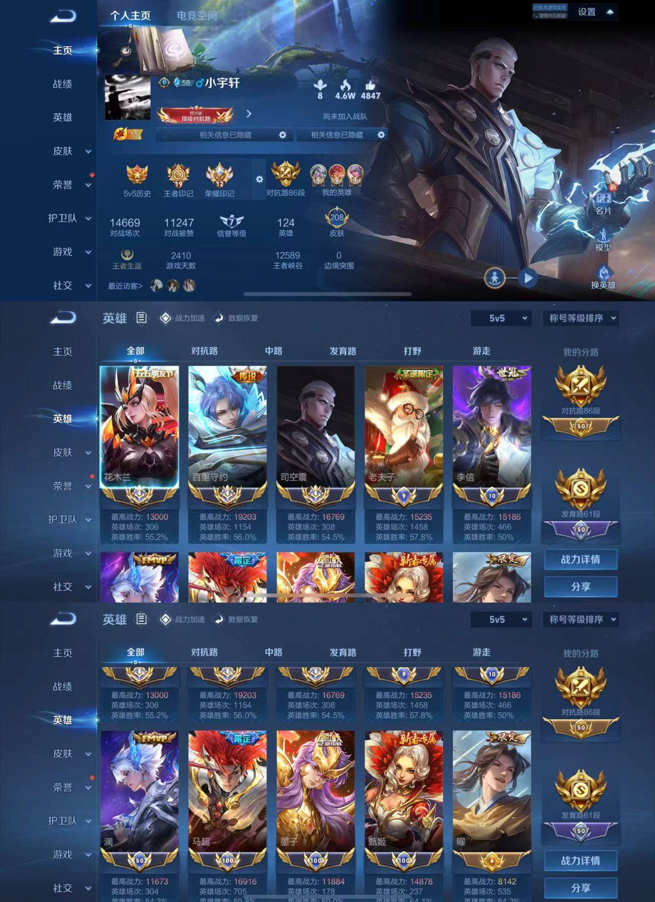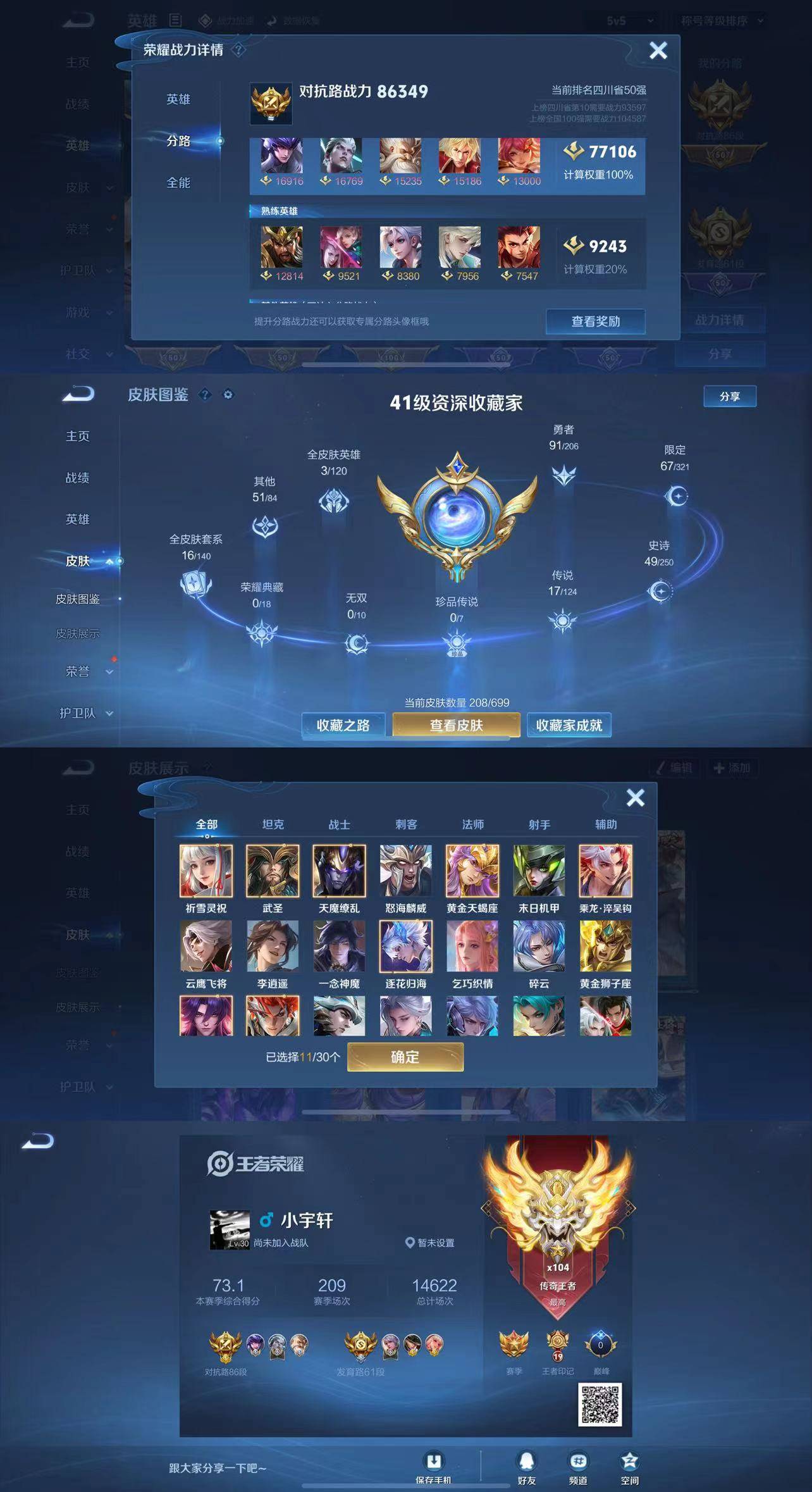 贵族等级:v6皮肤数:207情人节限定1 传说品质6 生肖限定1 英雄数:120