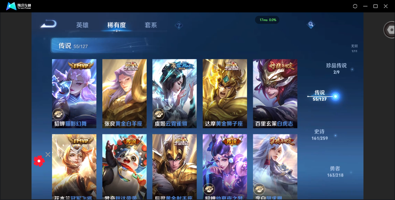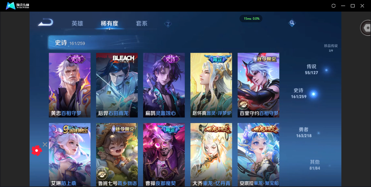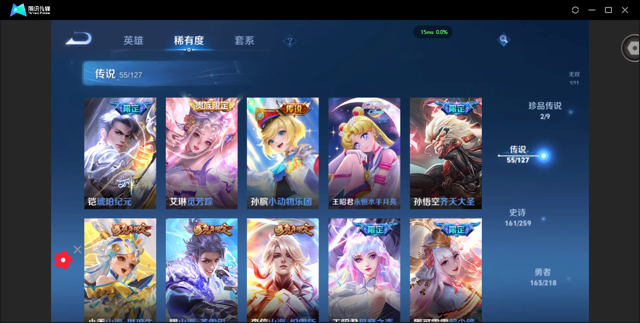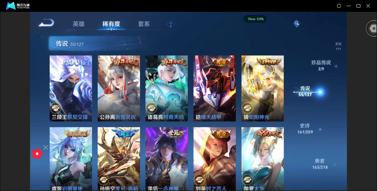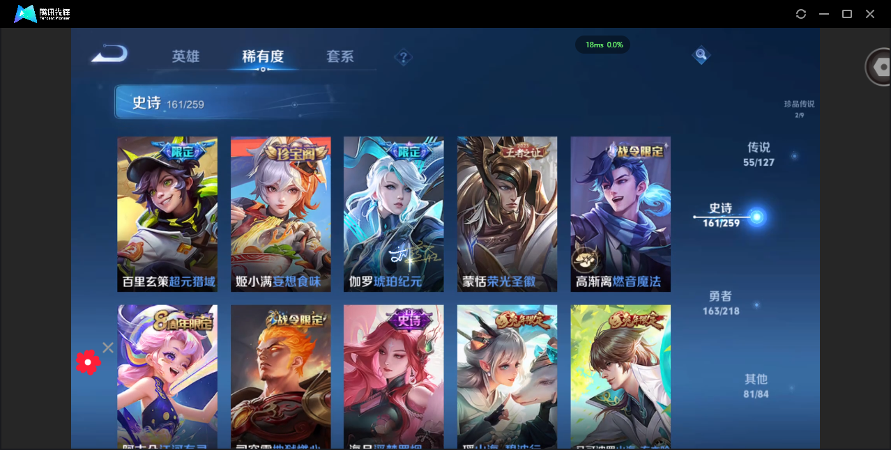 贵族等级:v7皮肤数:160传说品质8 情人节限定1 生肖限定1 英雄数:119