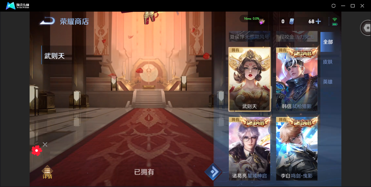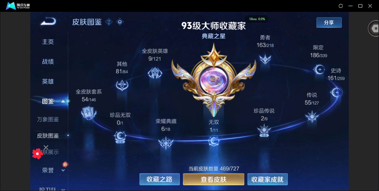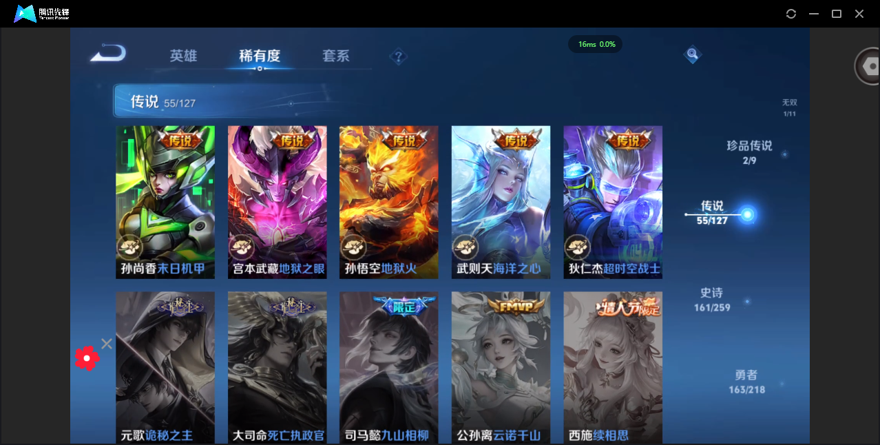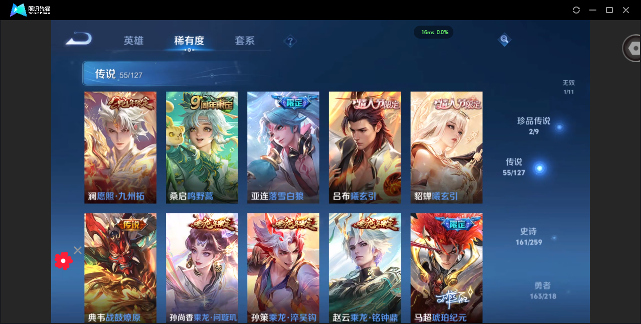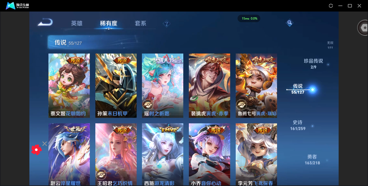 贵族等级:v7皮肤数:160传说品质8 情人节限定1 生肖限定1 英雄数:119