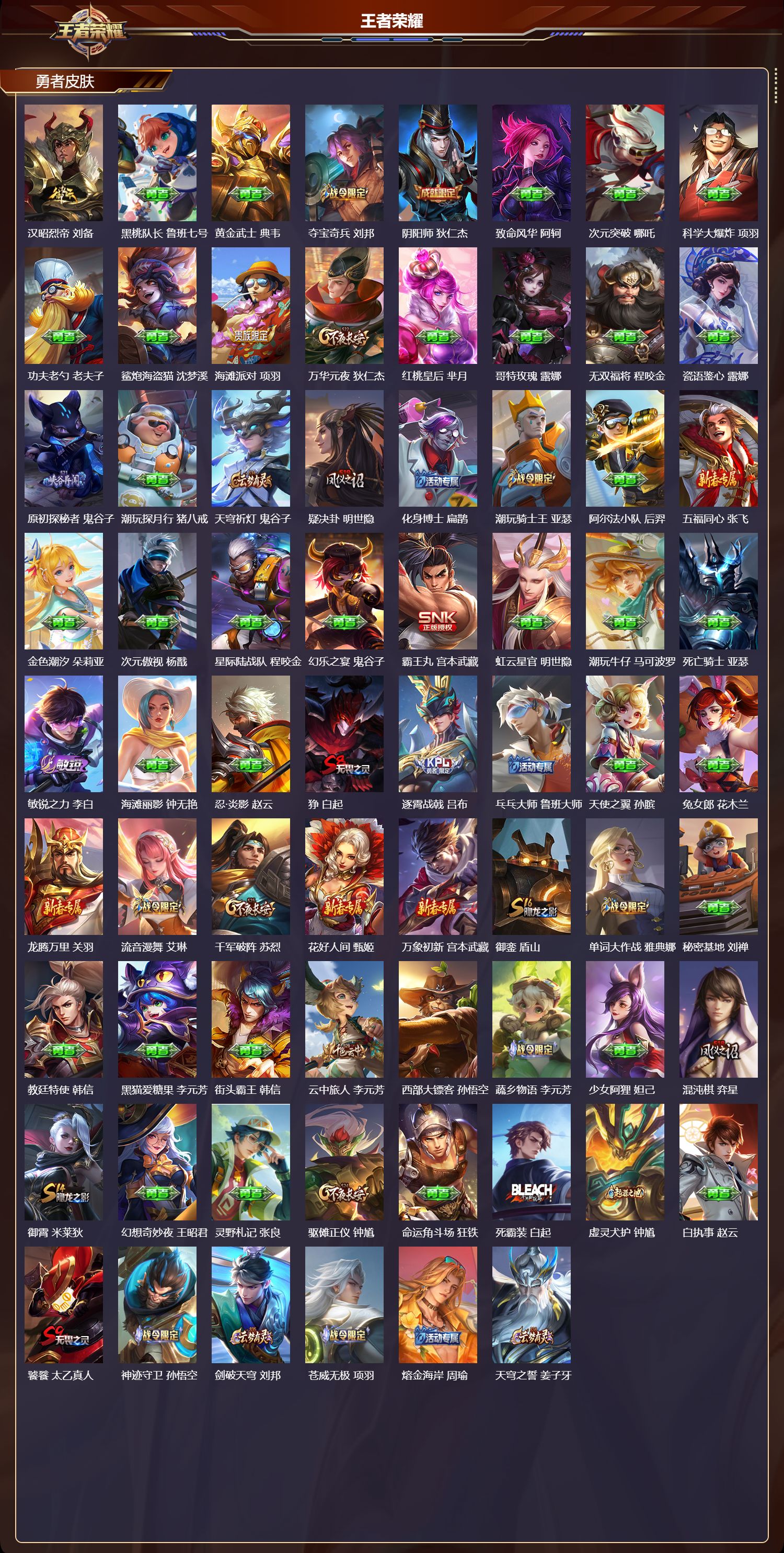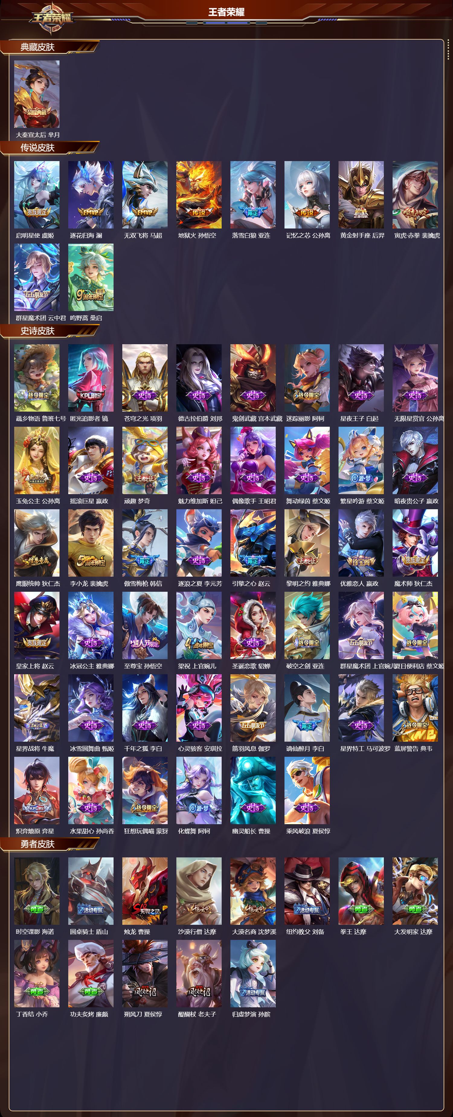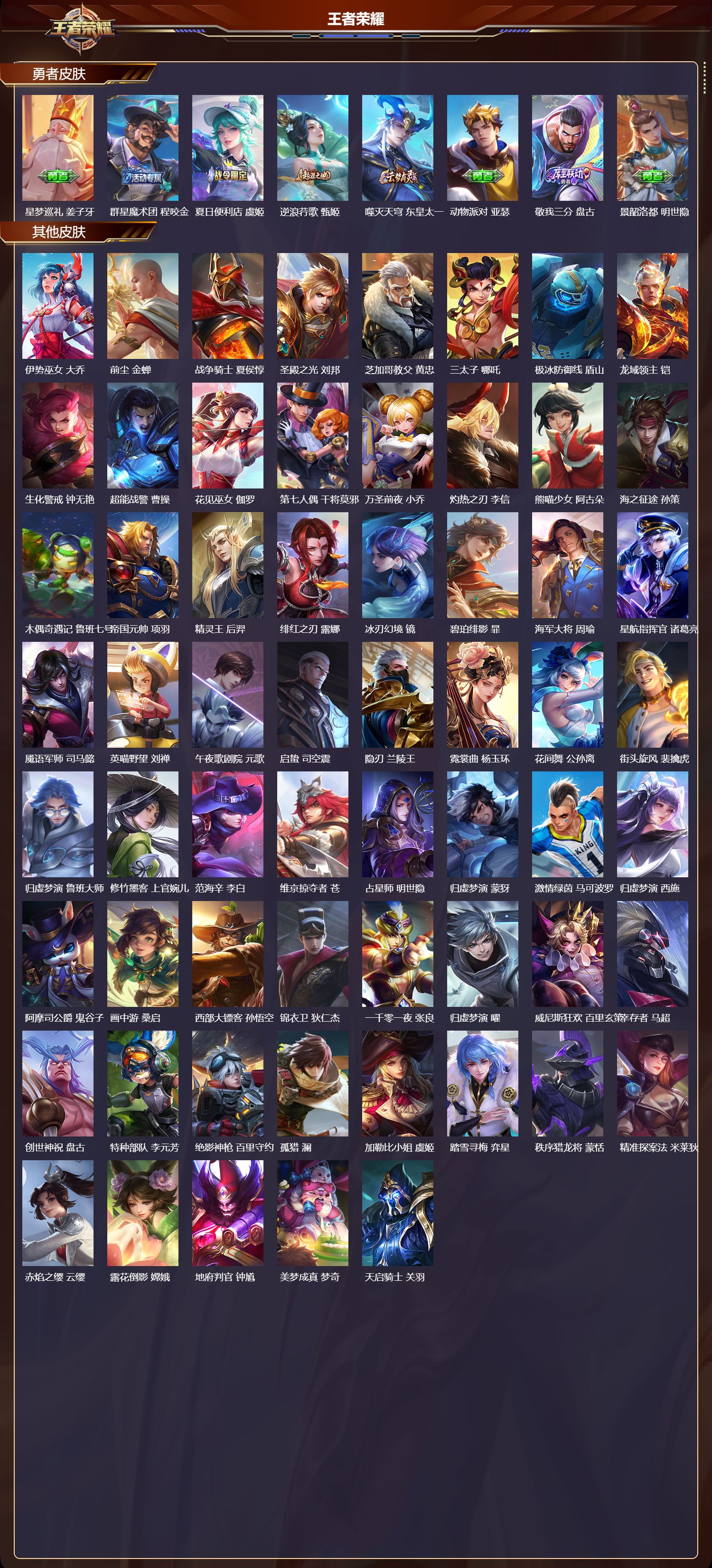 贵族等级:v8皮肤数:236生肖限定8 传说品质18 情人节限定1 英雄数:114