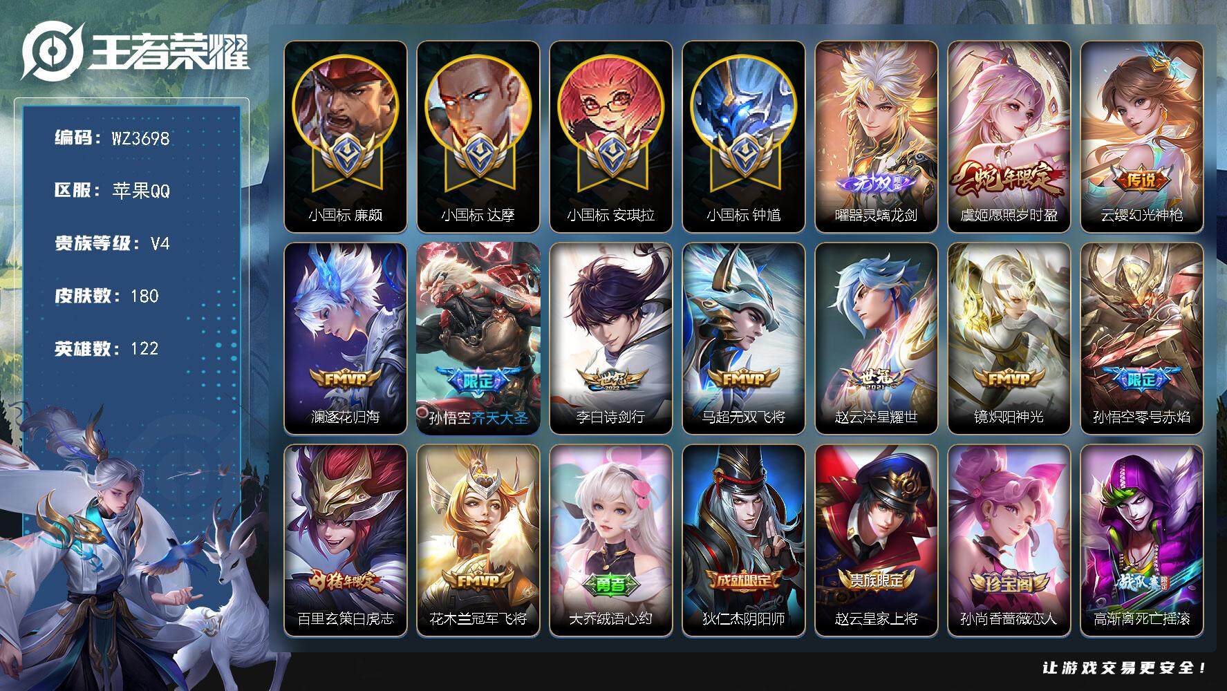 贵族等级:v8皮肤数:134传说品质14 情人节限定1 生肖限定2 荣耀典藏1 英雄数:114