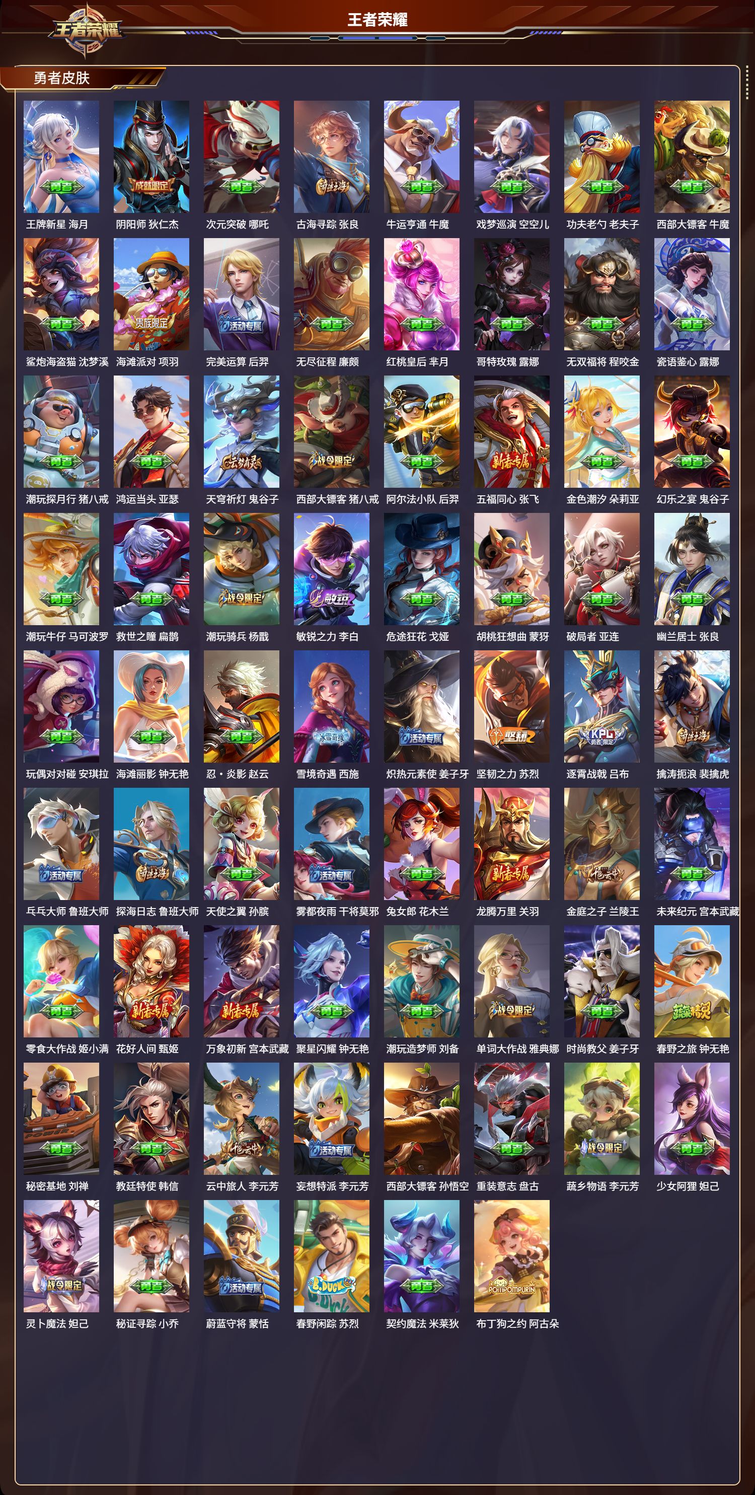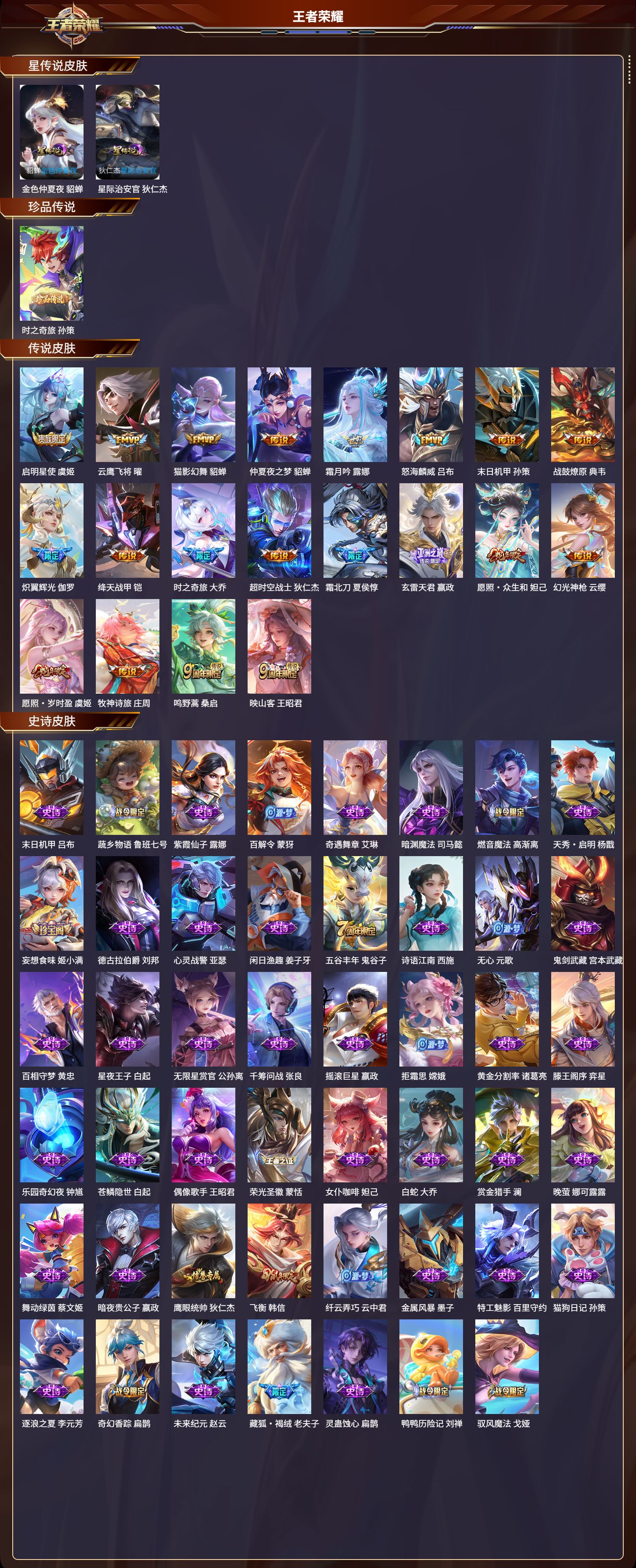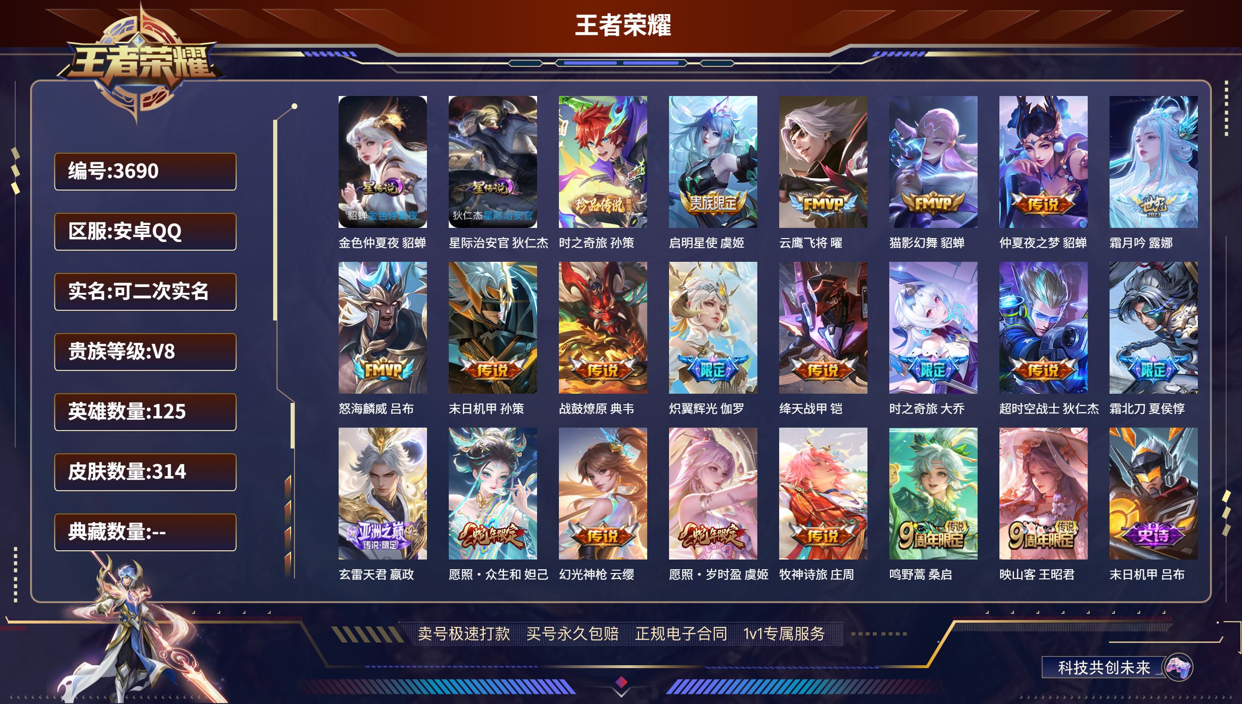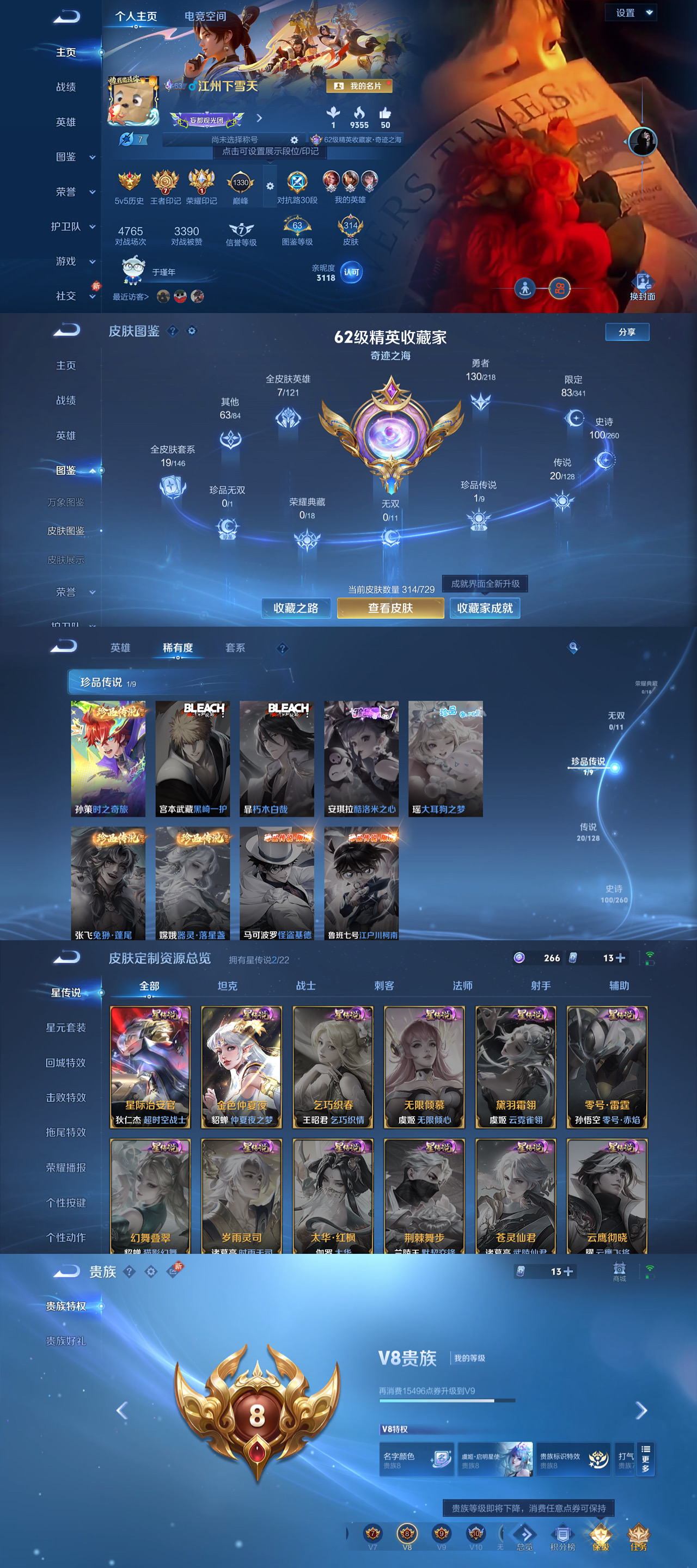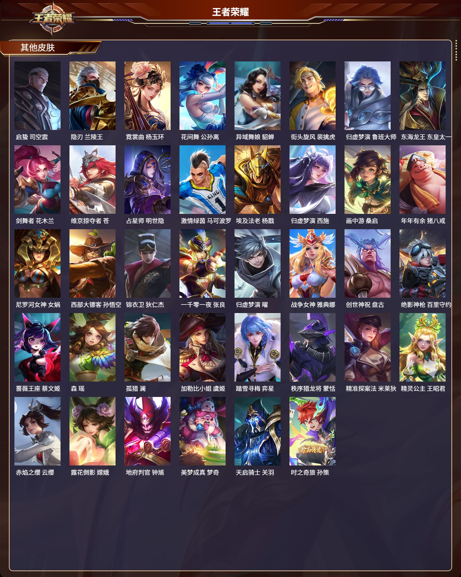 贵族等级:v1皮肤数:38荣耀典藏1 传说品质1 英雄数:74
