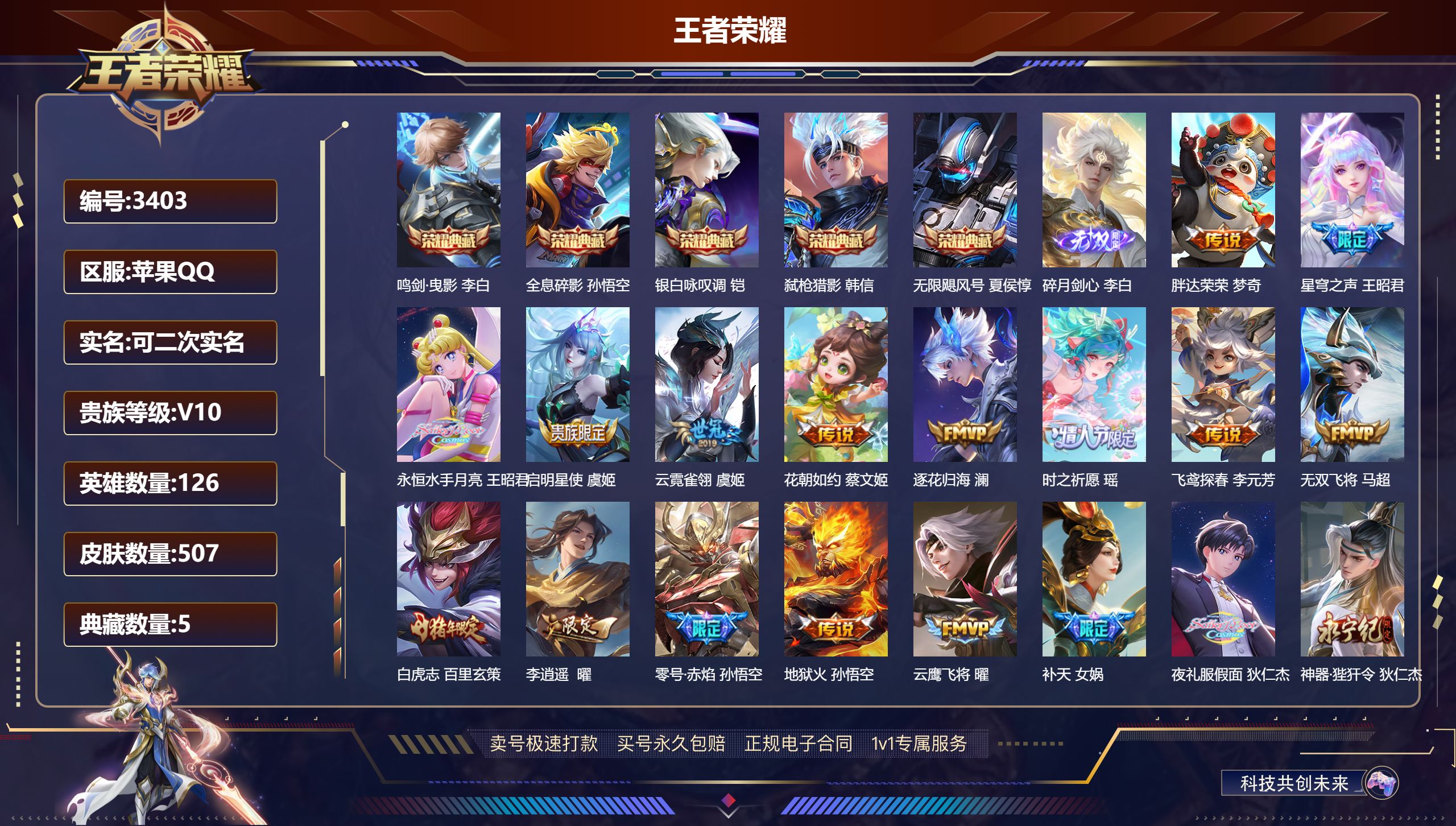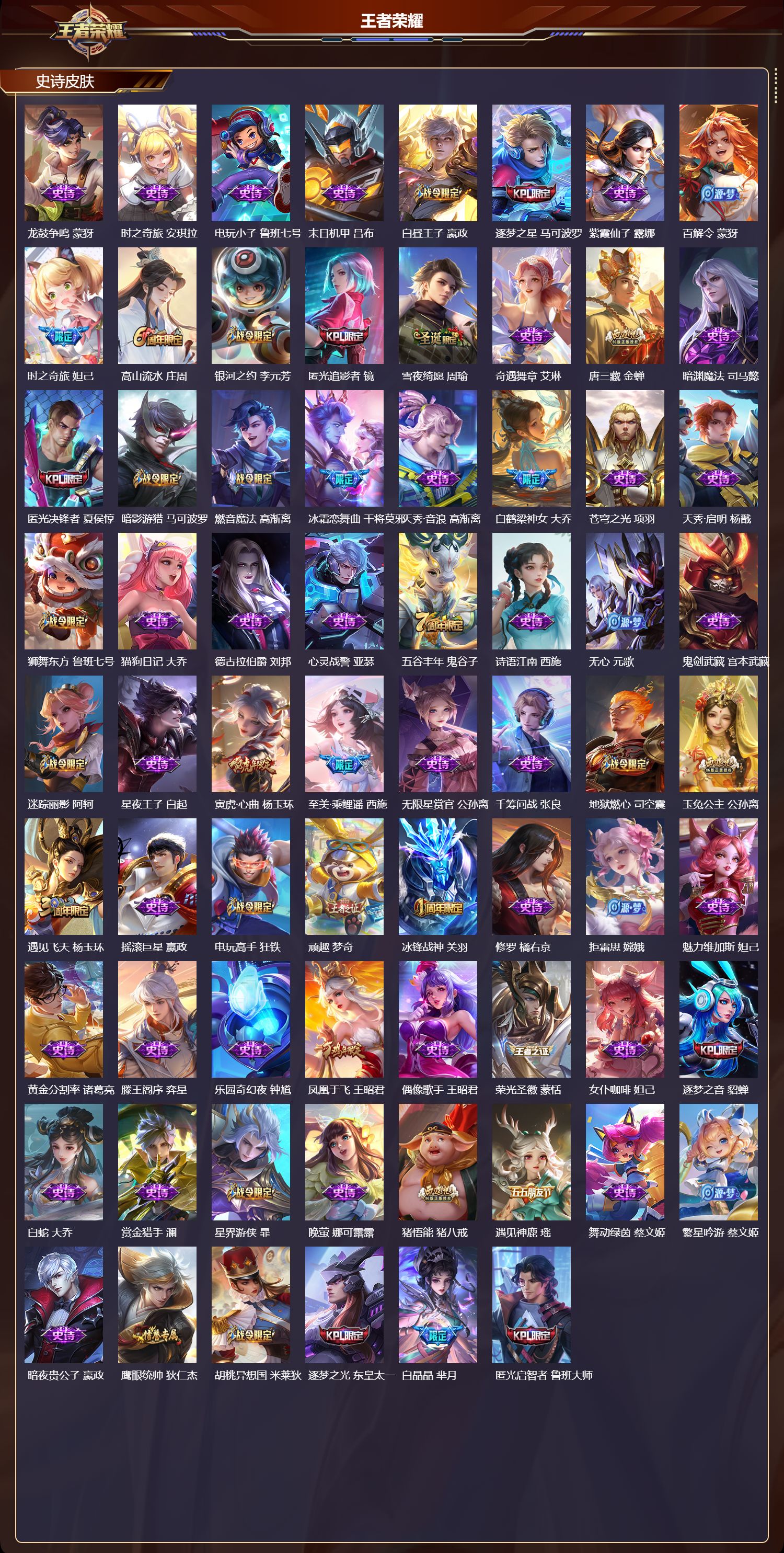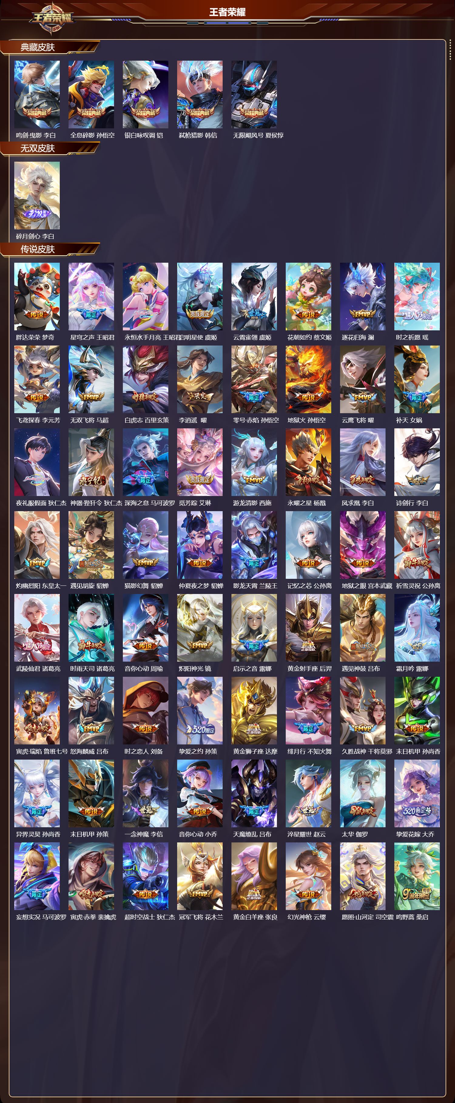 贵族等级:v5皮肤数:66传说品质6 英雄数:105