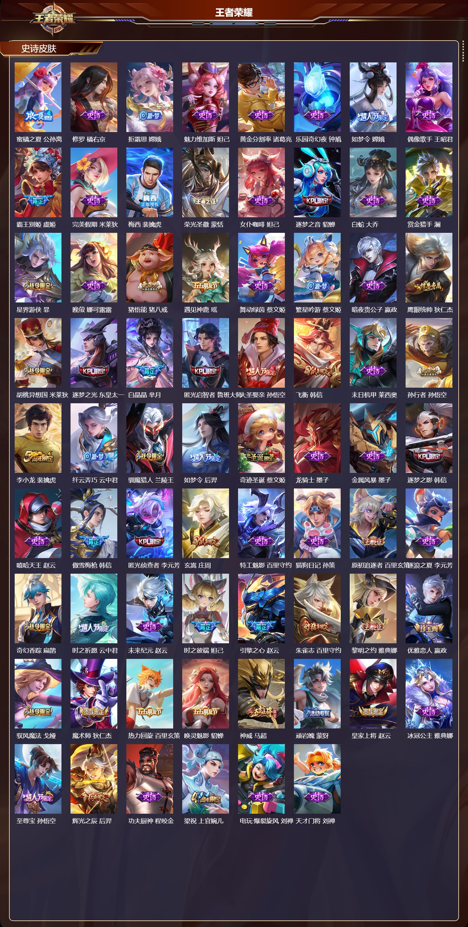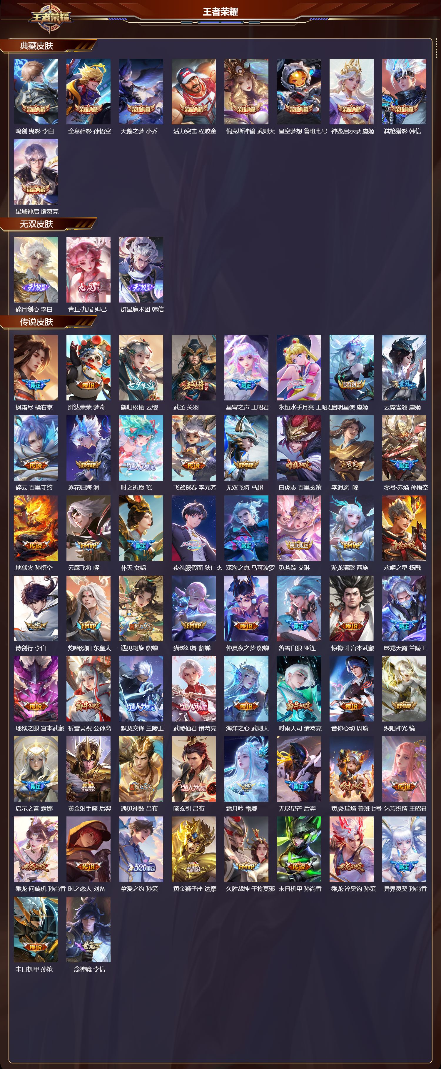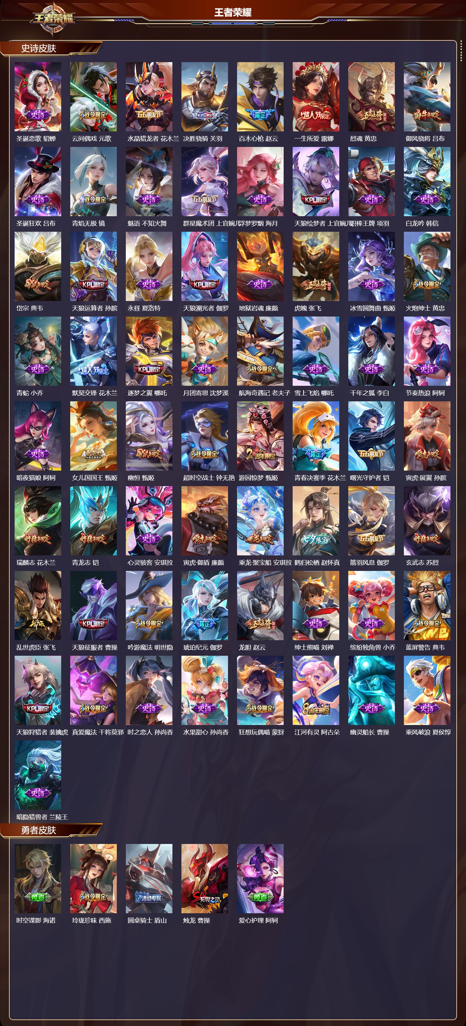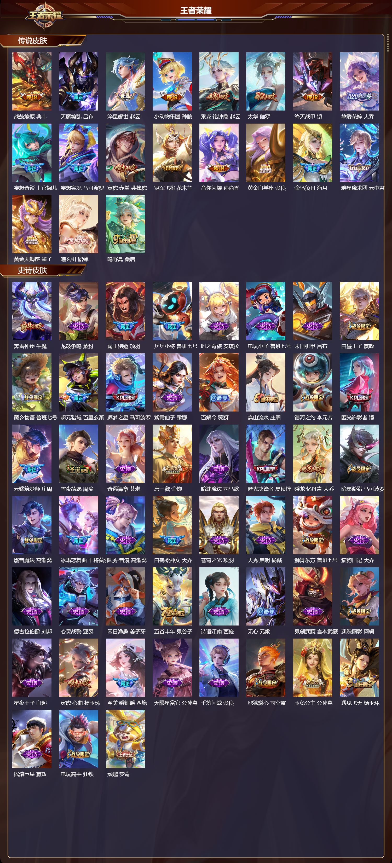 贵族等级:v7皮肤数:143传说品质8 珍品传说1 生肖限定1 英雄数:114