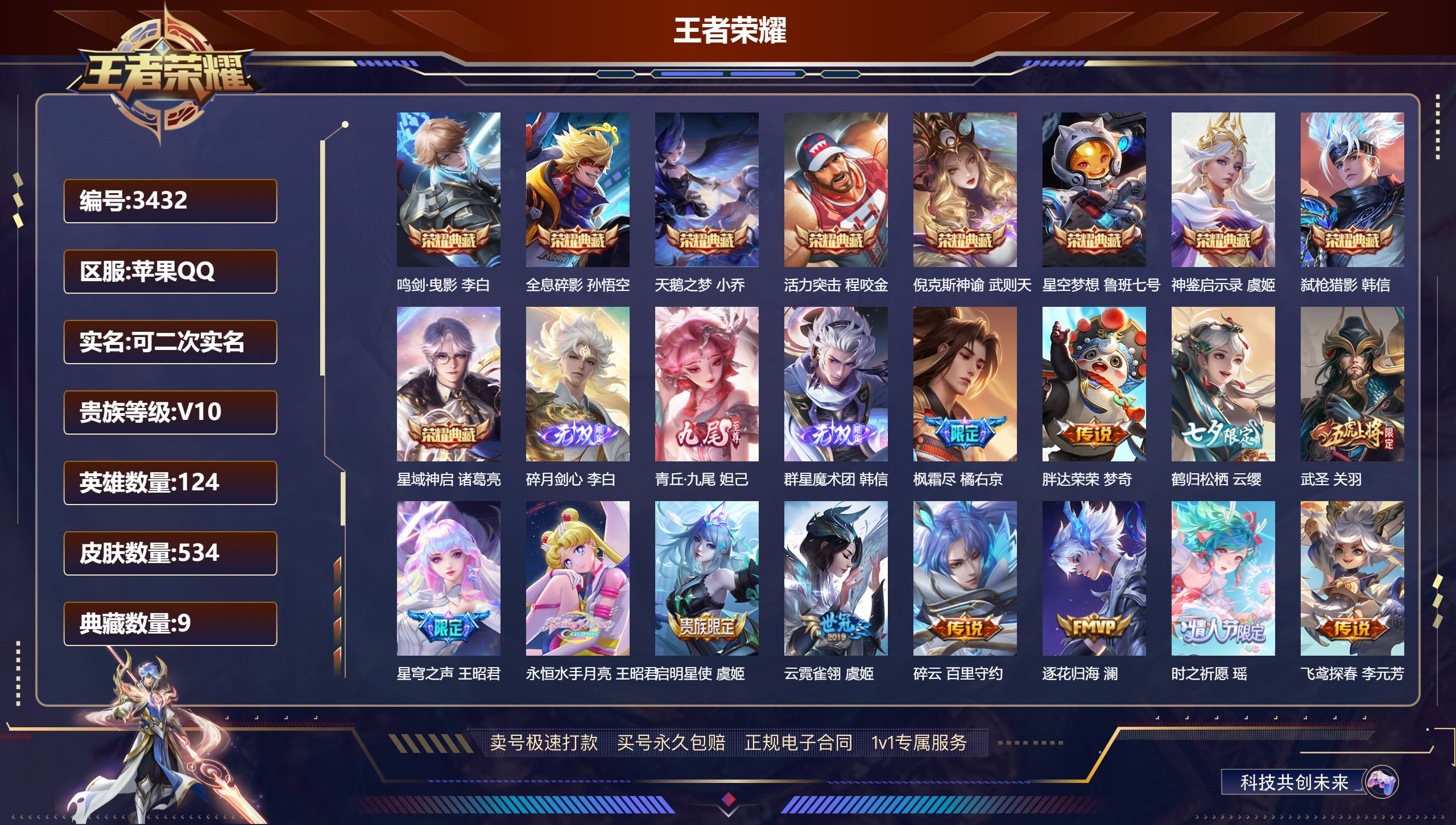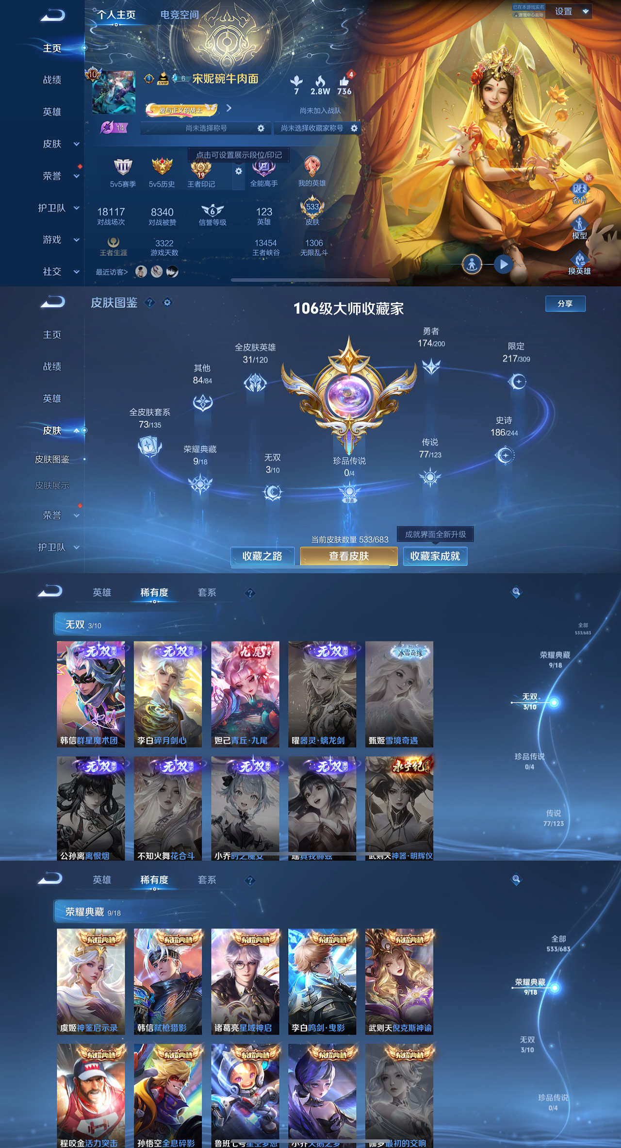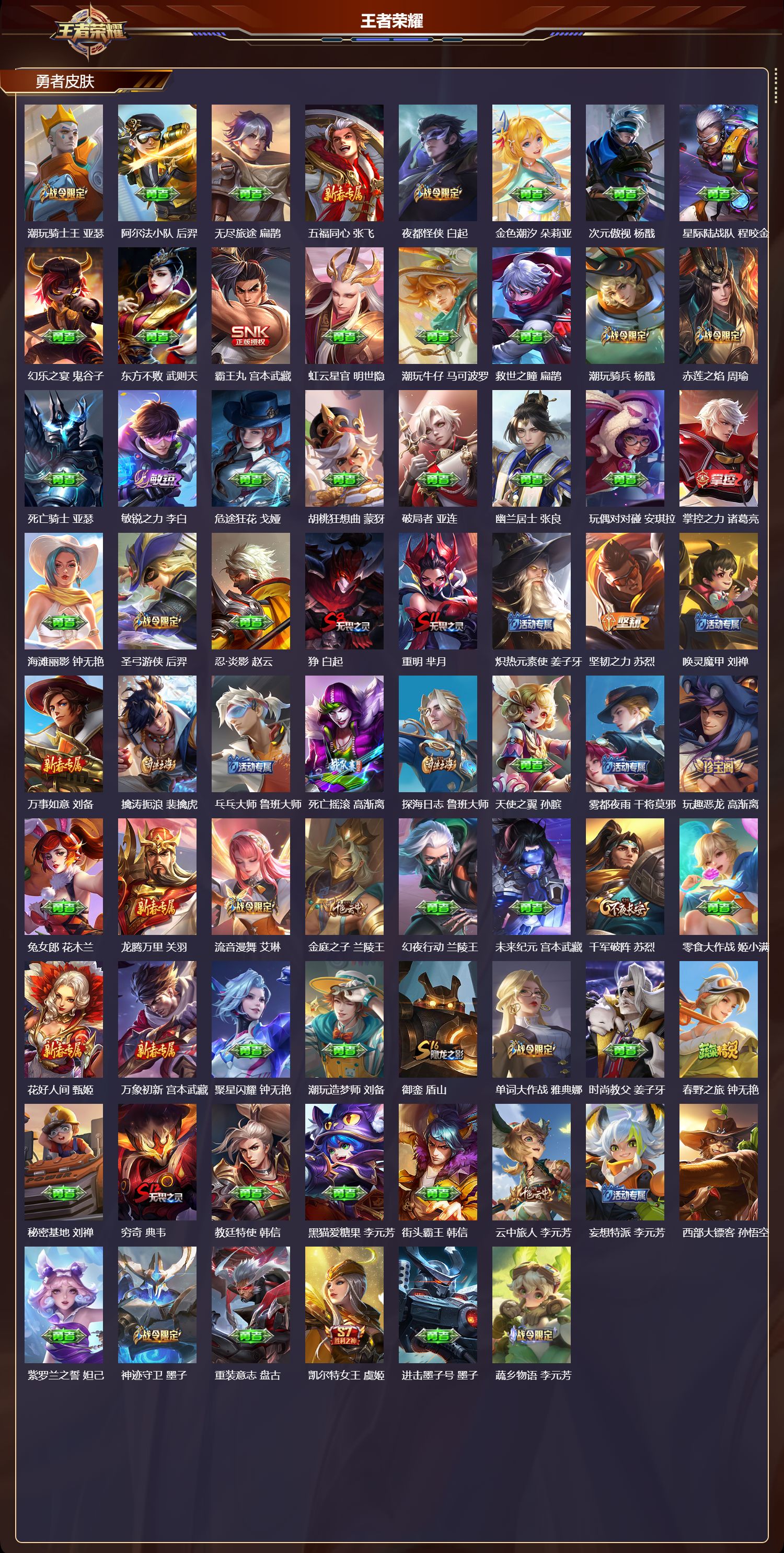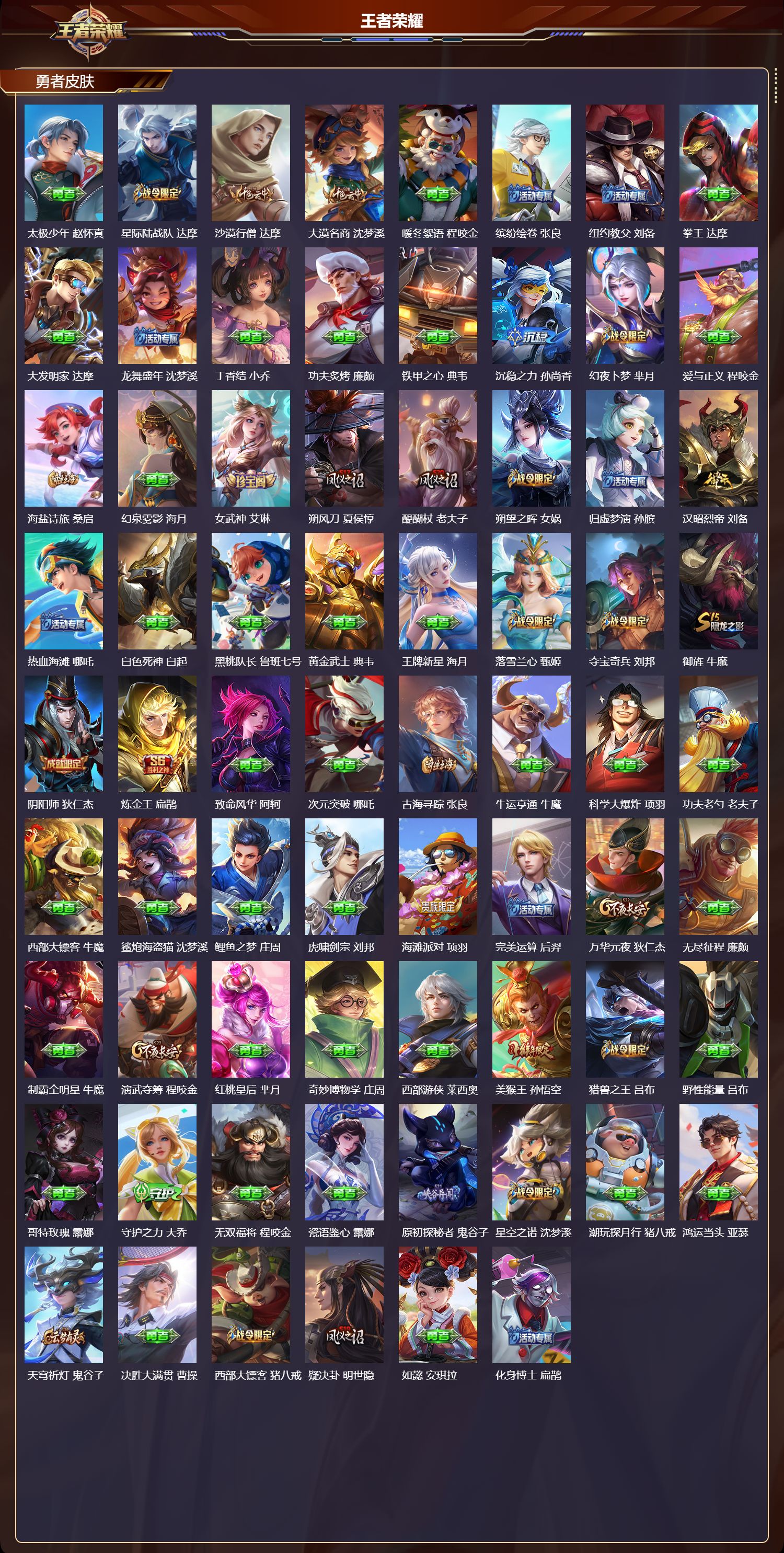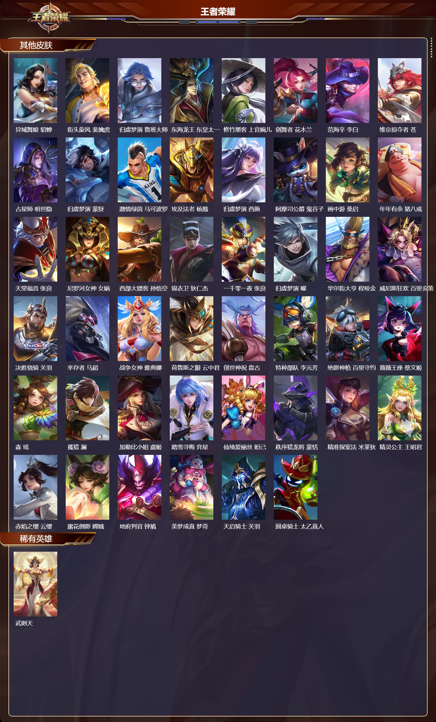 贵族等级:v7皮肤数:143传说品质8 珍品传说1 生肖限定1 英雄数:114